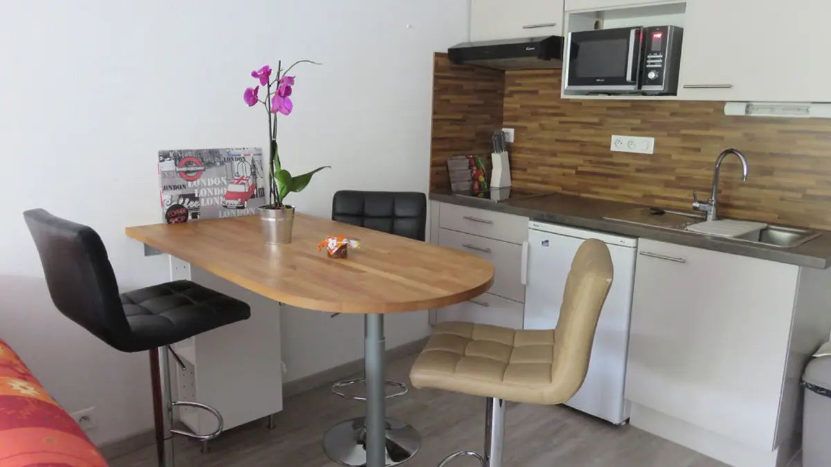 Angenehme Ferienwohnung in der 2. Etage (Fahrstuhl) in einem Wohngebäude von gehobenem Komfort mit Gegensprechanlage, Swimmingpool und Hausmeister. Kapazität bis 3 Personen (2er-Schlafsofa als zusätzliche Schlafstelle).