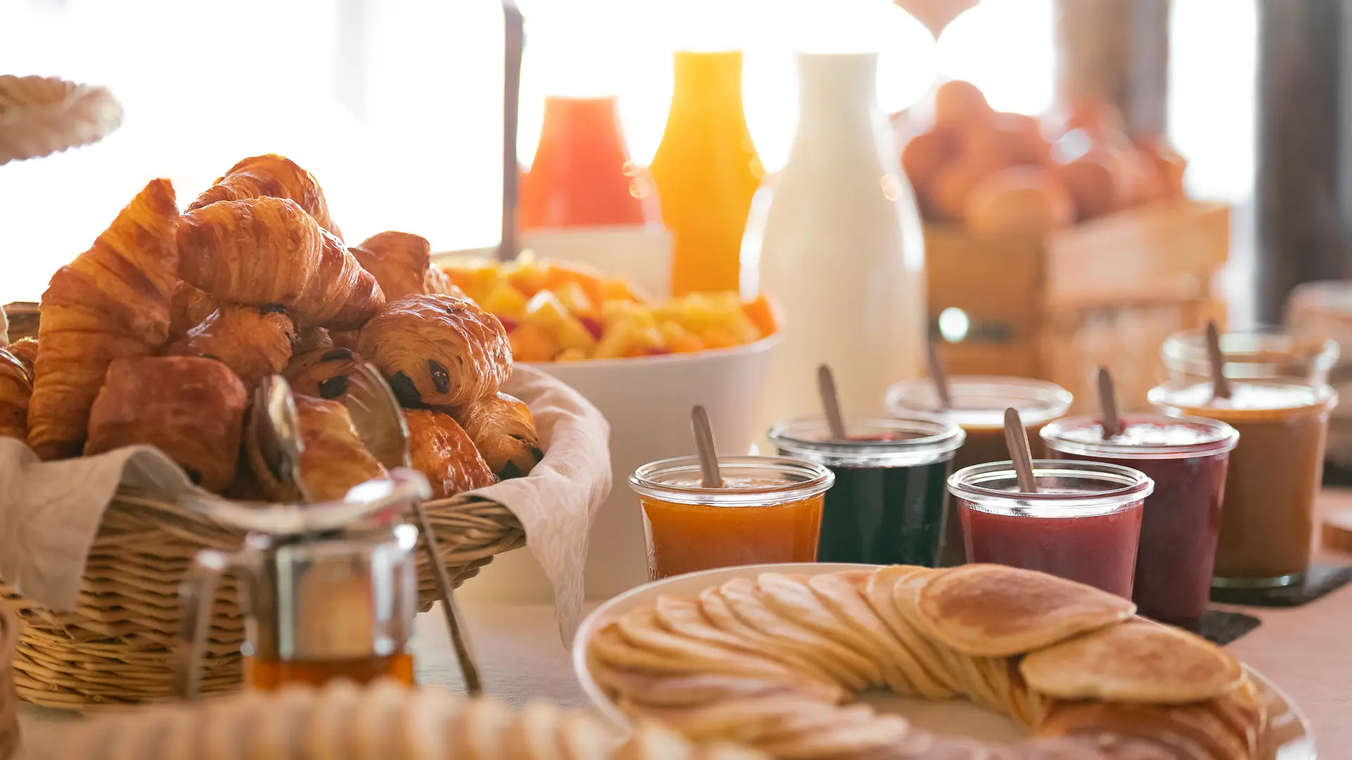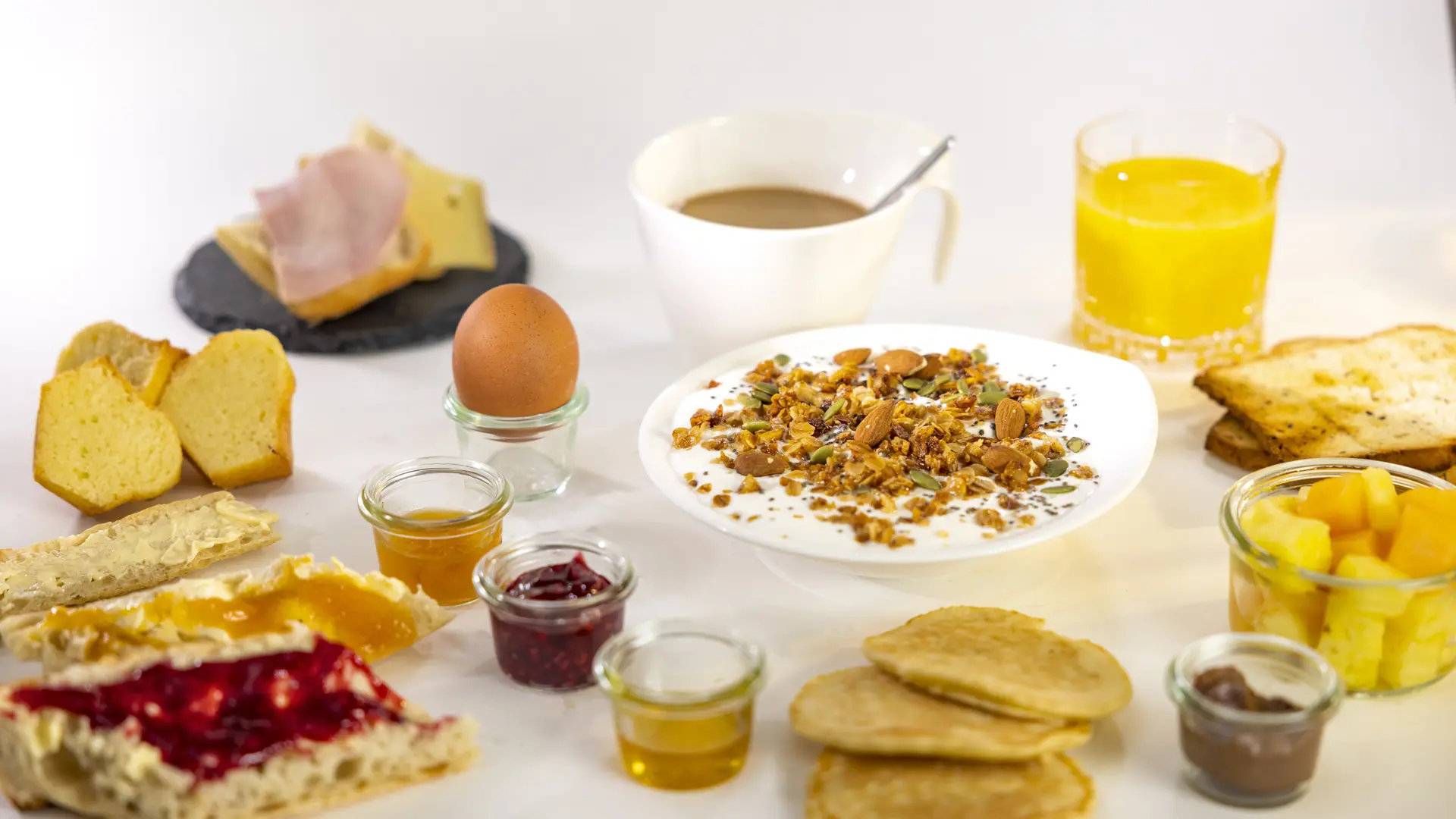 Jeden Morgen können Sie Ihren Tag mit unserem großzügigen und leckeren Frühstücksbuffet beginnen. Hier finden Sie unsere hausgemachten Produkte: Marmeladen, Aufstriche, Pfannkuchen, Cakes, Granola und viele andere Produkte, die von unserem Chefkoch zubereitet werden. Wir ehren auch die lokalen Produzenten und Handwerker mit einer Auswahl an regionalen Qualitätsprodukten.