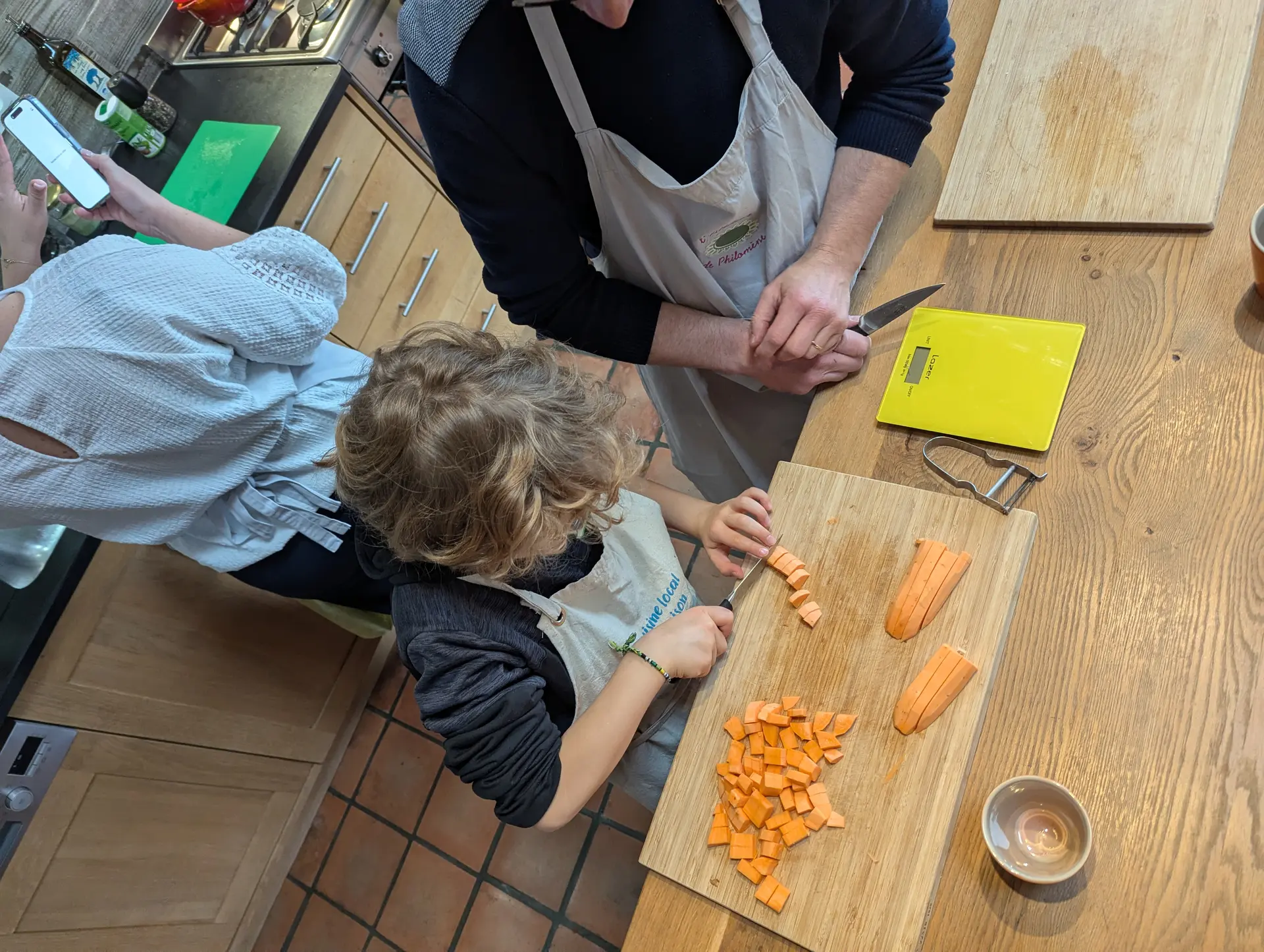 Ein kulinarischer Moment zum gemeinsamen Erleben in der Familie (1 Elternteil / 1 Kind): gemeinsam kochen, lernen, probieren, lachen und Erinnerungen schaffen.