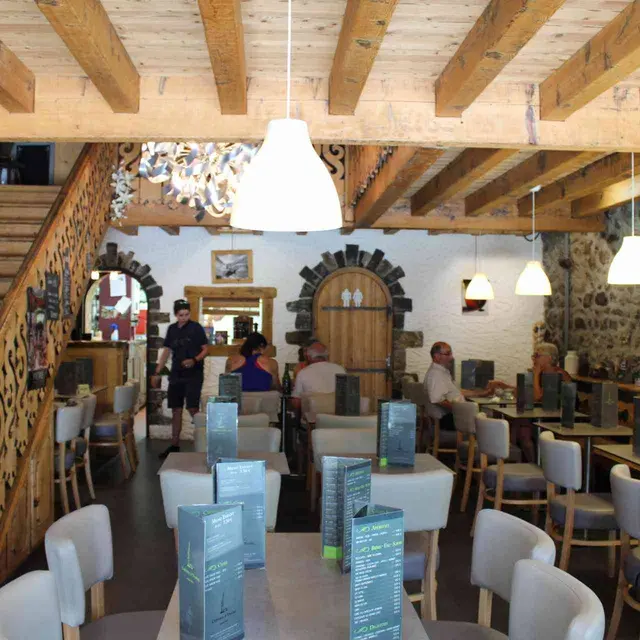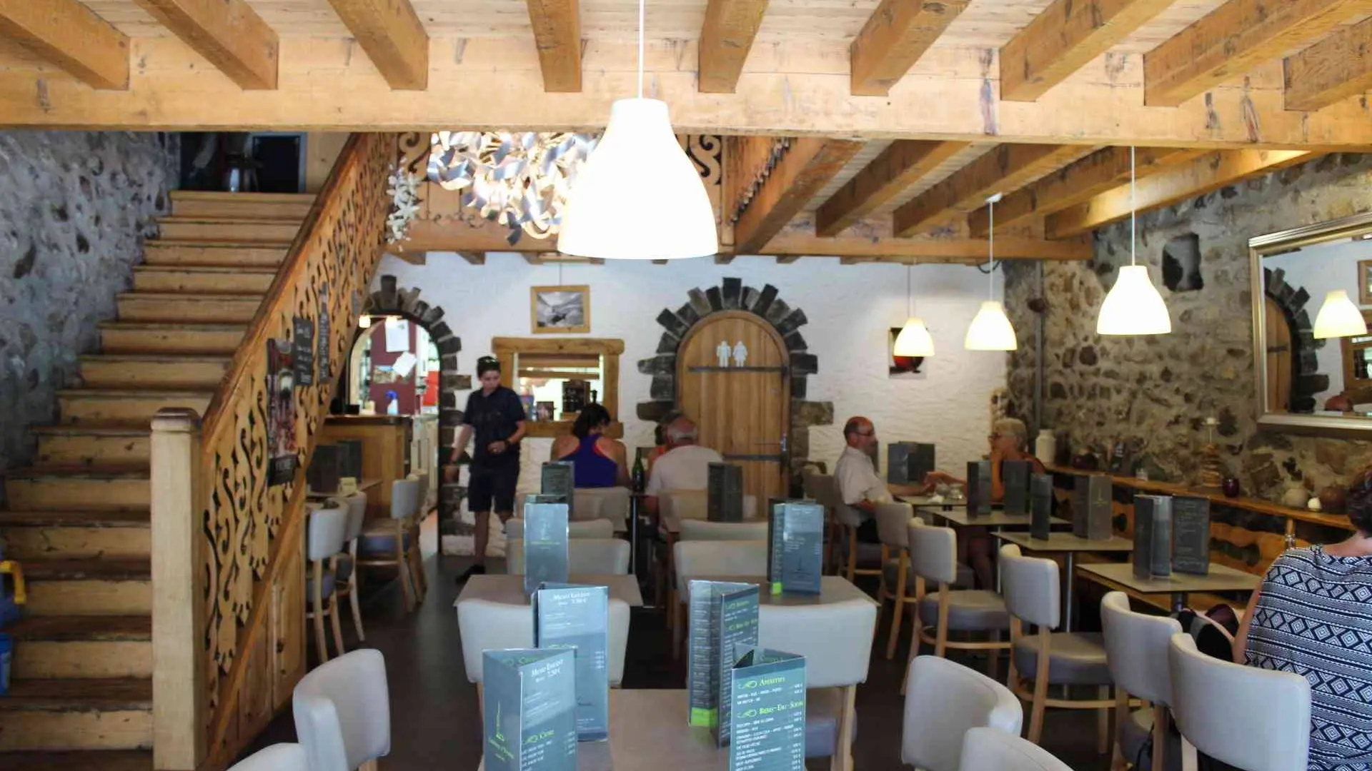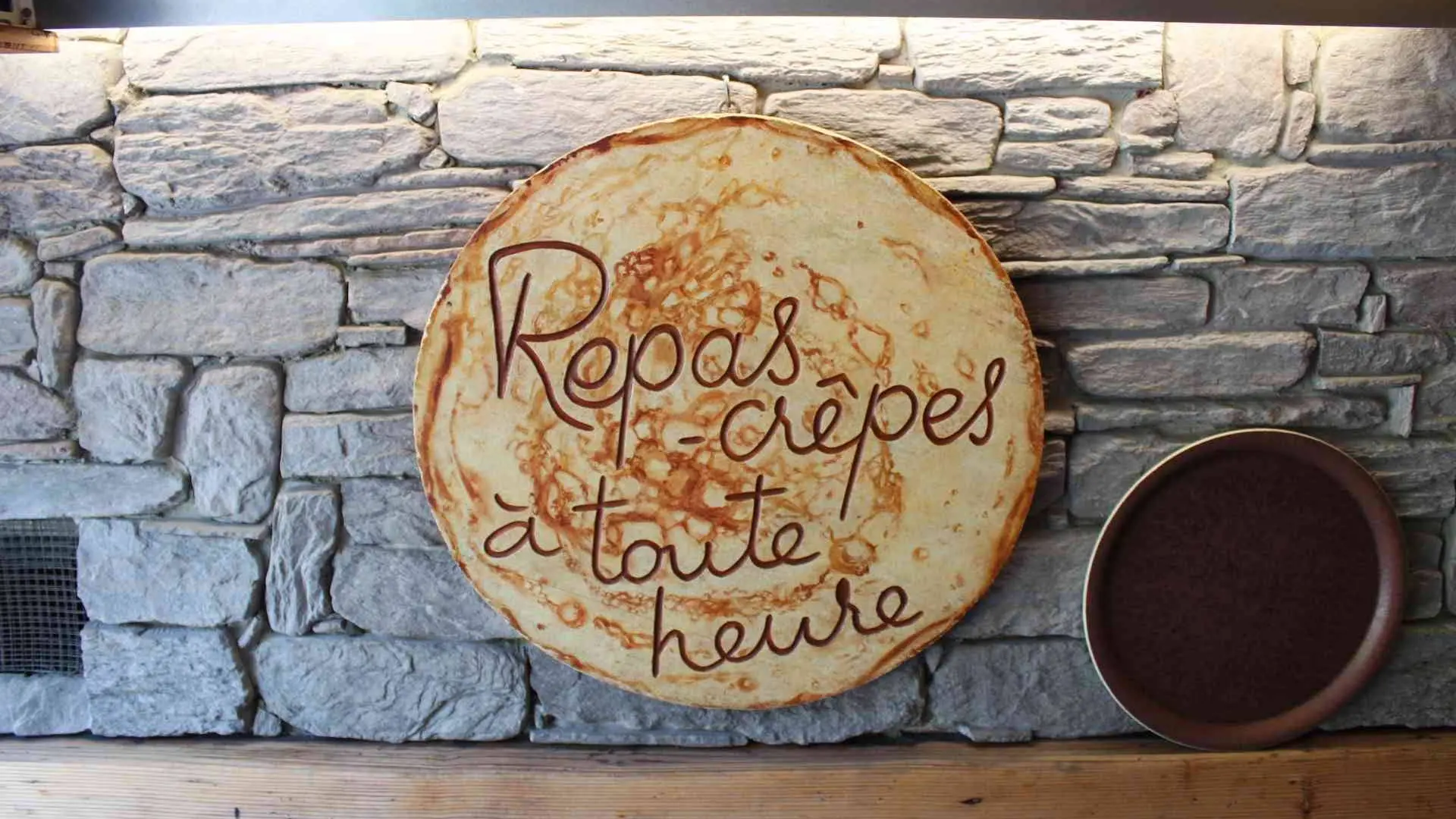 Genießen Sie auf der blühenden Terrasse oder im Raum mit Holz und freiliegenden Steinen ein süßes Krepp für ein wenig Hunger mit einer guten Schale durstlöschenden Apfelmost oder eine komplette Kreppmahlzeit! Die Speisekarte ist reichhaltig und appetitlich!