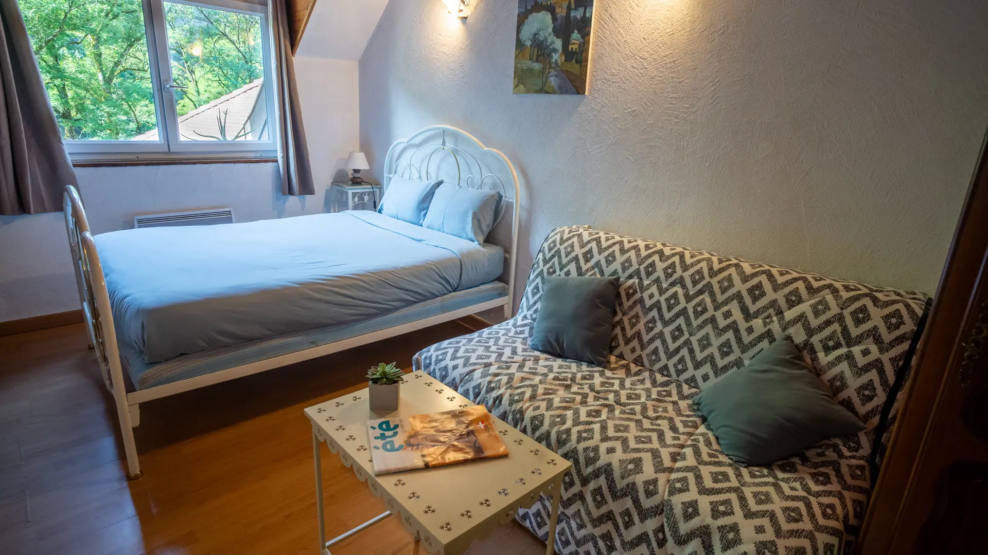 Zimmer Jacquère : Zimmer mit einem Doppelbett. Sie servieren das Frühstück im Zimmer. Privates Badezimmer. Sie sind direkt im Park mit einer privater Terrasse.