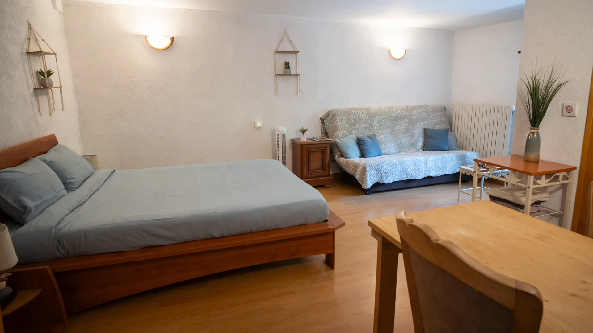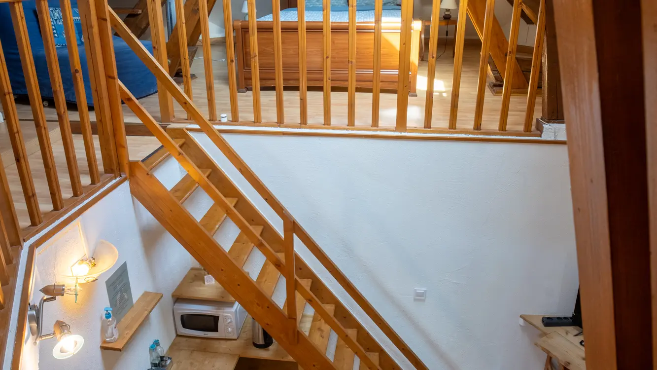 L'appart' : große Wohnung mit einem Mezzanin. Es gibt 2 Doppelbetten, 2 Einzelbetten und 2 Klappsofa.