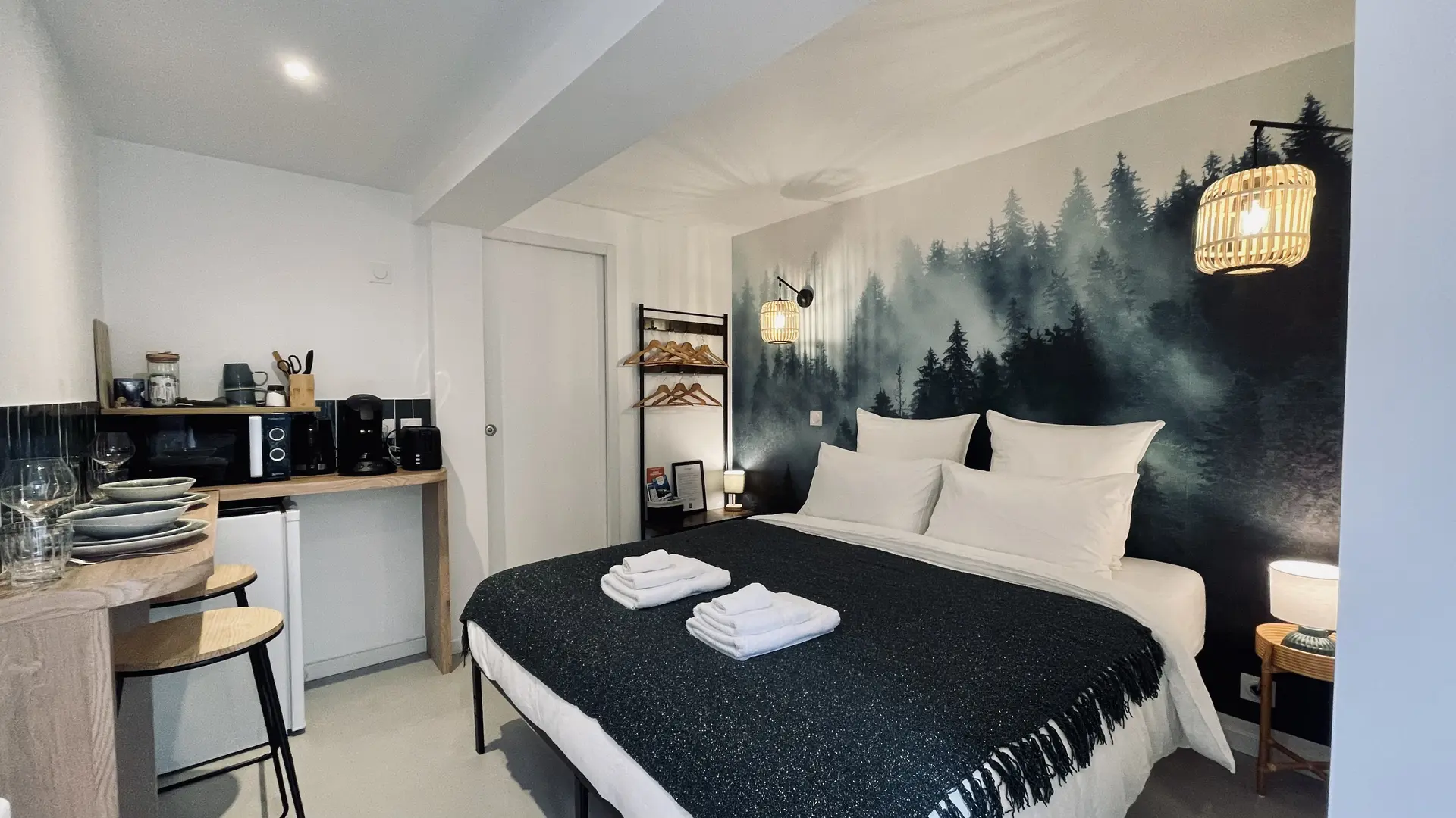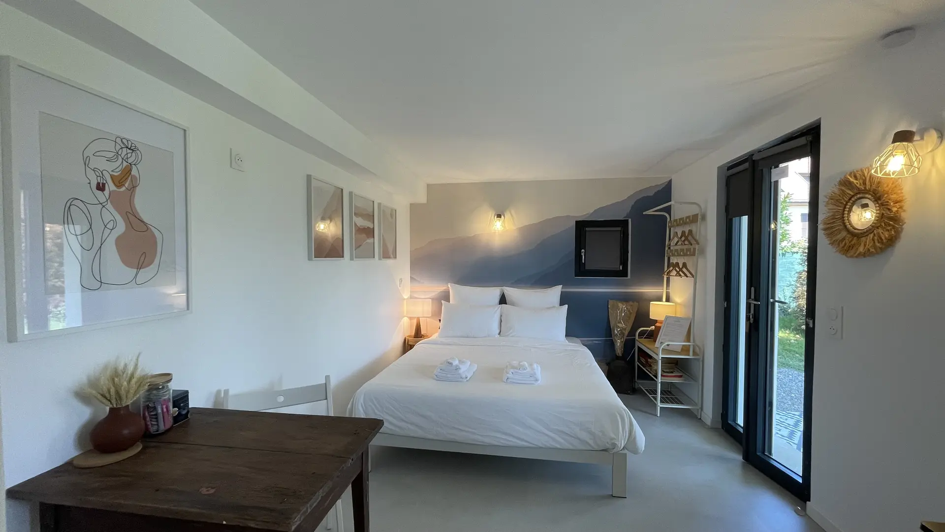 "Rivage", Doppelzimmer mit Küchenzeile und Essbereich.