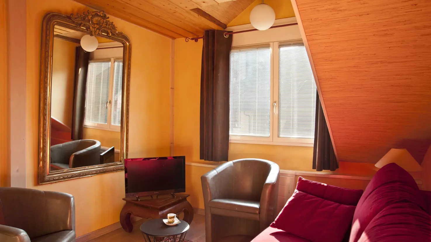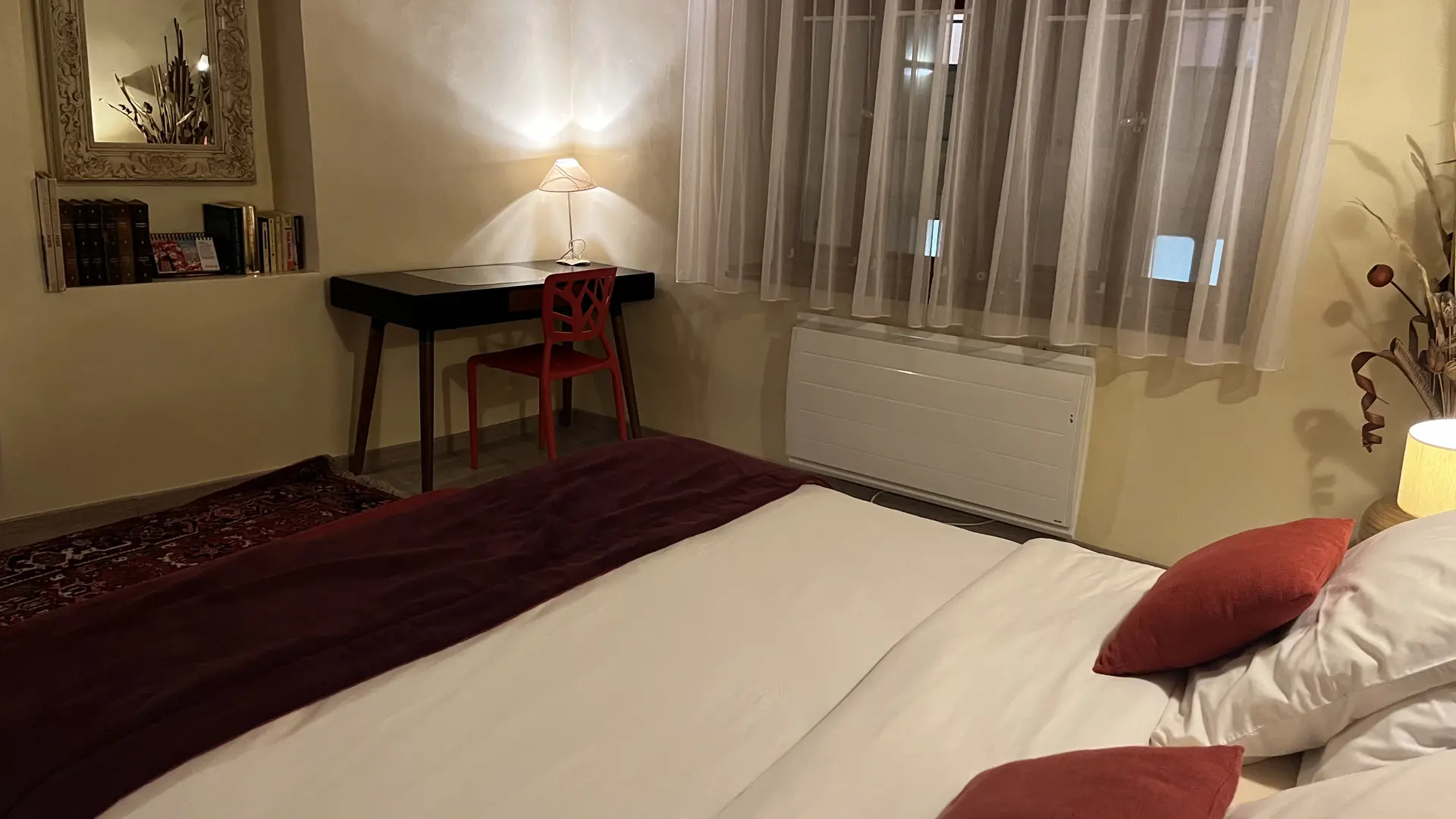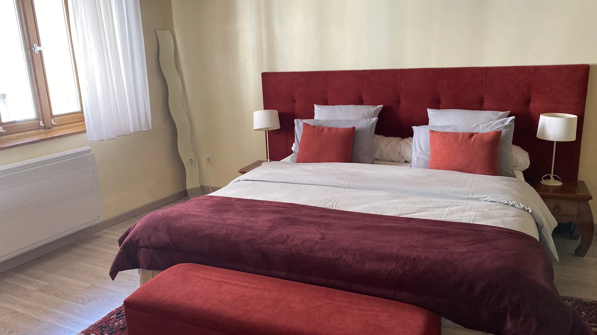 Ein großes Schlafzimmer (25 m²) mit einem Doppelbett 180 x 200, das auf Anfrage in zwei Einzelbetten 90 x 200 umgewandelt werden kann.