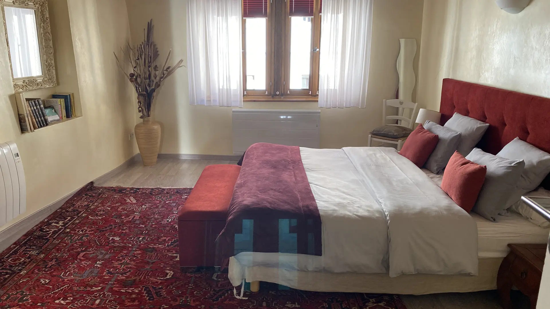 Diese schöne durchgehende Wohnung von 60 m² hat einen sehr schönen Blick auf den Kanal und das Schloss. Der Charme der farbigen Wände mit gewachstem Kalk, die Decken im alten Stil und die sichtbaren Balken werden Sie begeistern.