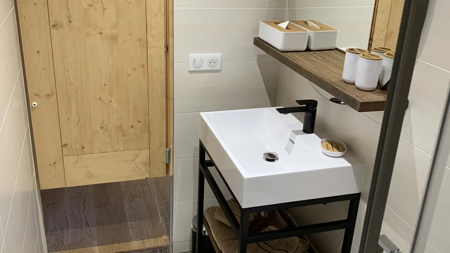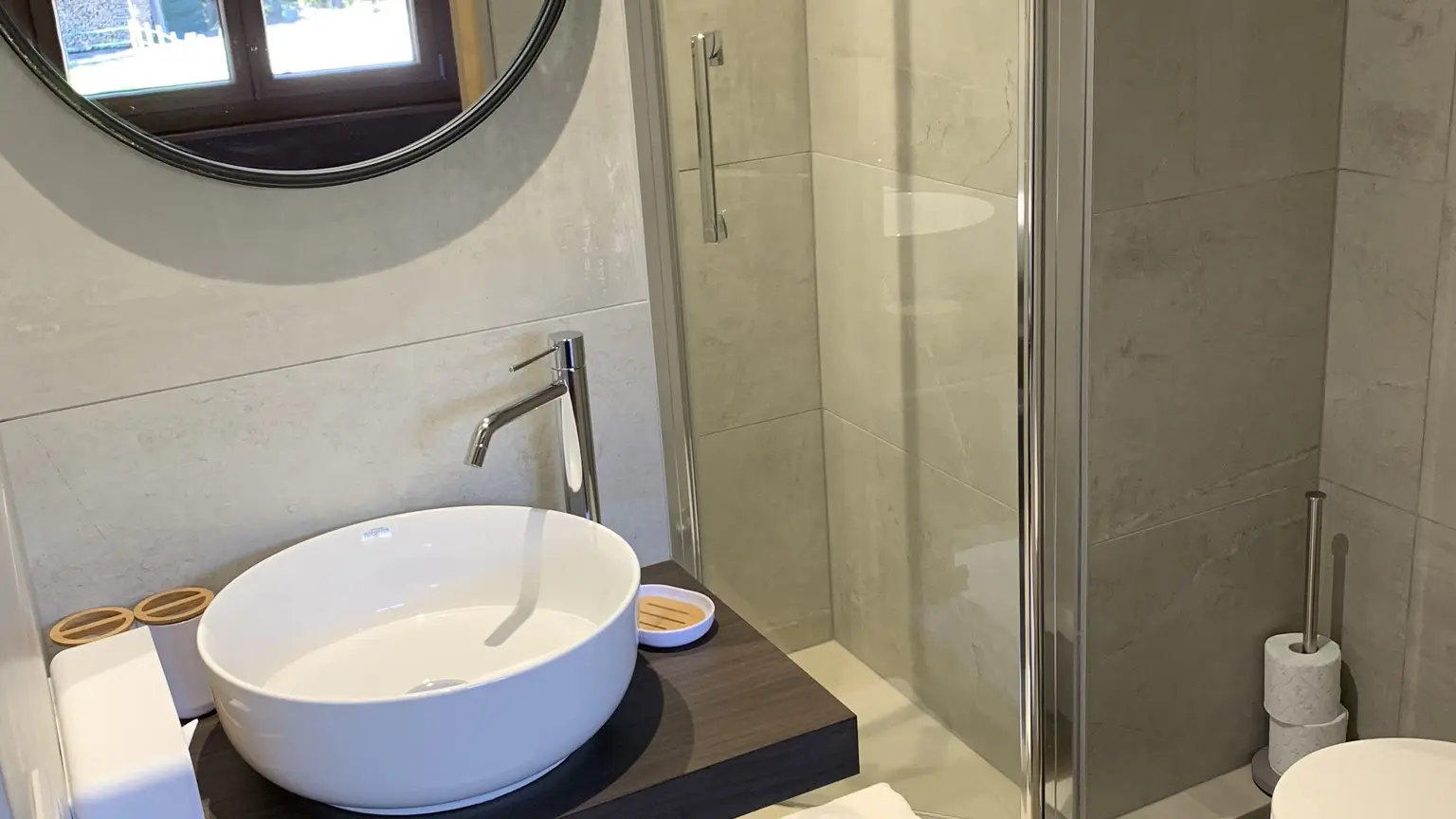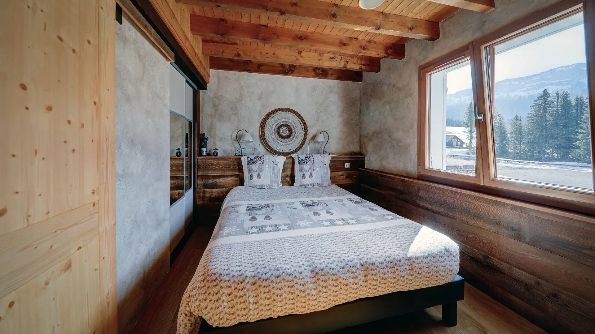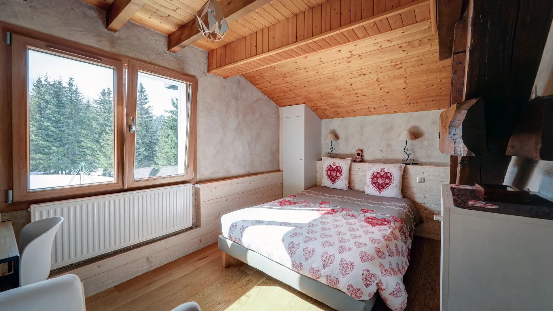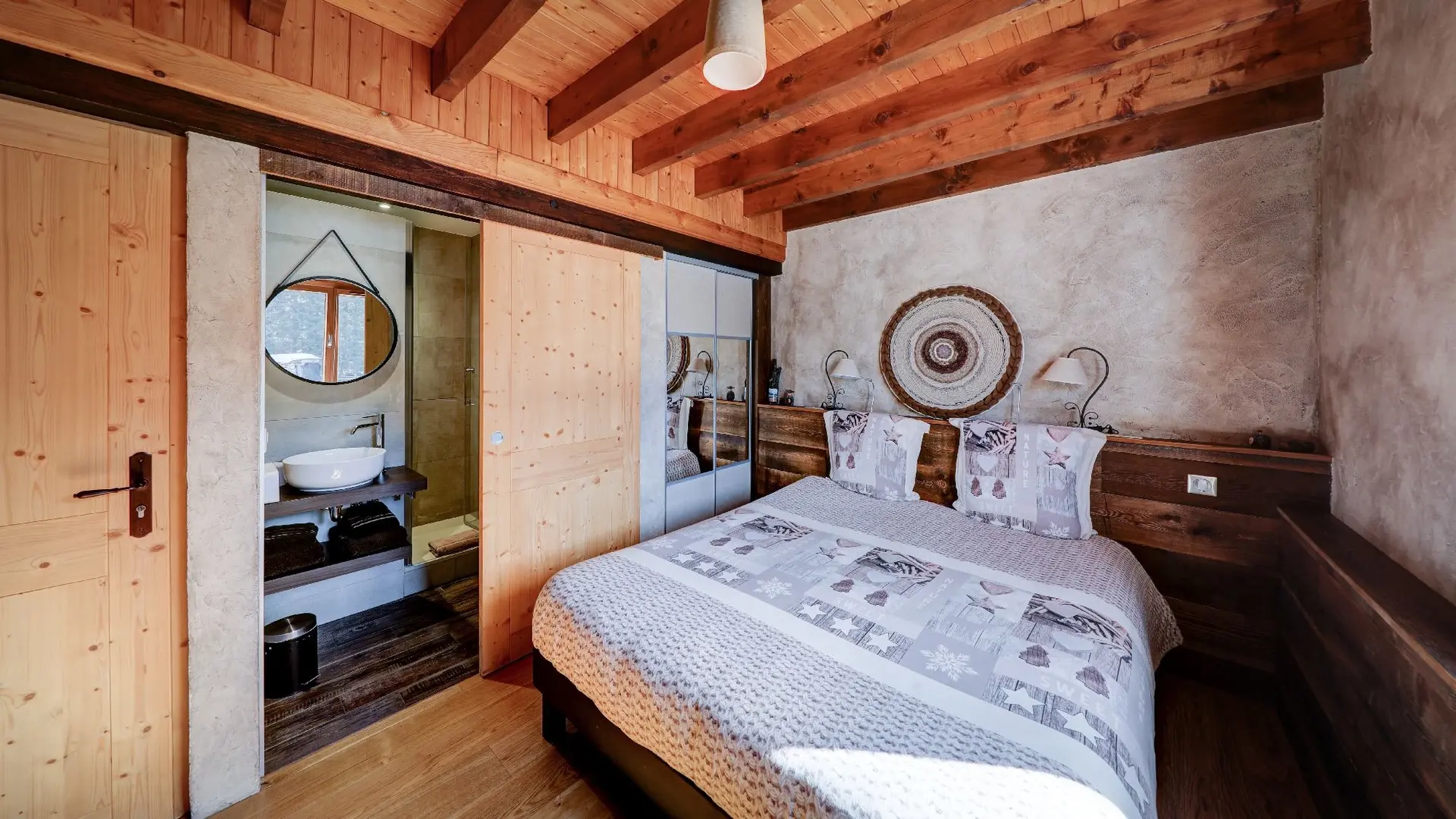 3 Schlafzimmer für 2 Personen, uneingeschränkter Ausblick auf die Montagne des Auges, mit privaten Sanitäranlagen (Dusche, Waschbecken und WC), mit TV, WLAN, ein Willkommenskörbchen mit Kaffee, Tee und Schokolade etc.