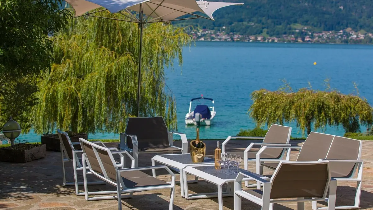5-Sterne Traumvilla am Wasser. Diese Rarität mit Spa, Garten mit Bäumen, Strand und eigenem Bootsanleger empfängt alle Urlauber, die gern mal etwas Neues erleben möchten.