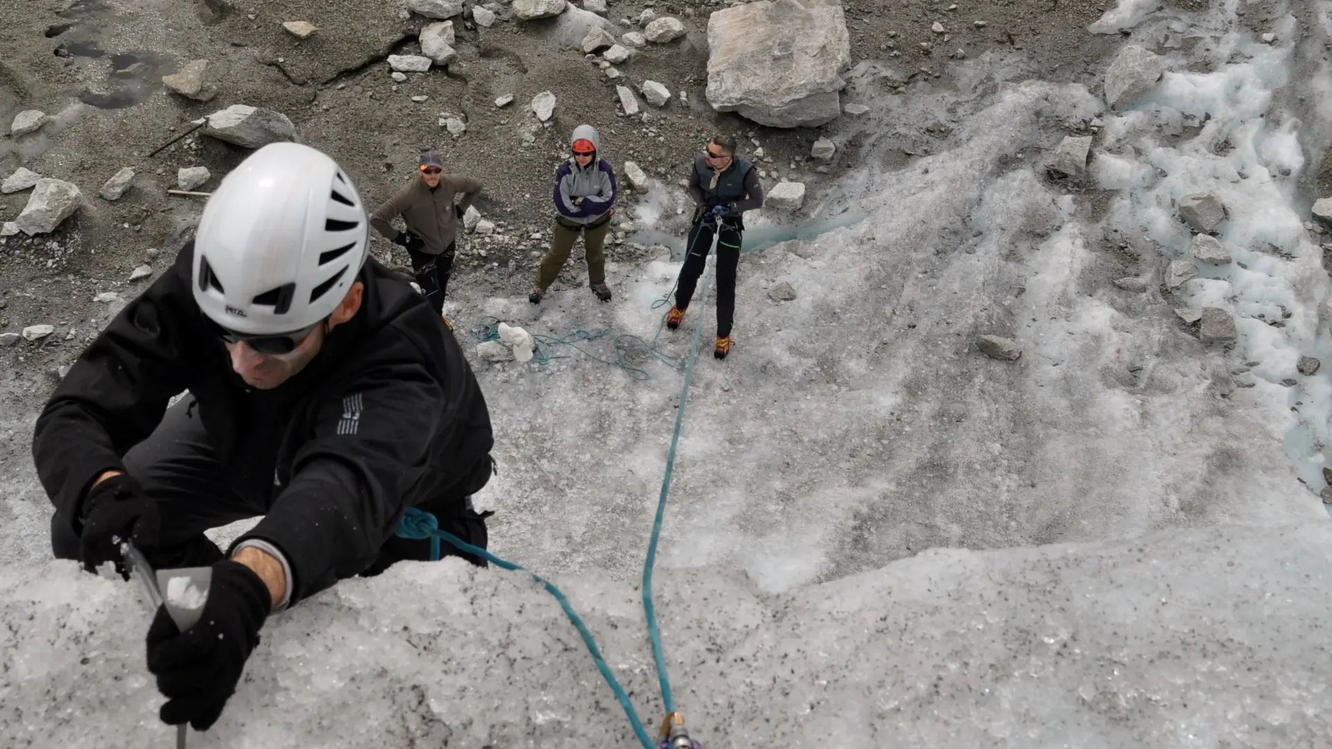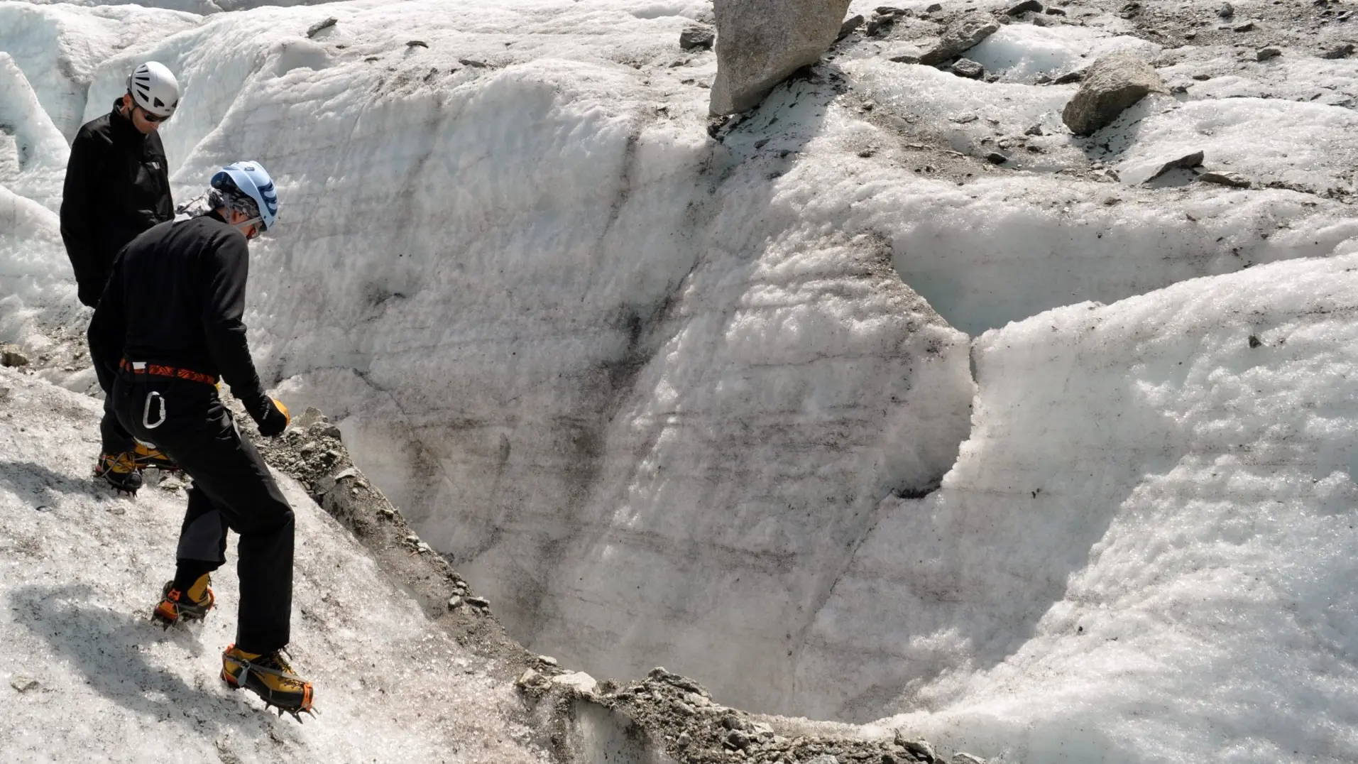 Erste Annäherung oder Wiederholung: Erlernen der verschiedenen Techniken, die für das Gletschergelände spezifisch sind: klassisches Steigeisen mit 10 Zacken, angeseilte Entwicklung, Sicherung...