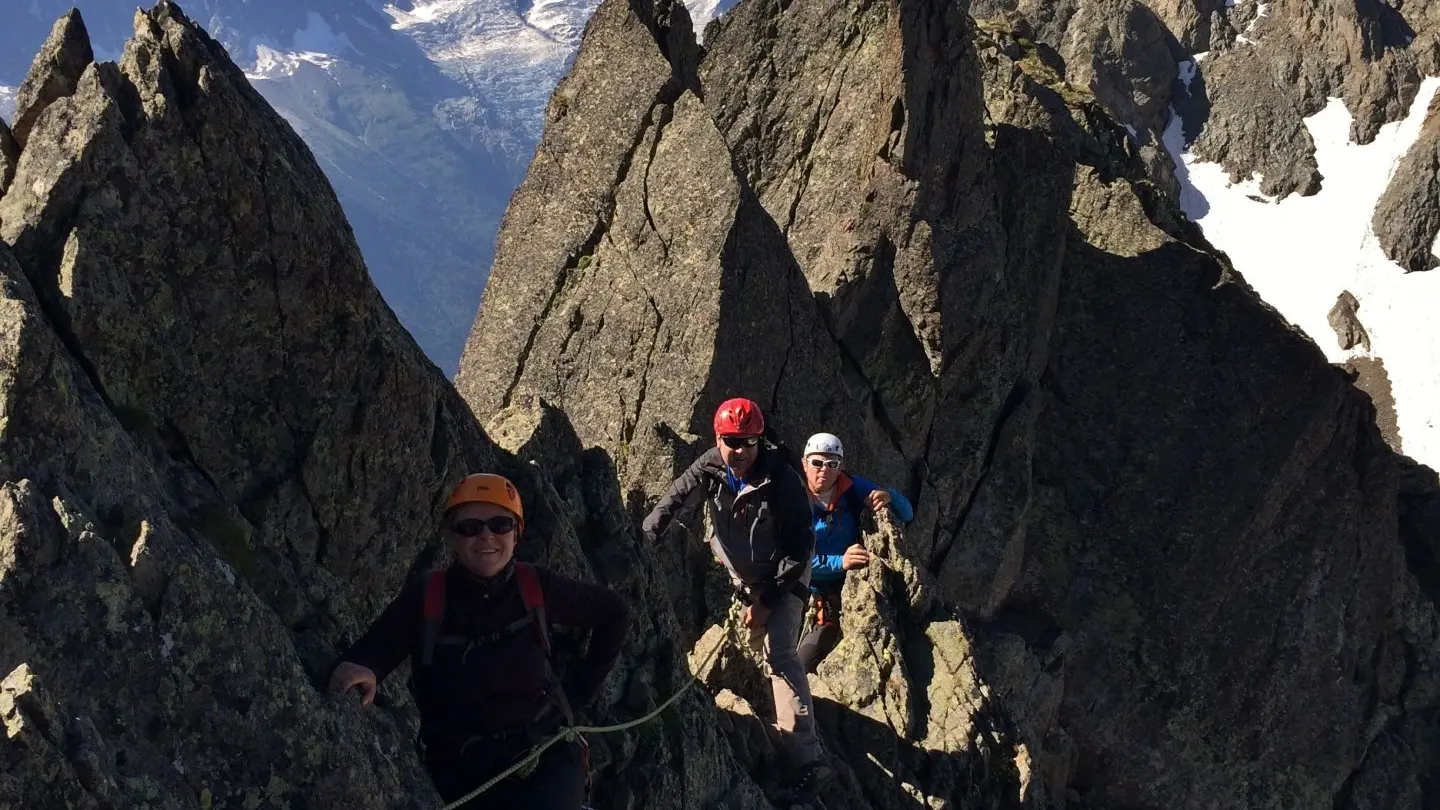Jetzt ist der Zeitpunkt gekommen, an dem Sie das, was Sie an den vorherigen Tagen gelernt haben, anwenden können! Das Ziel wird mit Ihrem Bergführer je nach den Zielen der Gruppe und den aktuellen Bergbedingungen ausgewählt. Beispiele für durchgeführte Touren: Pointe Lachenal (3 613m), Traversée des Aiguilles Crochues (2 840m).
