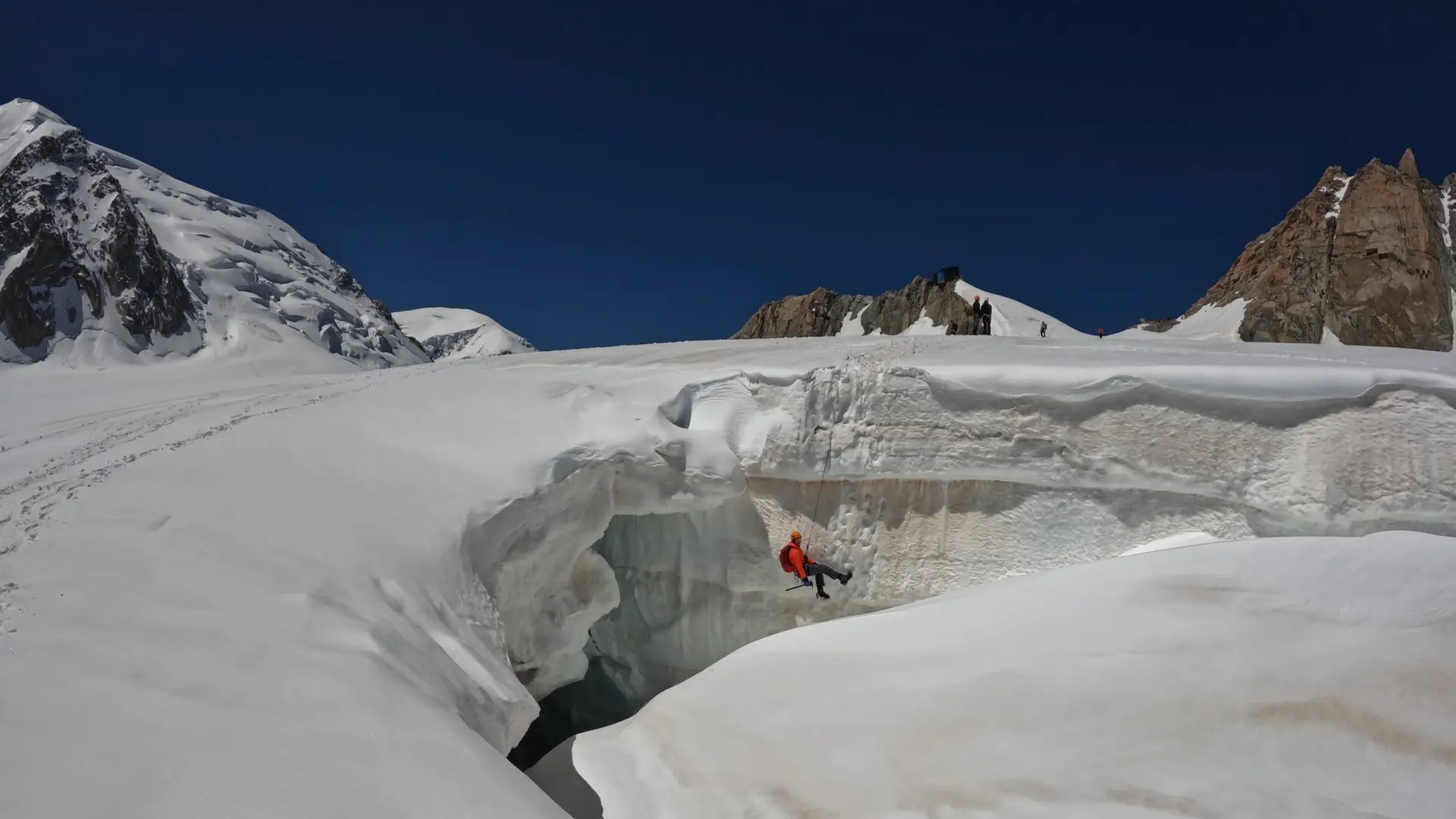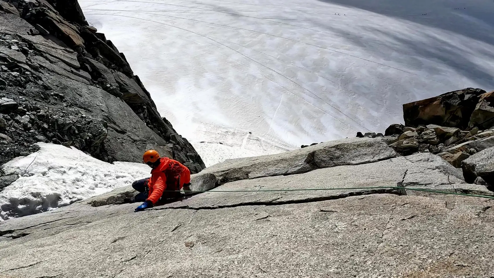 Klettern einer mit mehreren Seillängen ausgestatteten Route in Reversible mit Abseilen. Aufstieg zur Albert Ier Hütte (2.702m) und Übernachtung dort.