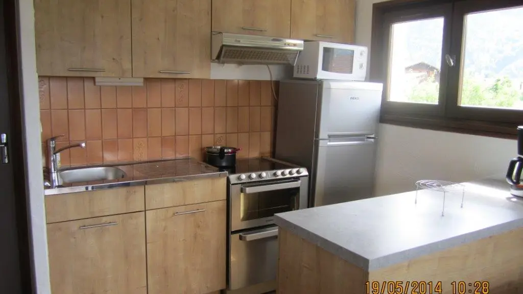 Dieses 2-Zimmer befindet sich in einem ruhigen Gebäude bietet Platz für bis zu 4 Personen. Balkon mit Blick auf die Bergketten der Aravis und der Fiz.