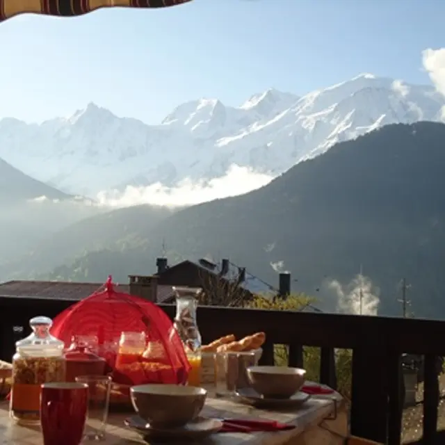 Wohnzimmer, ausgestattete Küche mit Blick auf den Mont Blanc. Zwei Schlafzimmer mit Dusche und Waschbecken. Ein Schlafzimmer mit separatem Bad, ein Schlafsofa. Skiraum. Gartenmöbel. Es besteht die Möglichkeit, ein Studio mit Blick auf den Mont Blanc zu mieten.