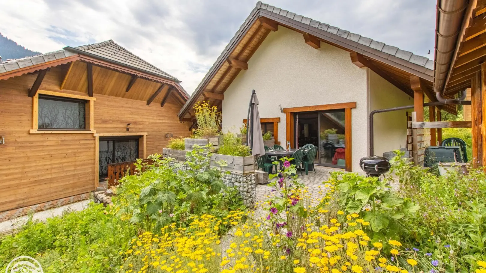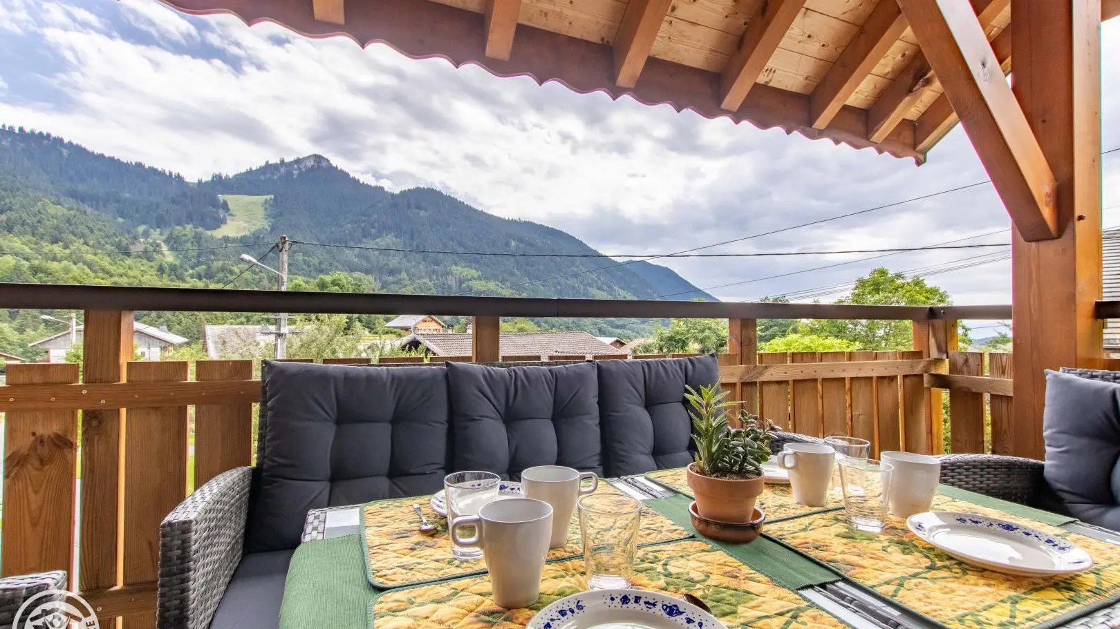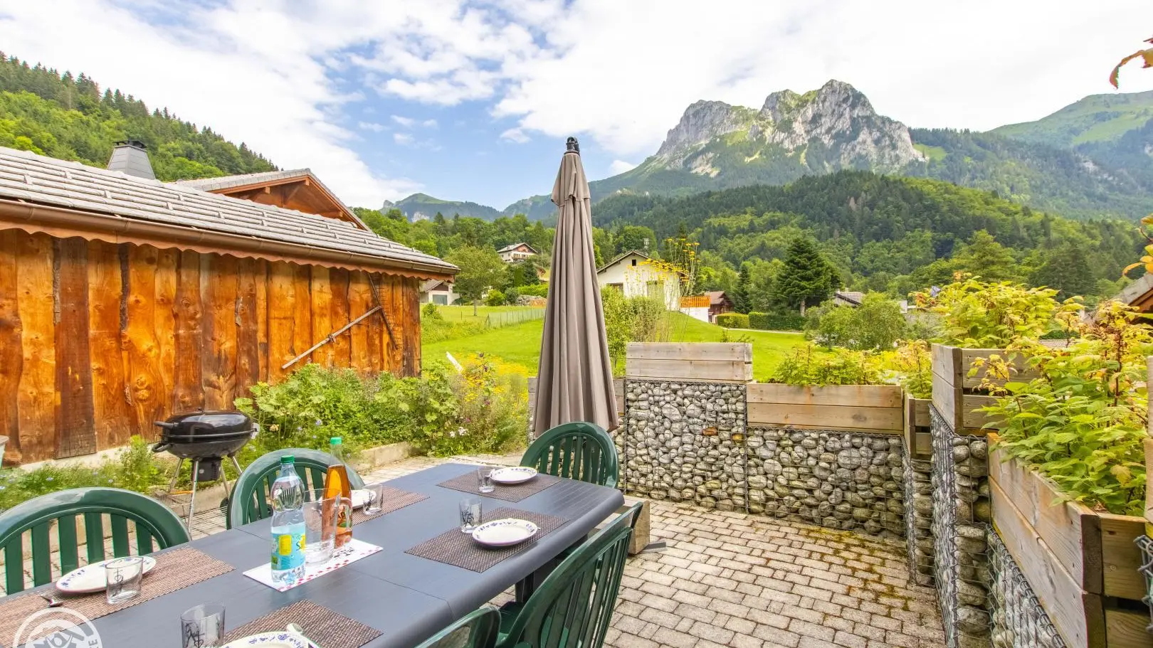 Private east-facing terrace with mountain views with garden furniture, deckchairs, parasol, barbecue. South balcony with relaxation lounge and hammock. Garden/land. Private parking in front of the house (2 spaces).