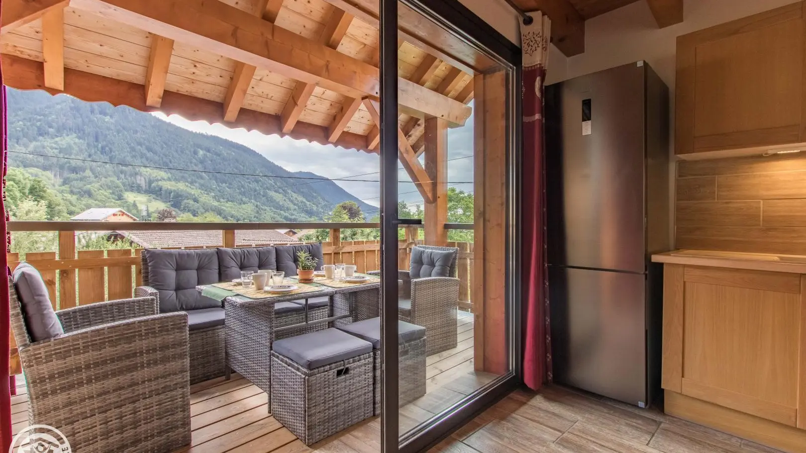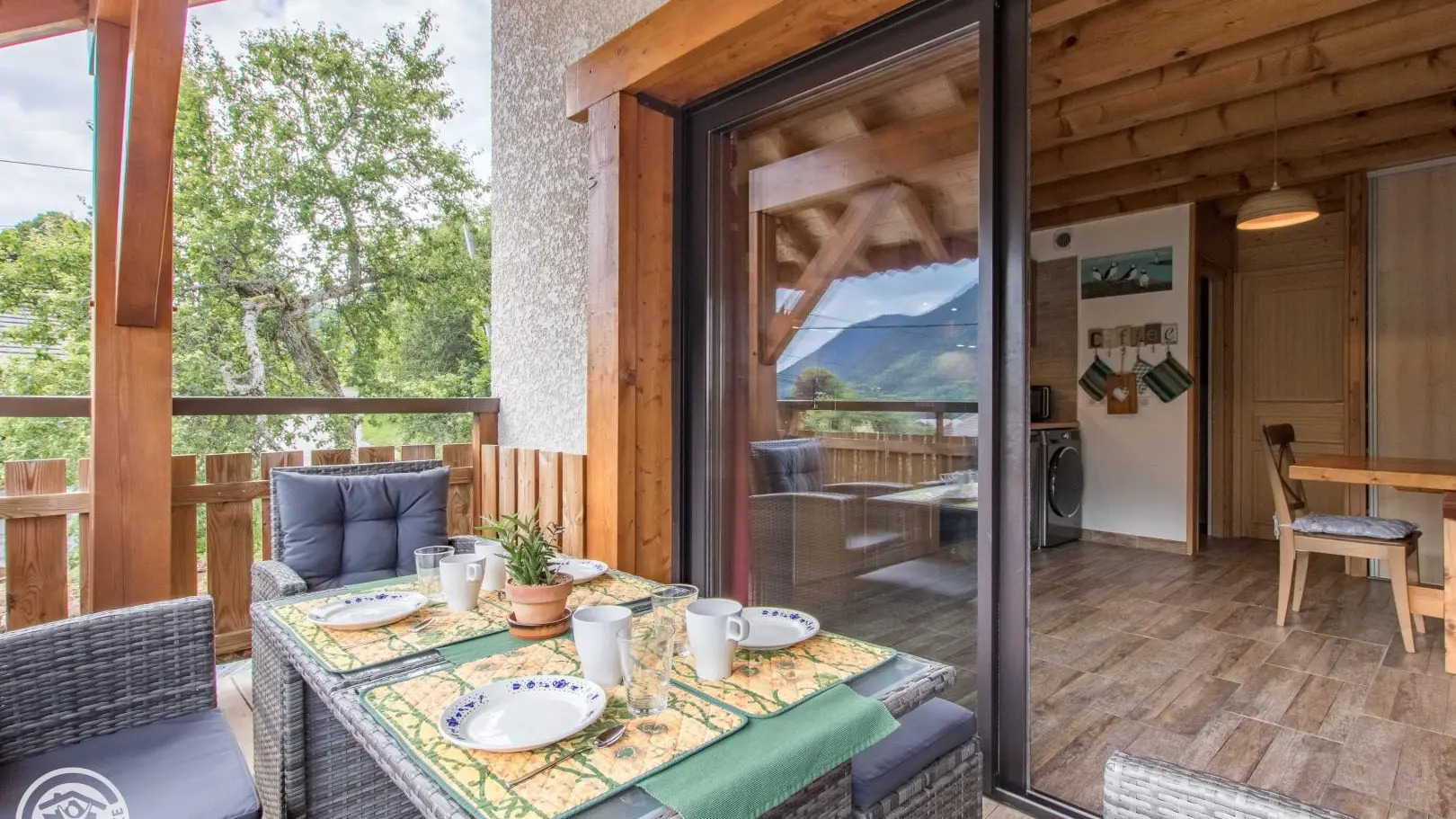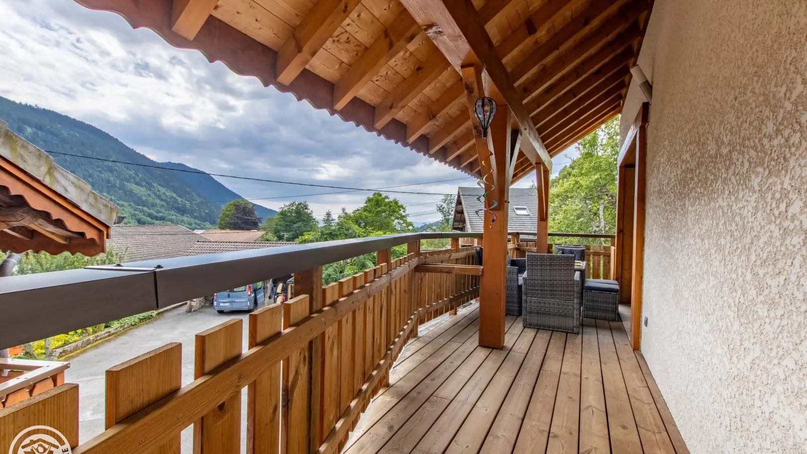 Private east-facing terrace with mountain views with garden furniture, deckchairs, parasol, barbecue. South balcony with relaxation lounge and hammock. Garden/land. Private parking in front of the house (2 spaces).