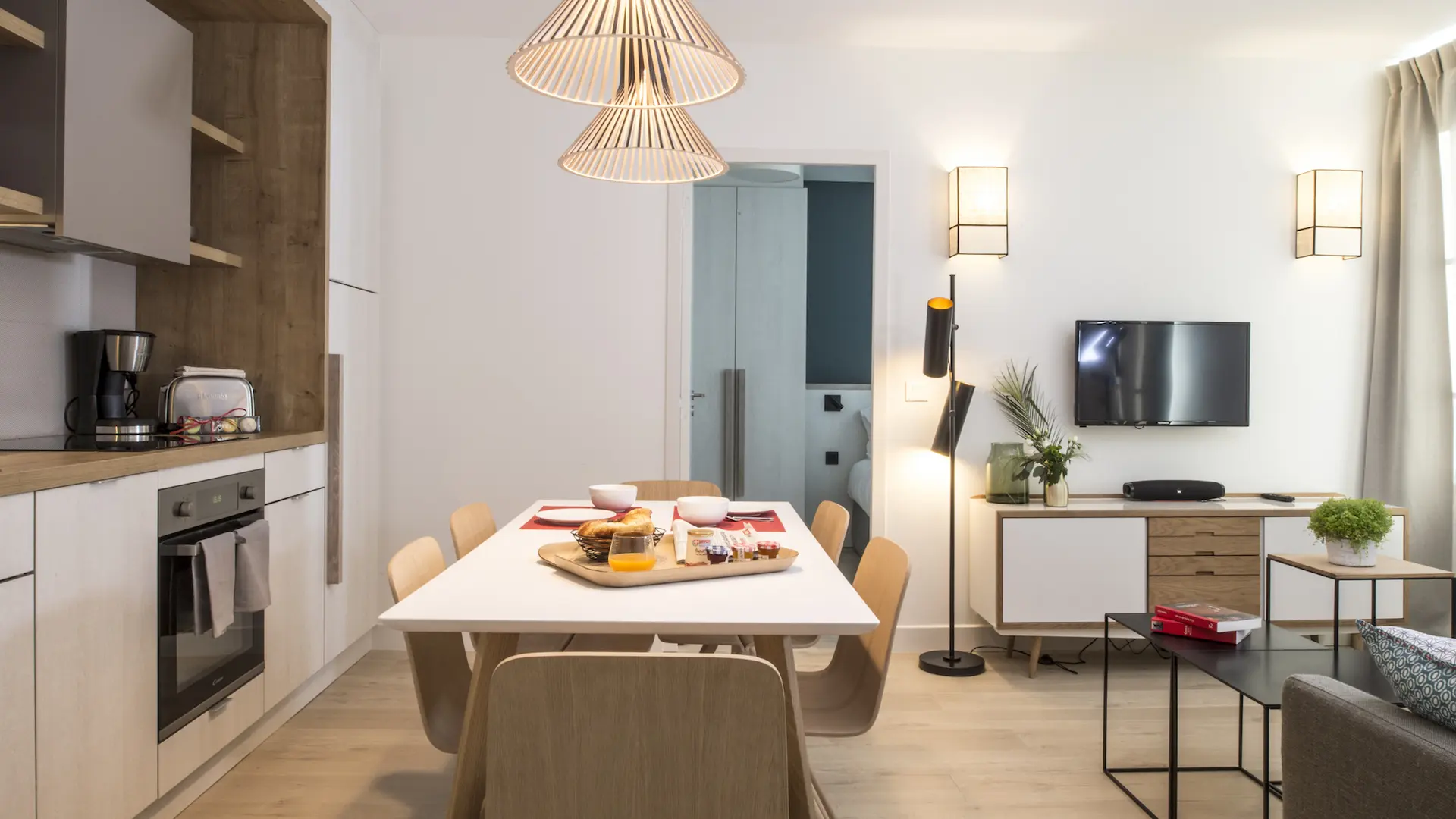 From large studios to 4-room (3-bedroom) apartments, each apartment has a real kitchen, and you can enjoy the same services as a hotel. The upper-floor apartments also boast magnificent views of Mont Blanc. Experience the mountains all year round, summer and winter alike. Enjoy the benefits of apartments with hotel services.