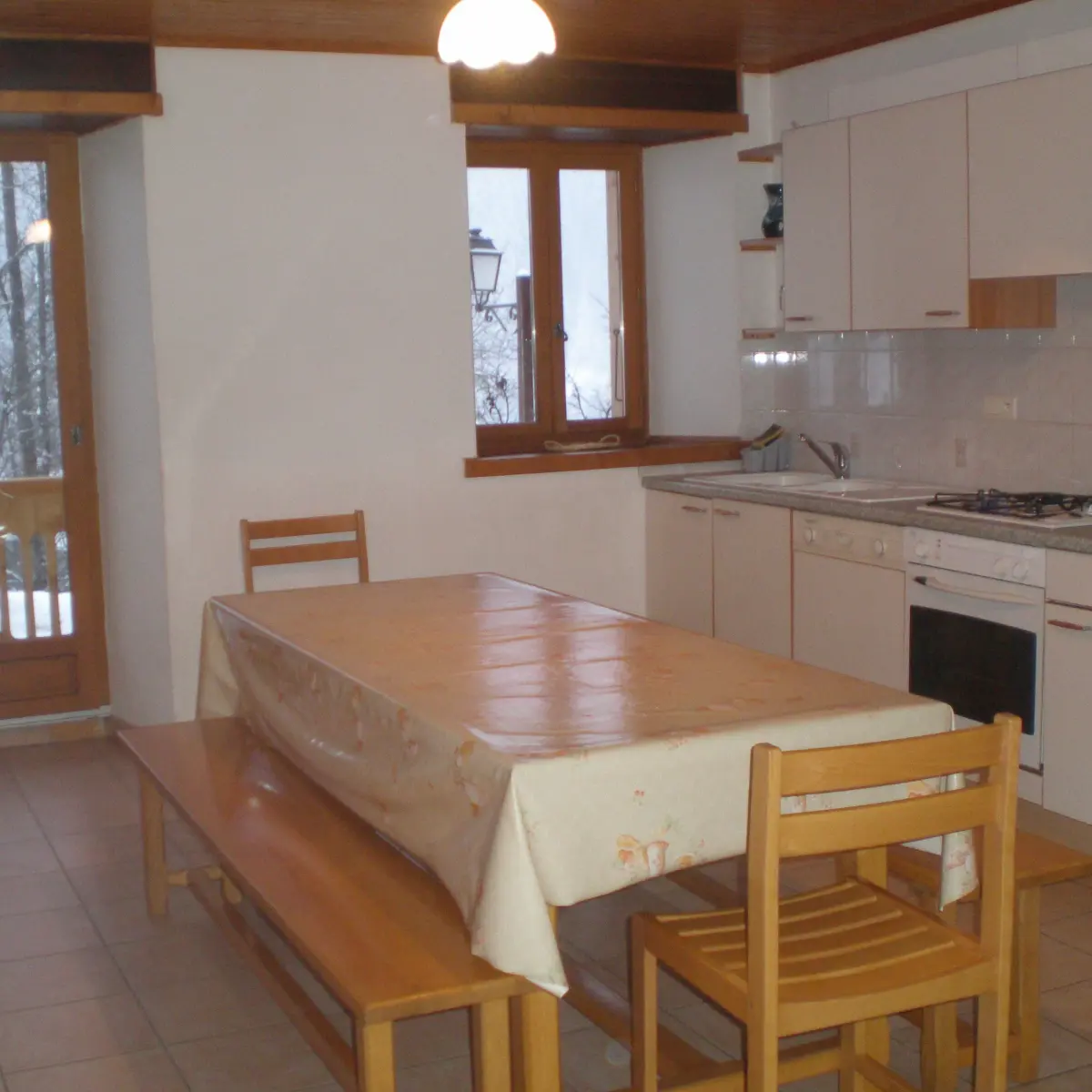 Two bathrooms, two toilets. Two double bedrooms with double bed and pillows. One bedroom for three people with a single bed and a bunk bed and another bedroom with a bunk bed and a single bed. A ski room. Raclette machine, savoyard fondue stove. Terrace with table and chairs, barbecue.