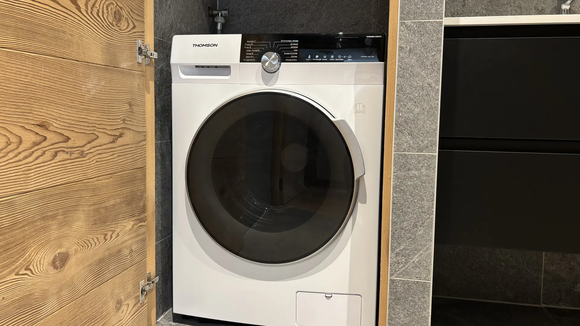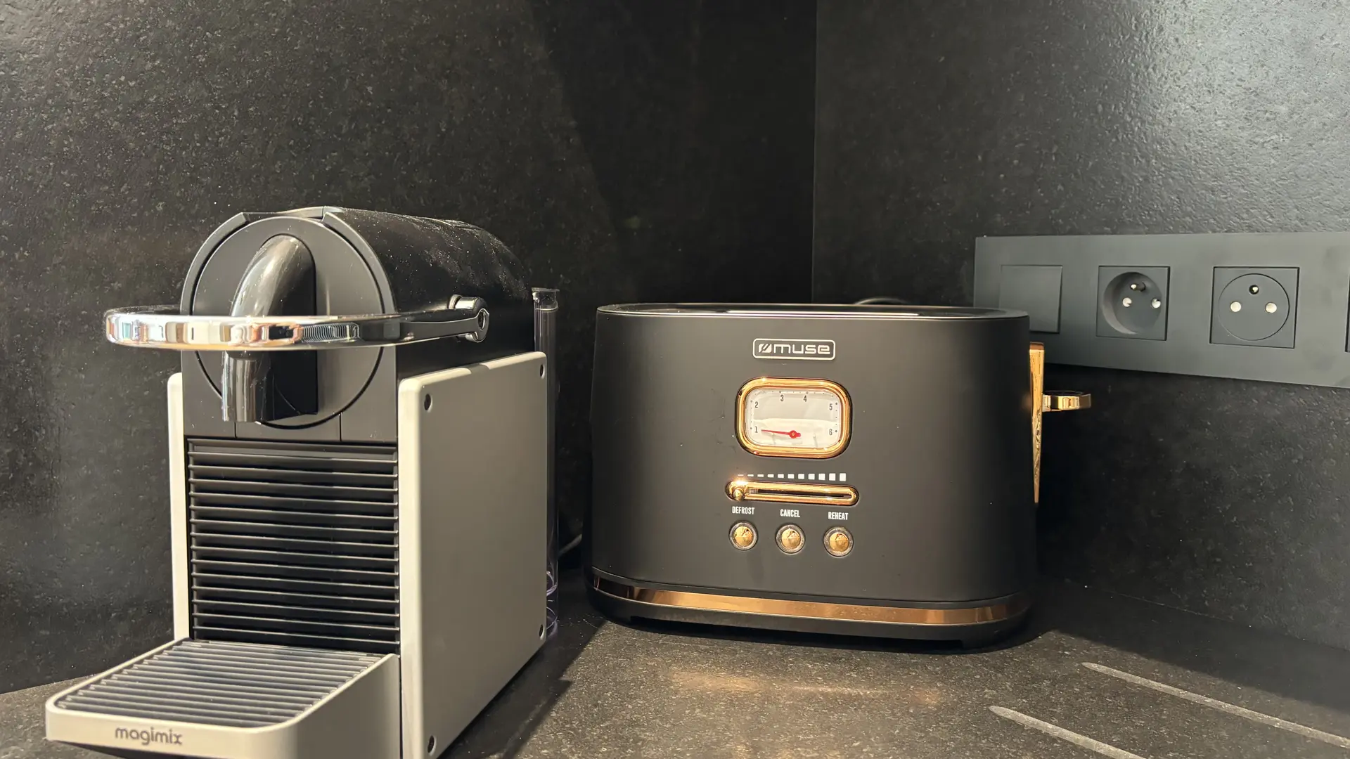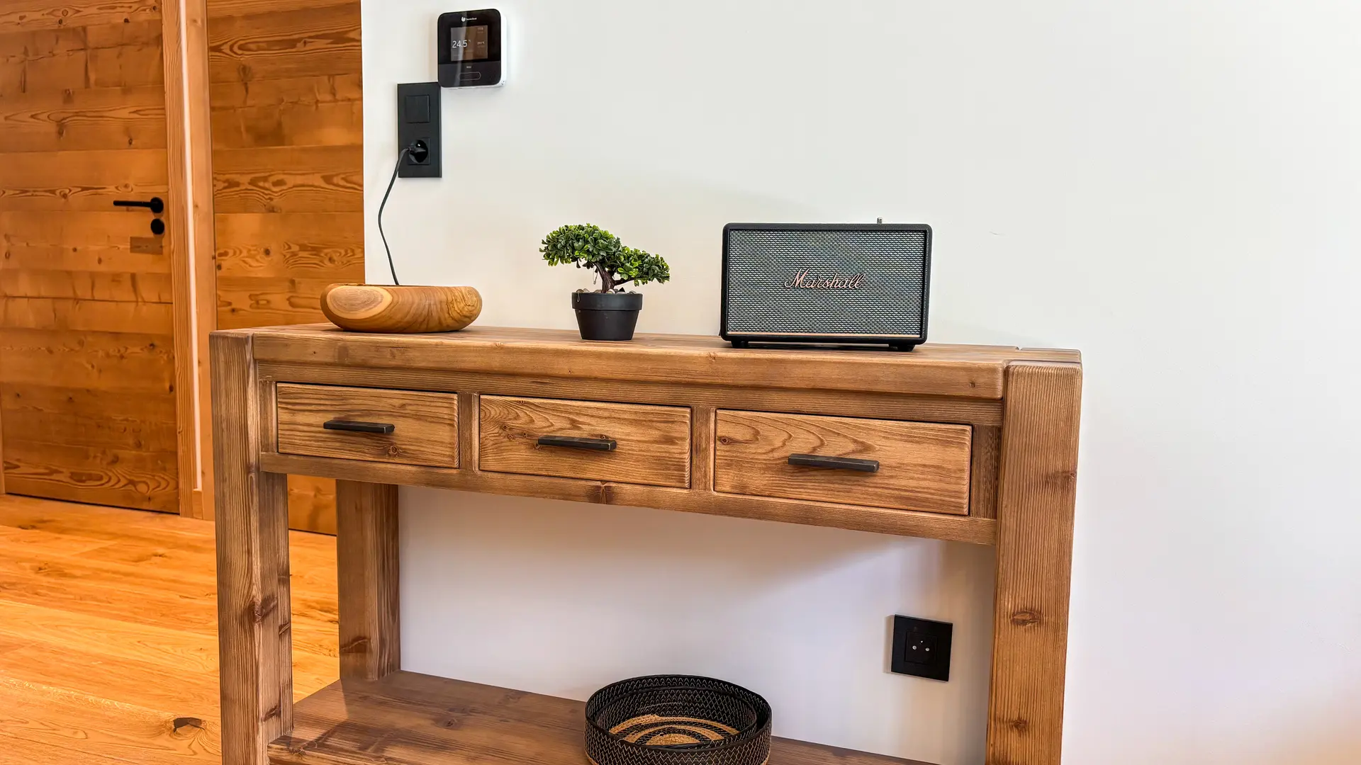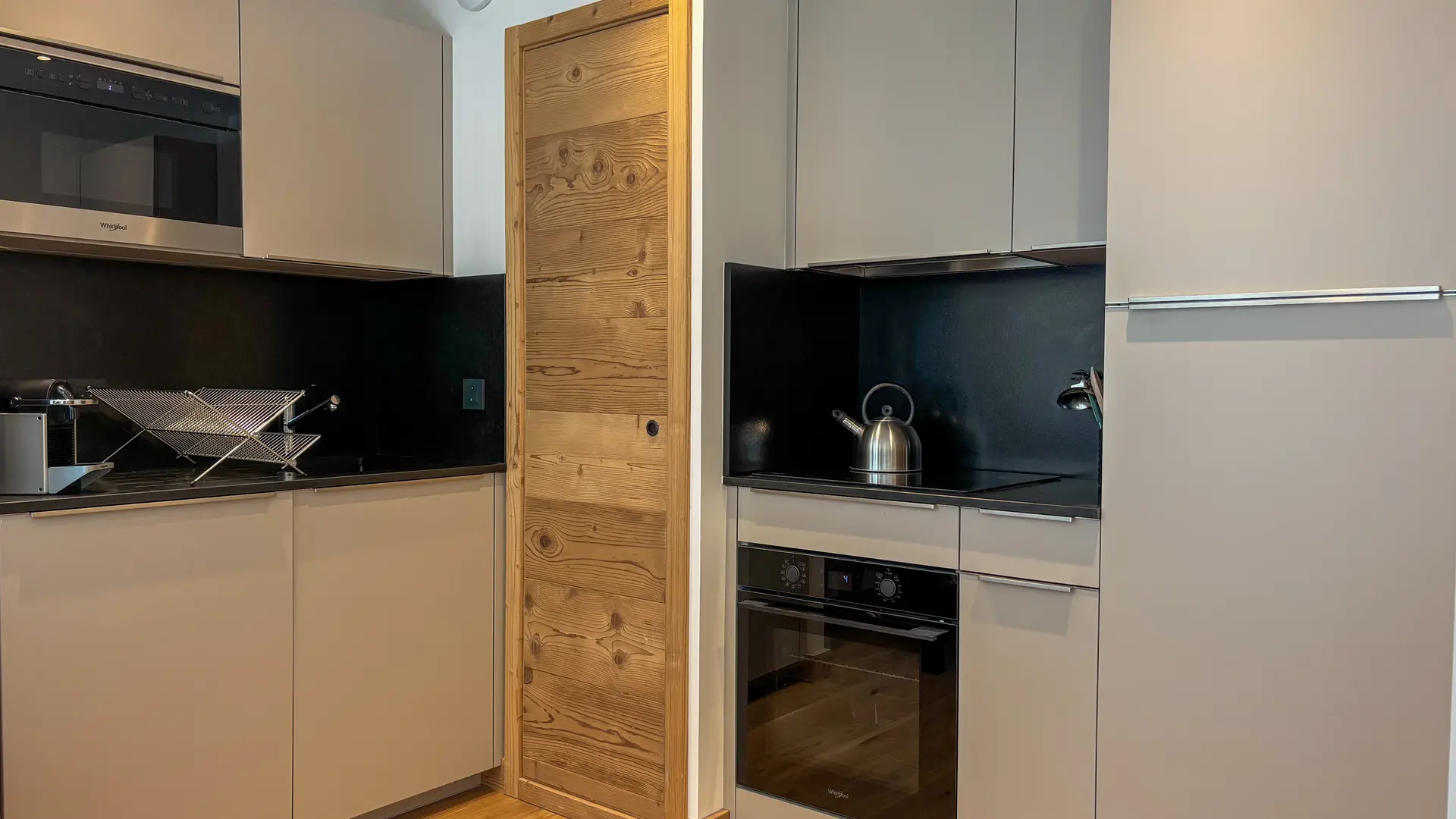 - A spacious and bright living room with a fully equipped kitchen (dishwasher, induction hob, fridge-freezer, toaster, Nespresso machine), dining area and lounge with a high-end sofa bed + Marshall Bluetooth speaker.
