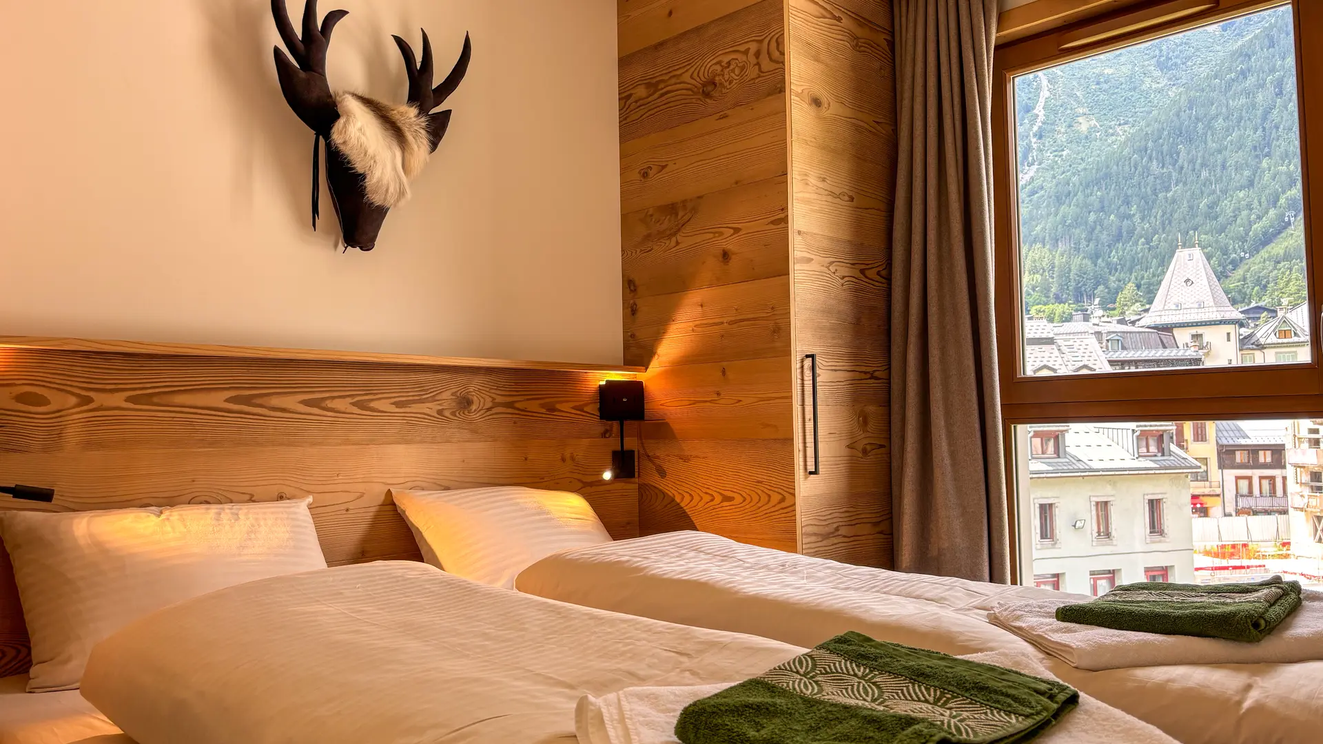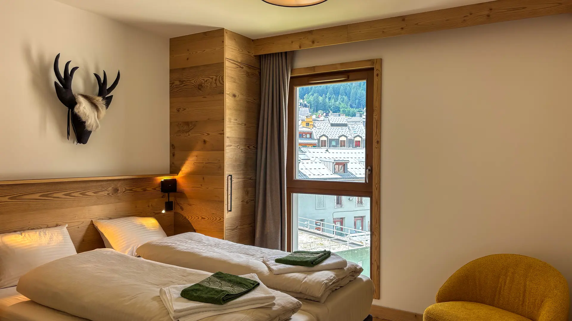 - A bedroom with two single beds (80x200) that can be converted into a double bed, with a view