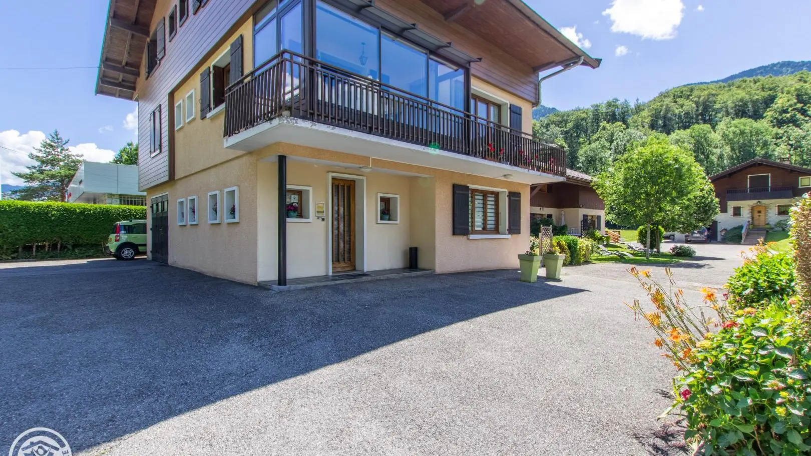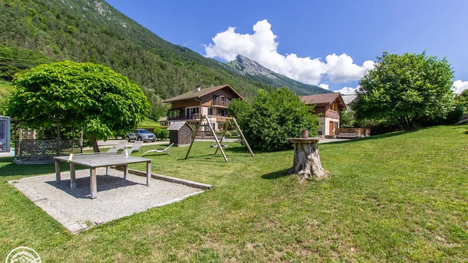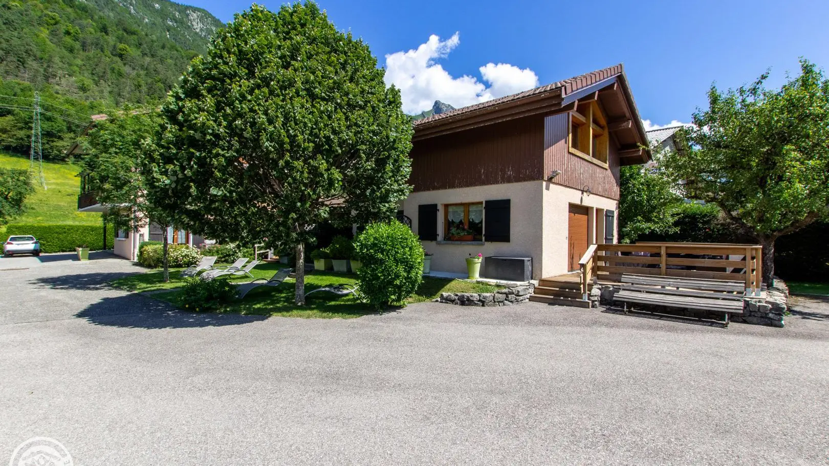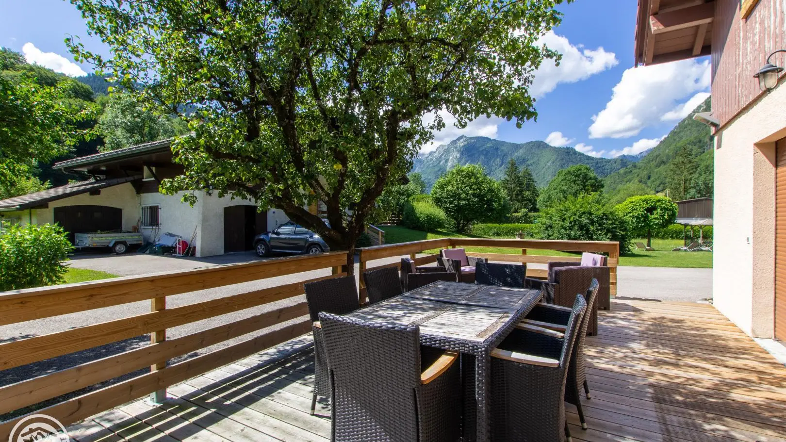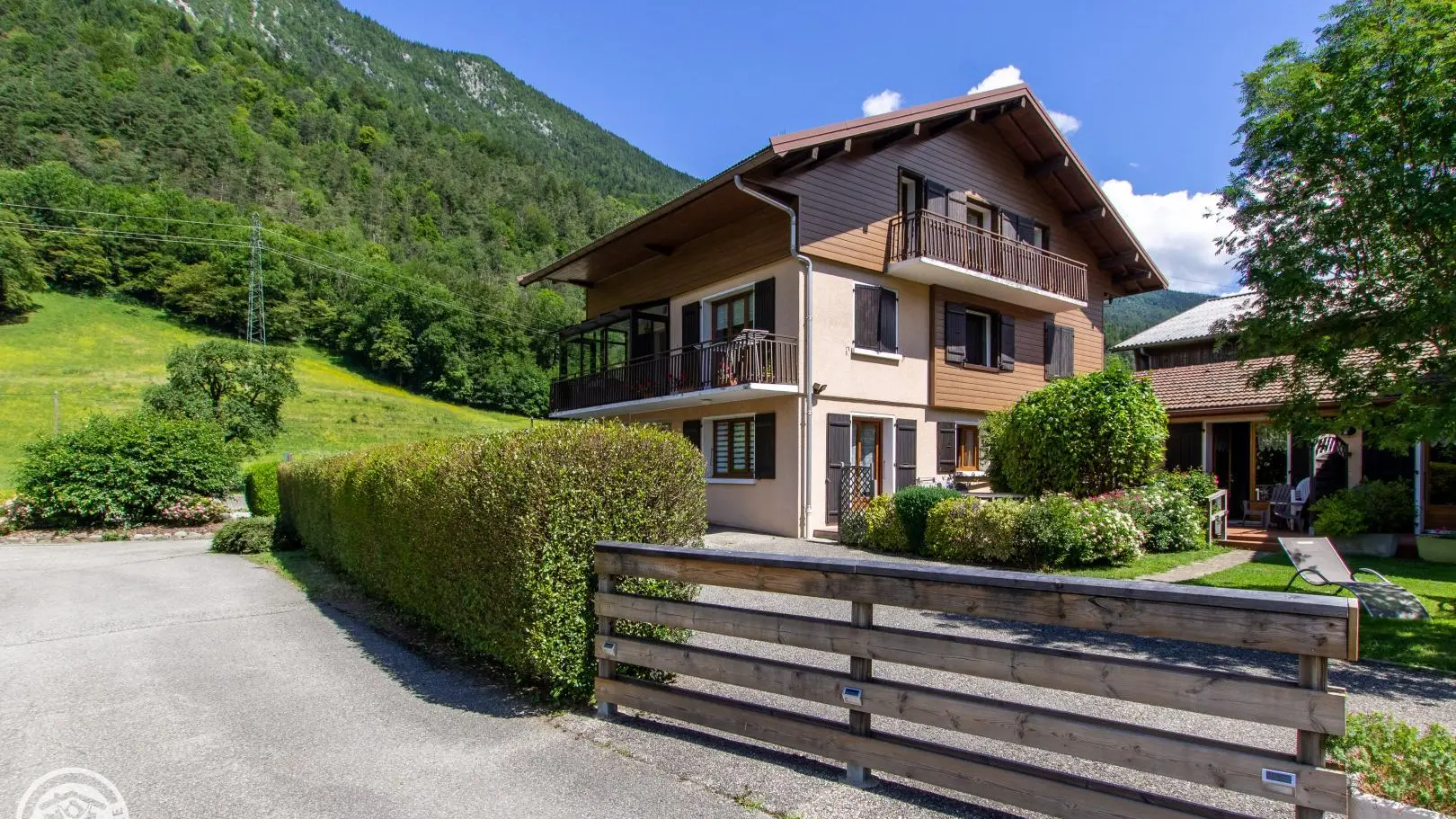 Gîte near a busy road (linking Thônes to the Aravis resorts), bedrooms, living room, balcony and terrace on the garden side.