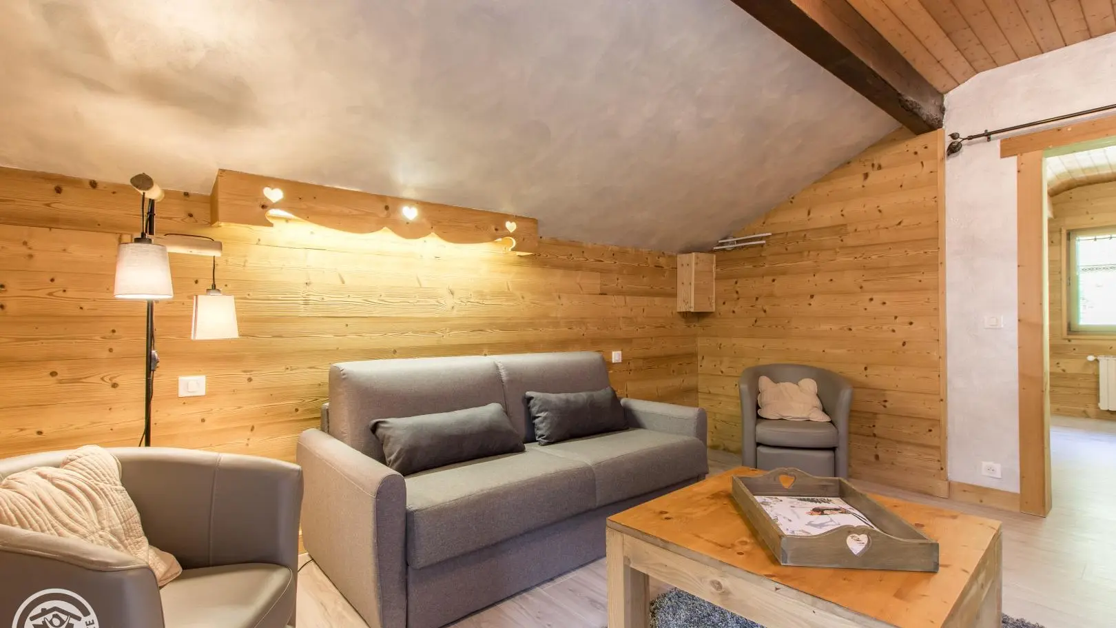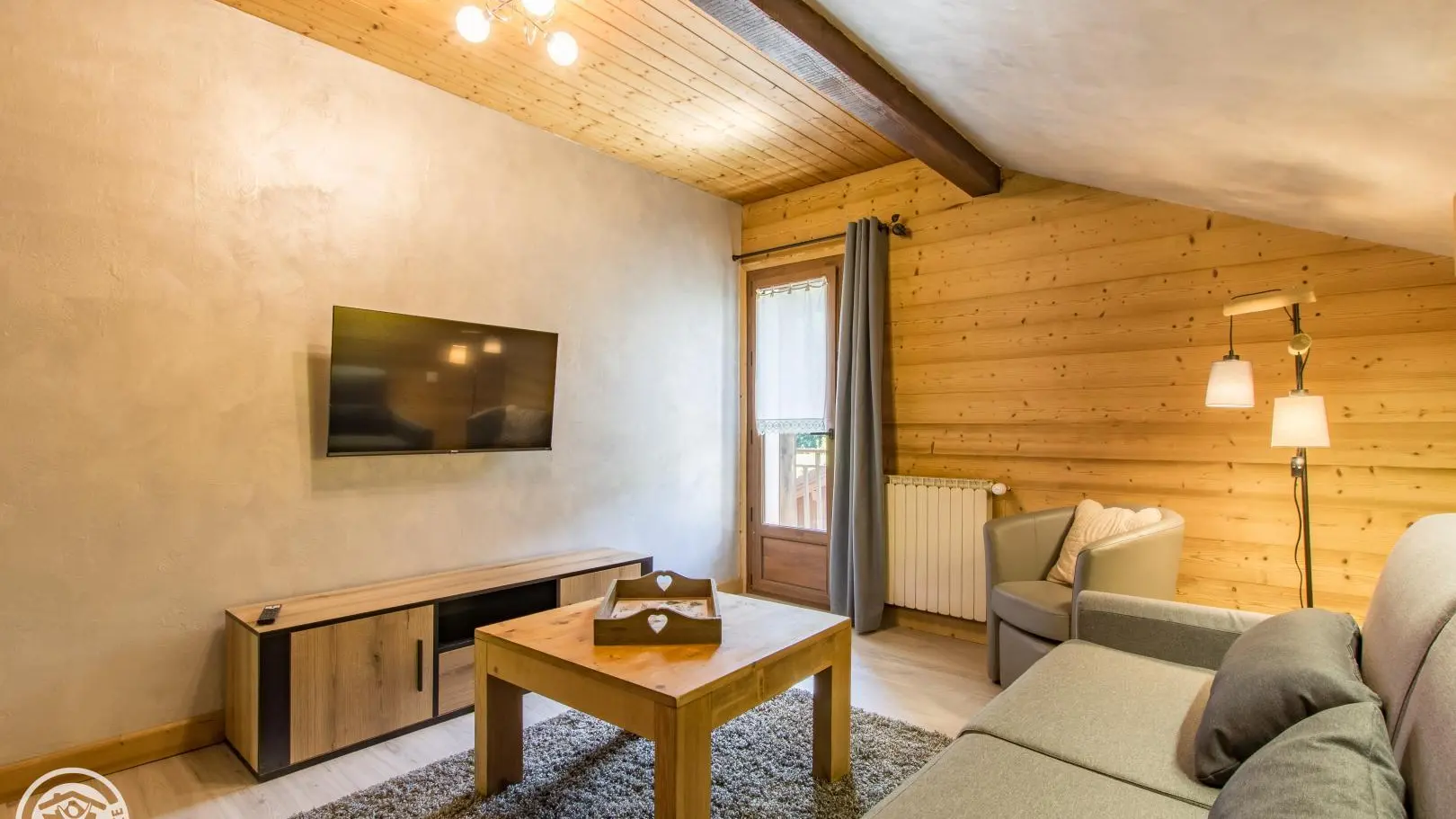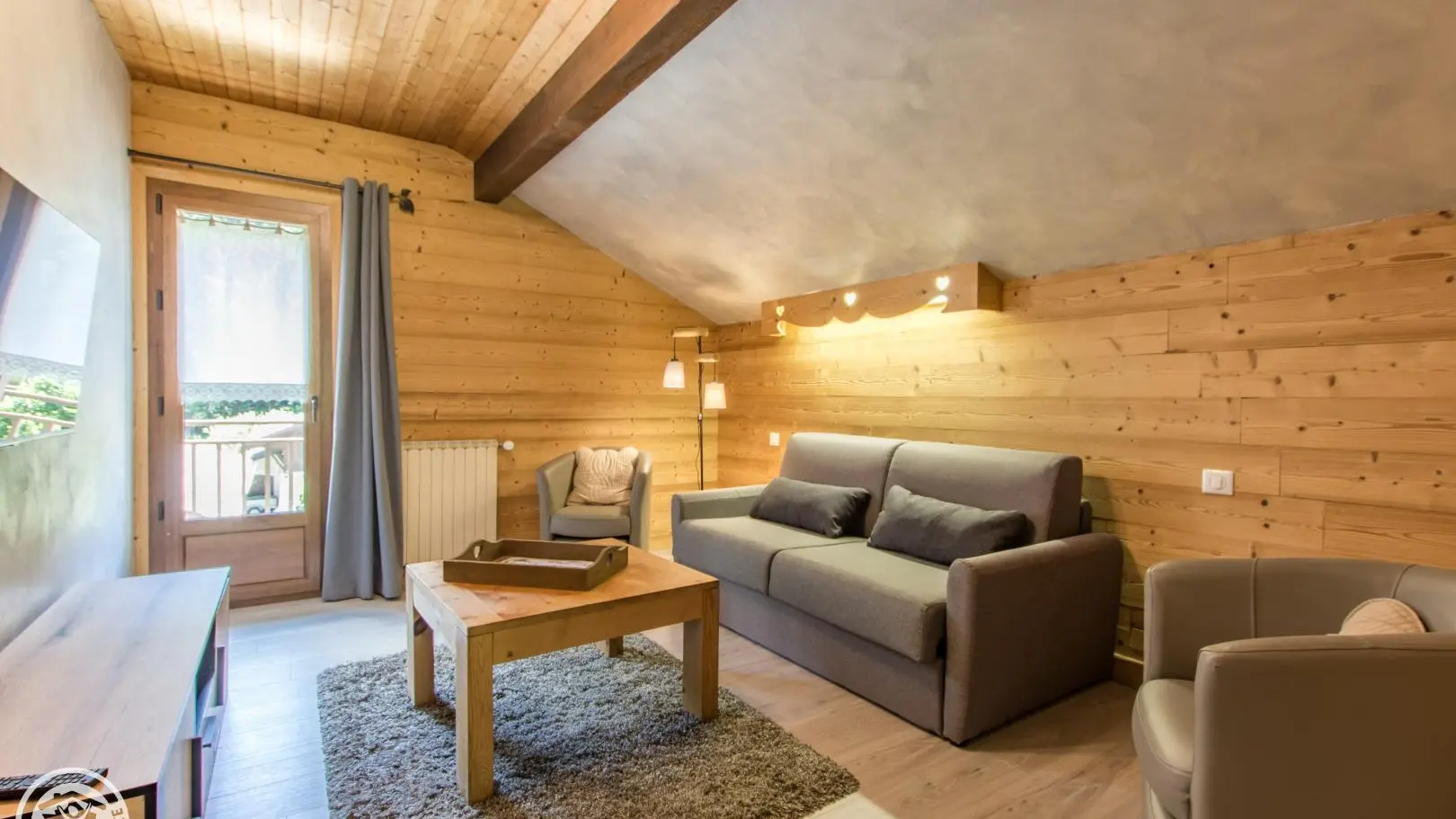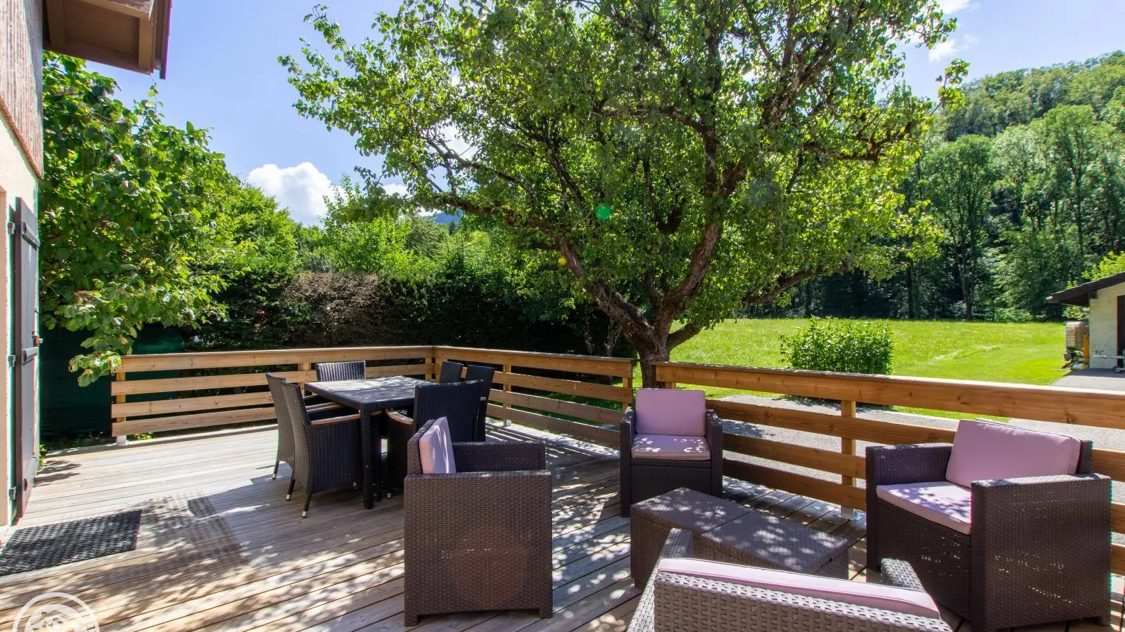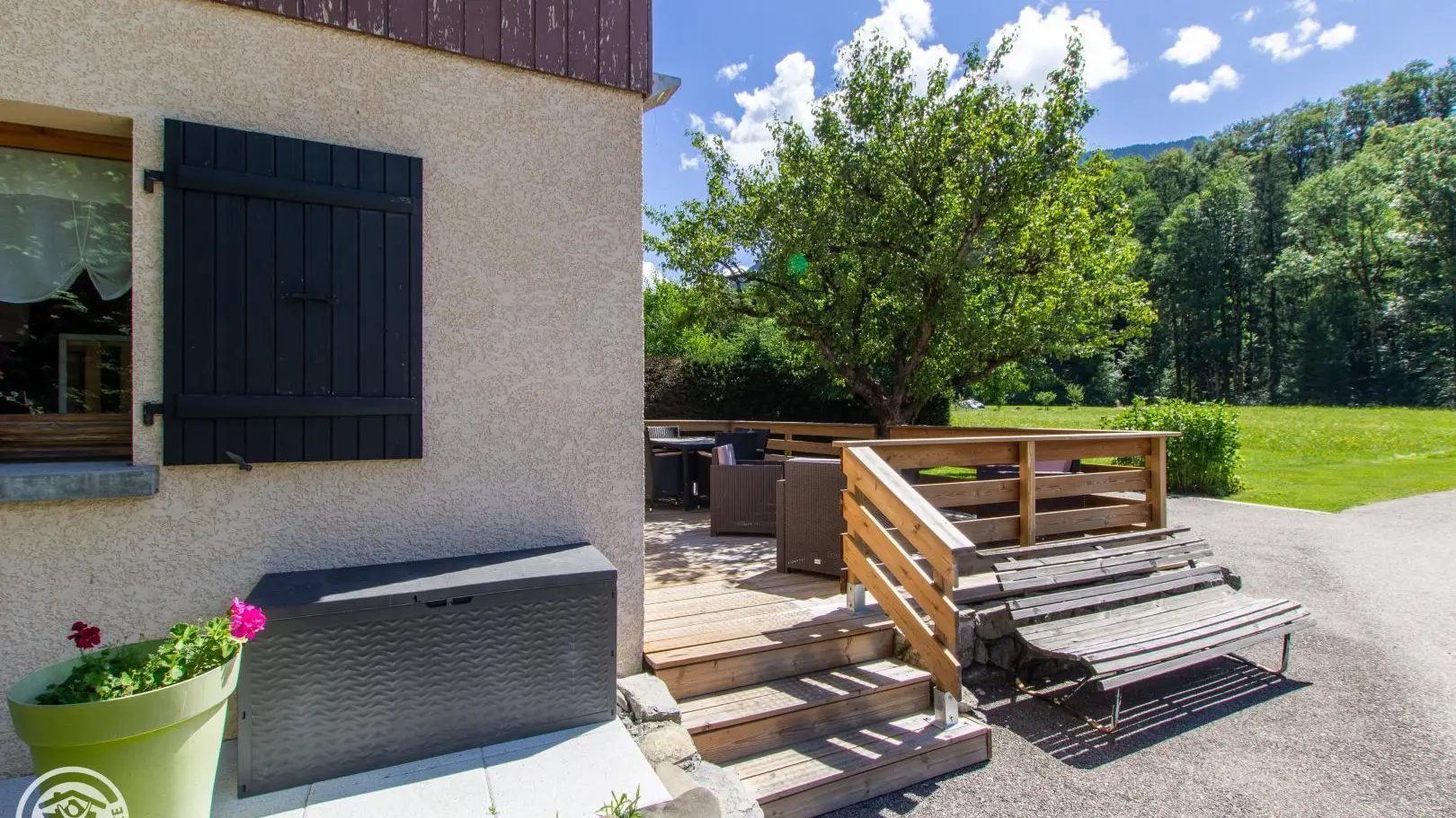 Gîte near a busy road (linking Thônes to the Aravis resorts), bedrooms, living room, balcony and terrace on the garden side.