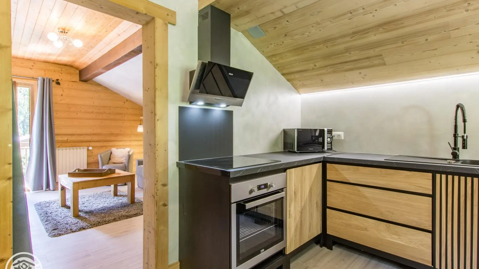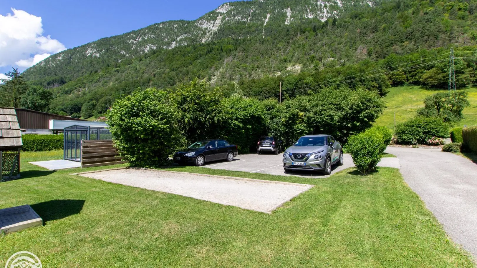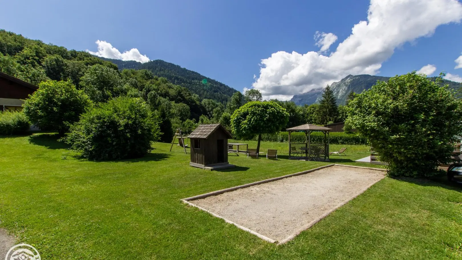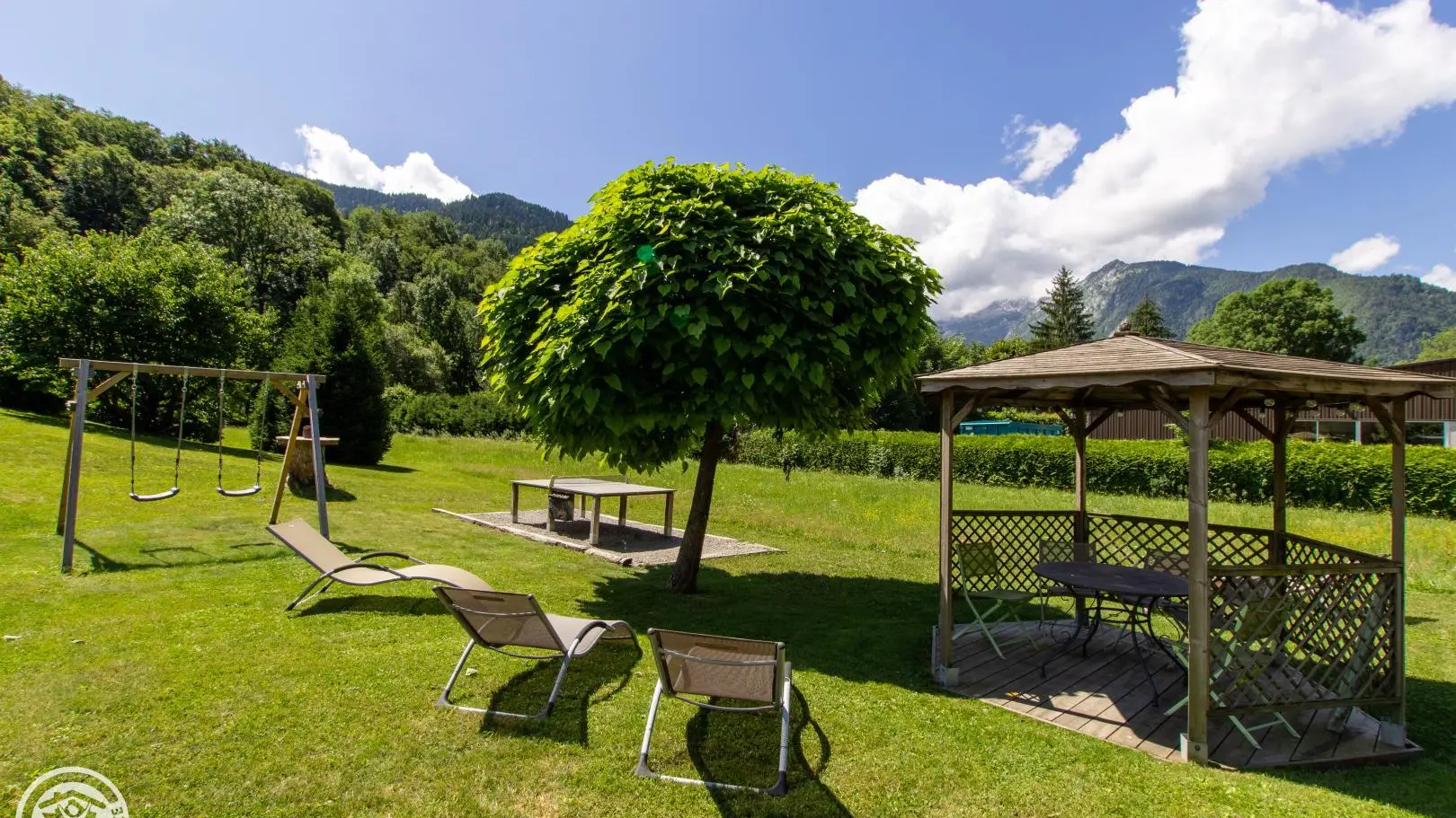 Southeast facing balcony. Large common ground with swing, table tennis, pétanque court. A terrace with garden furniture is reserved for this cottage. Parking and courtyard in the property.