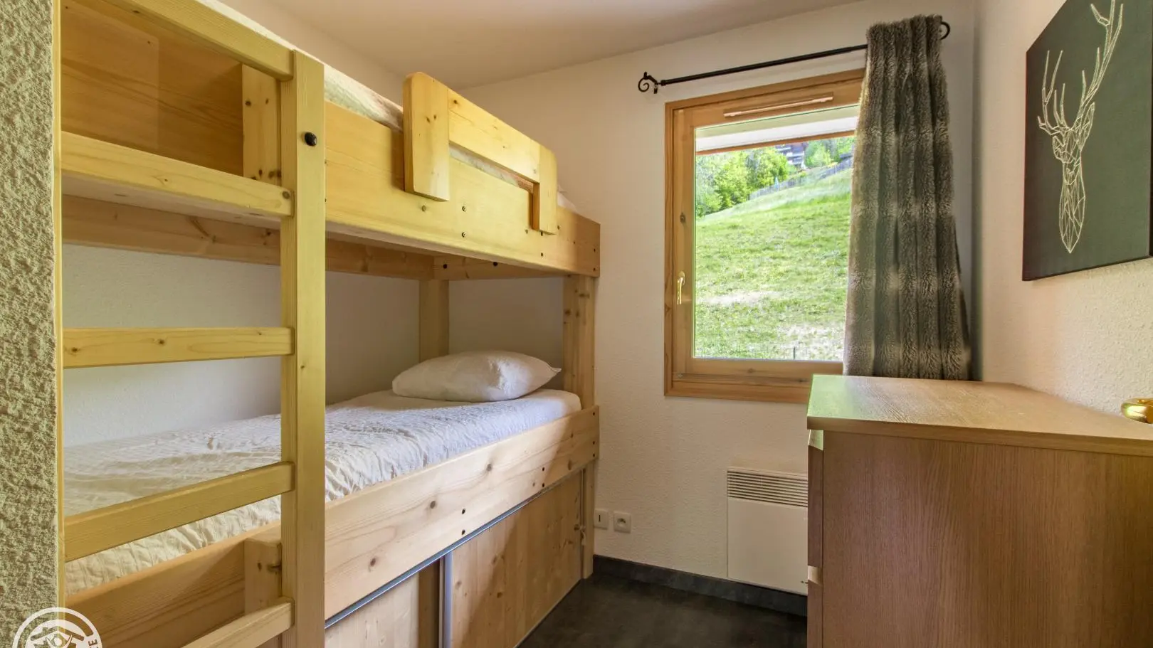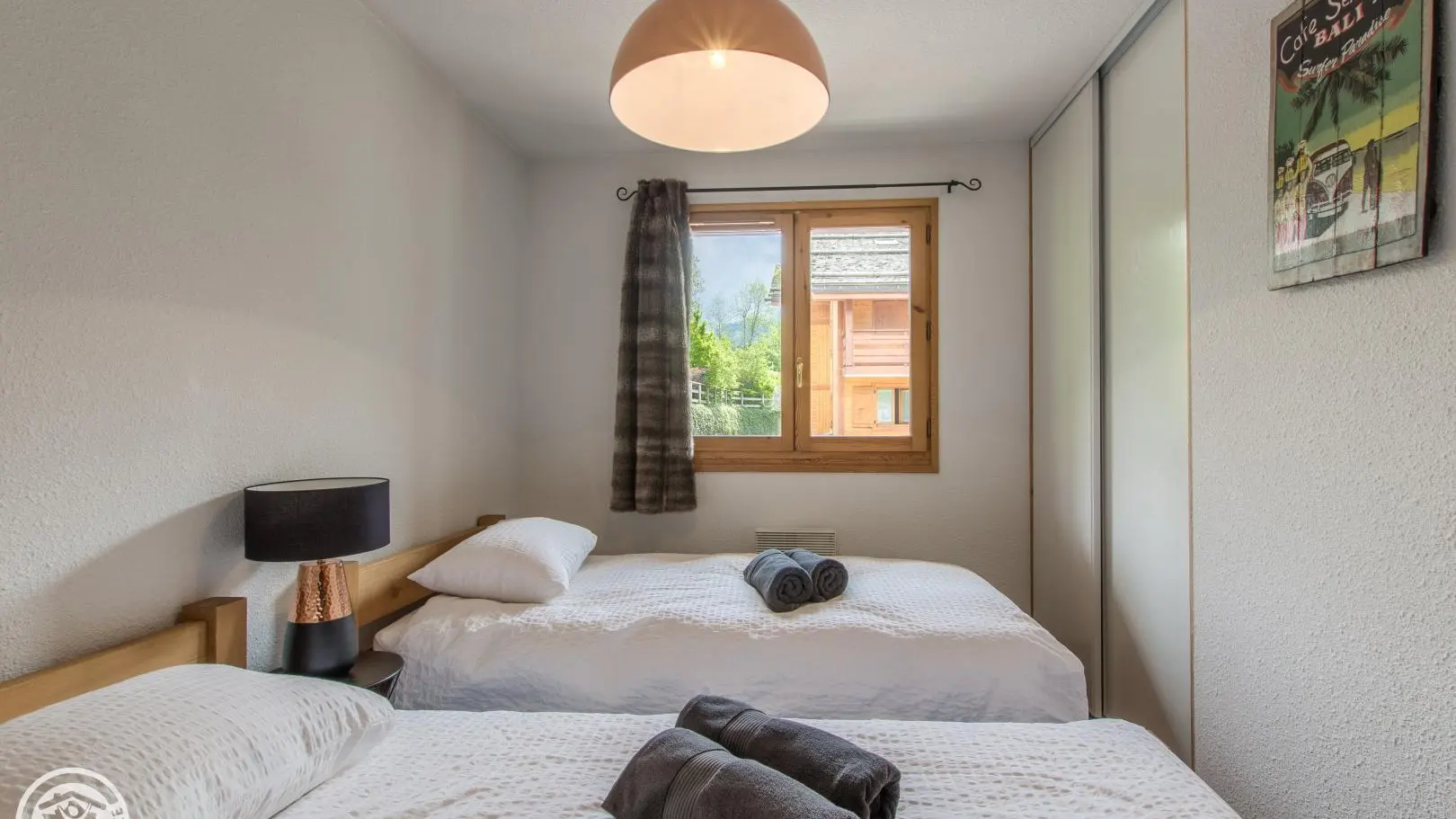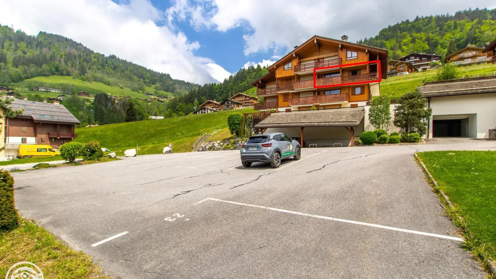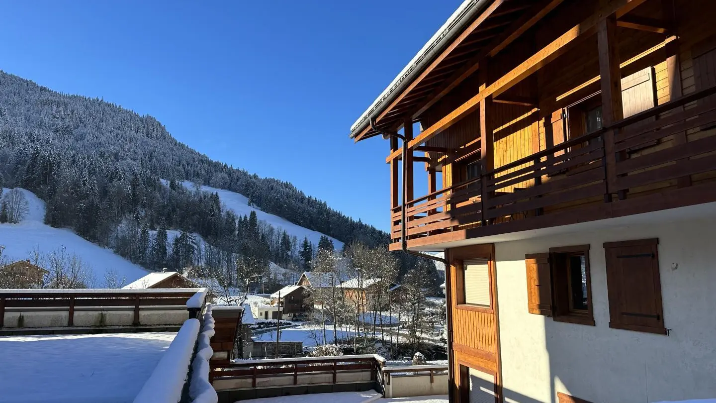 64m² apartment, crossing, located on the 1st floor of a residence near the center of the village of Grand-Bornand. Beautiful services, warm atmosphere. Common entrance at the rear of the condominium.