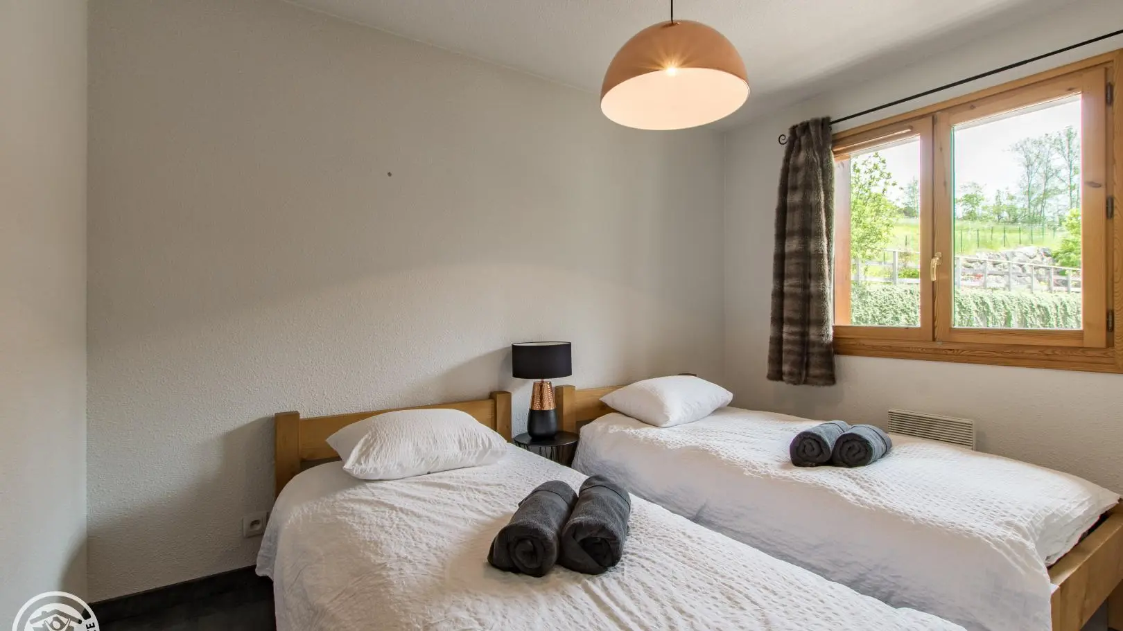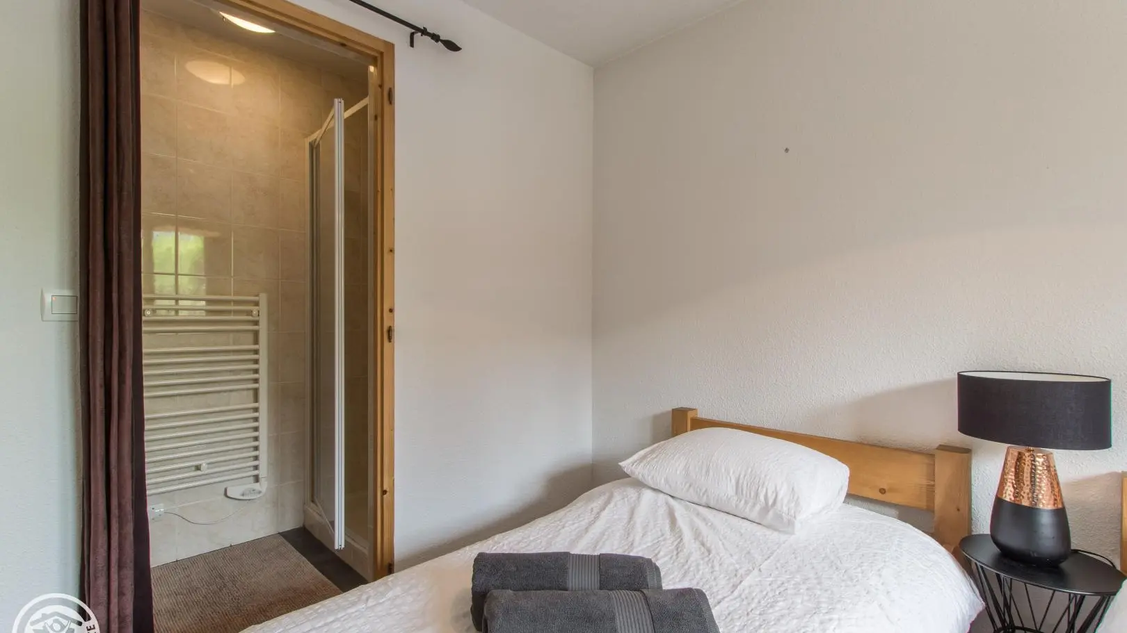 3 bedrooms: bedroom 1 (1 180x200cm bed, television), bedroom 2 (2 90x190cm beds, bathroom with vanity basin and shower), small bedroom 3 (2 90x190cm bunk beds).