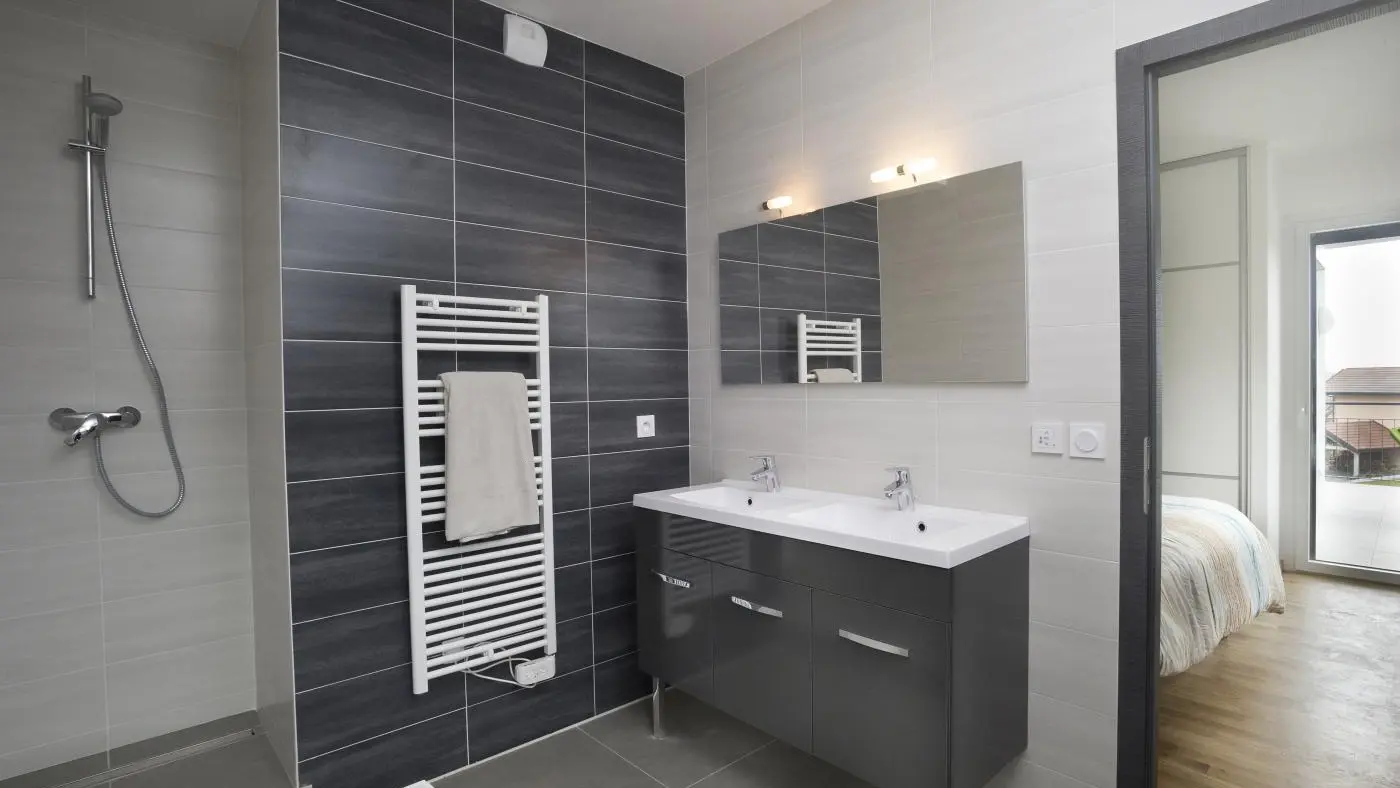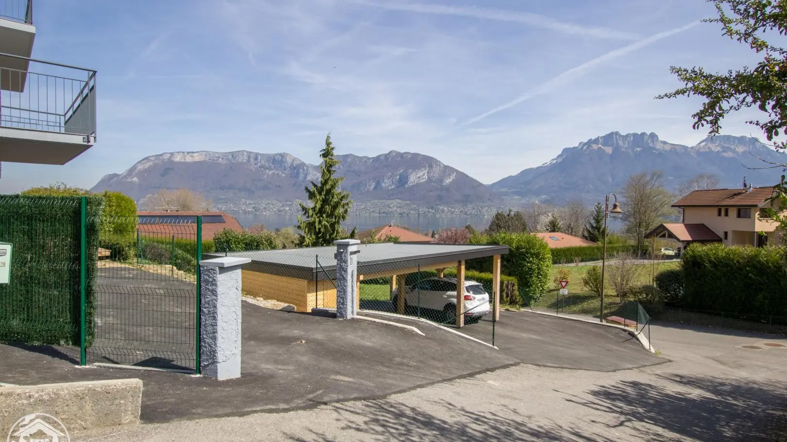 Unobstructed view of Lake Annecy and the mountains for this magnificent 108m² apartment fitted out in a very modern atmosphere on the 1st floor of a beautiful fully restored house comprising 3 rentals (one apartment per level). Independent entrance from the back of the house.