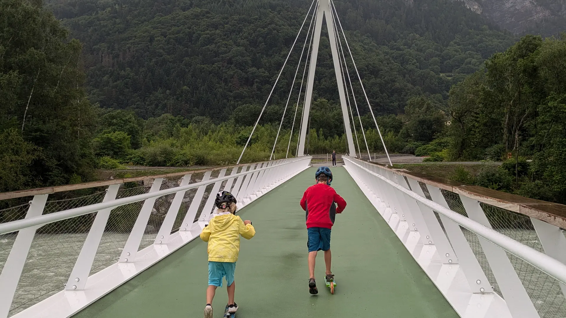 part of the Chamonix-Léman Véloroute route. He only uses roads and avoids dirt paths.
