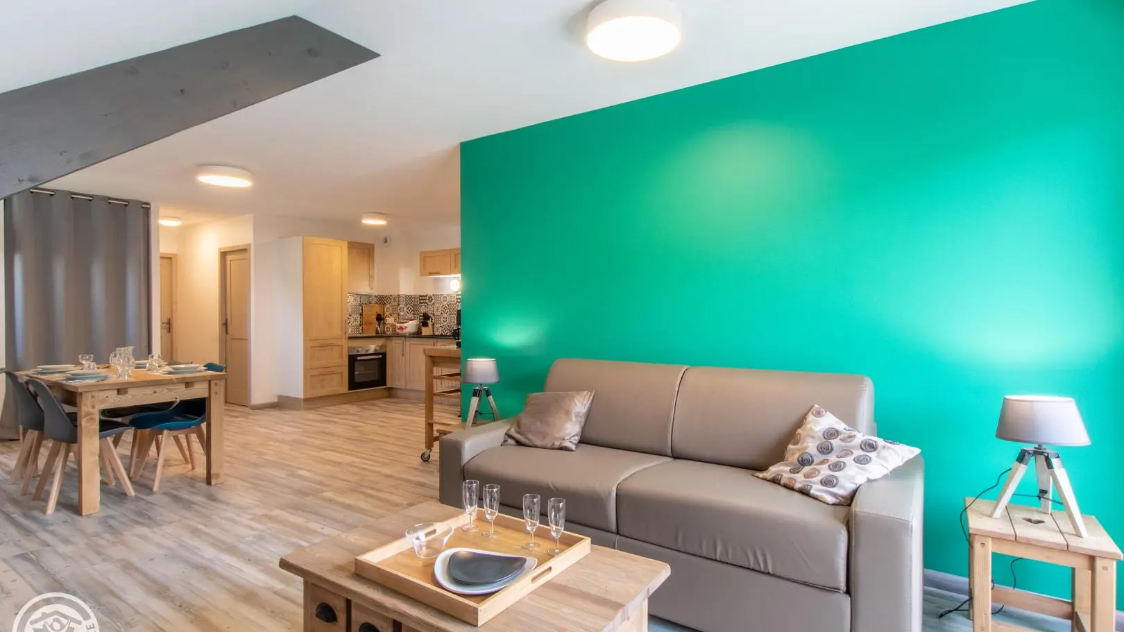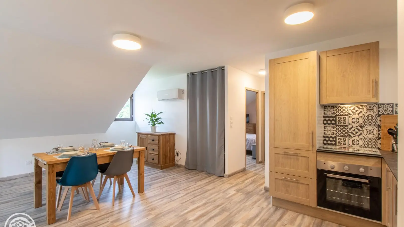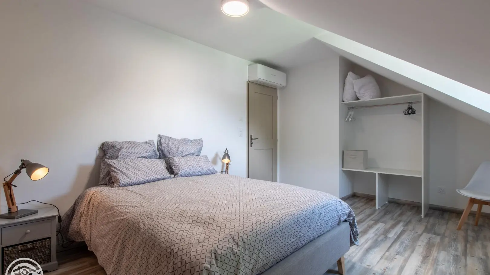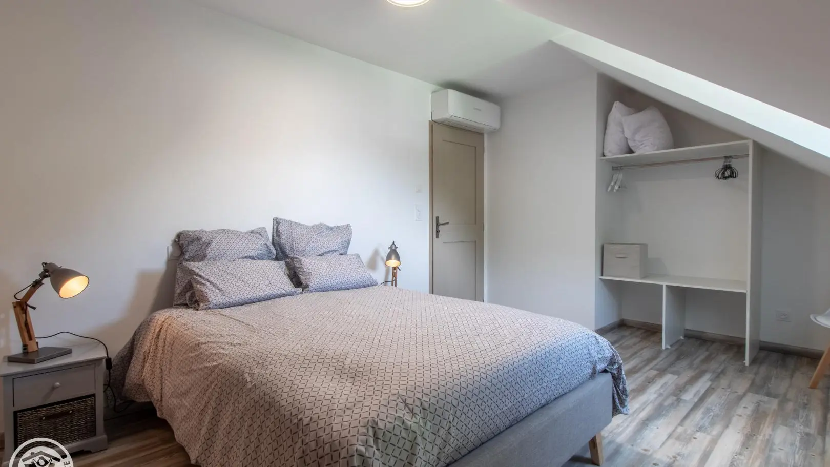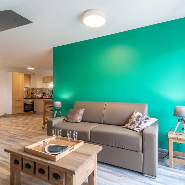 In an old barn completely renovated into a small building comprising four other gîtes (1 on the same level, 3 on the 1st floor), apartment of 51m² (+9m² under attics) fitted out on the 2nd floor. Gîte located in a quiet hamlet of Doussard.