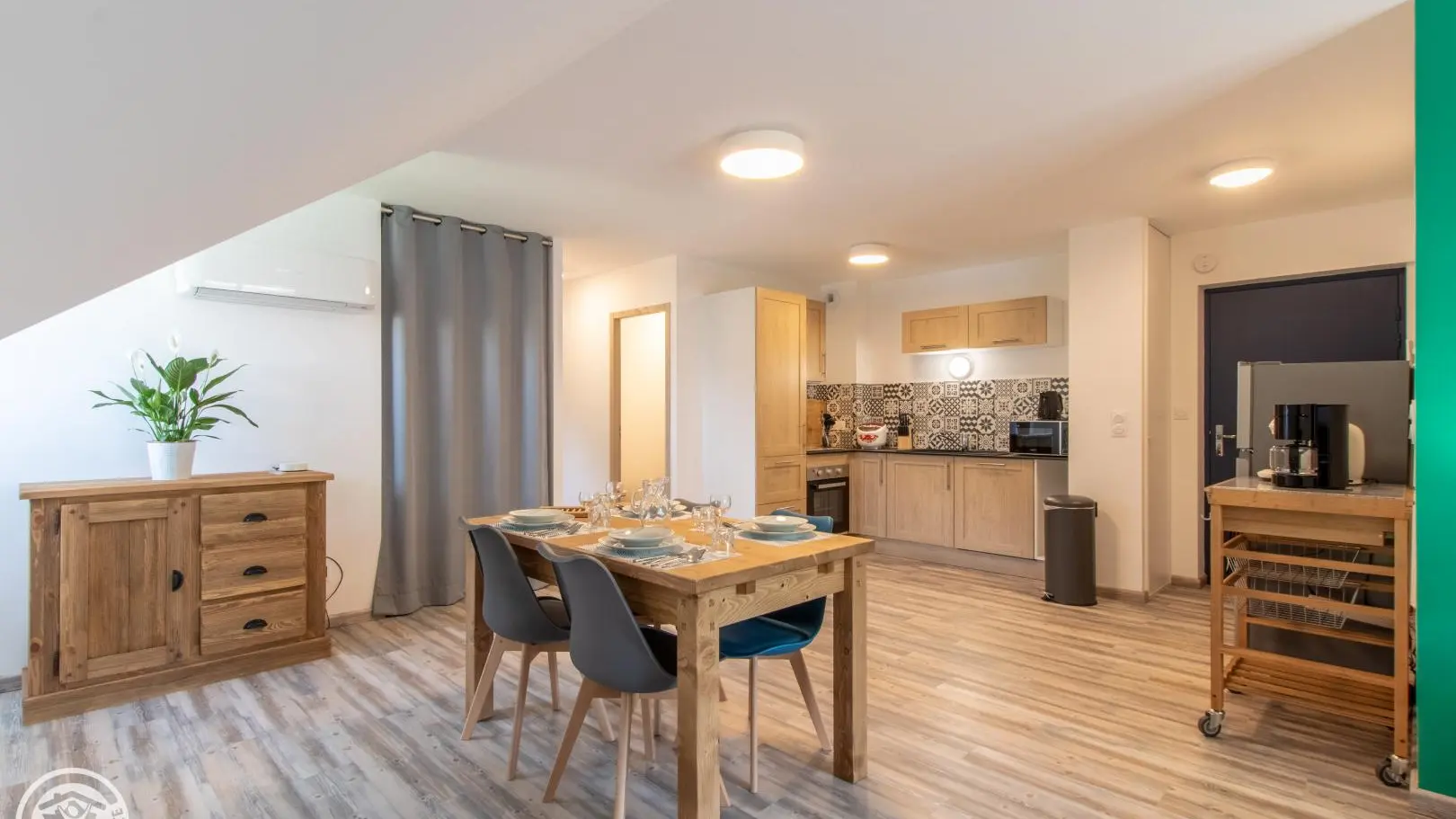 Entrance to the building secured by Vigik badge and intercom. Access to the apartment by a common stairwell with the other gîtes.