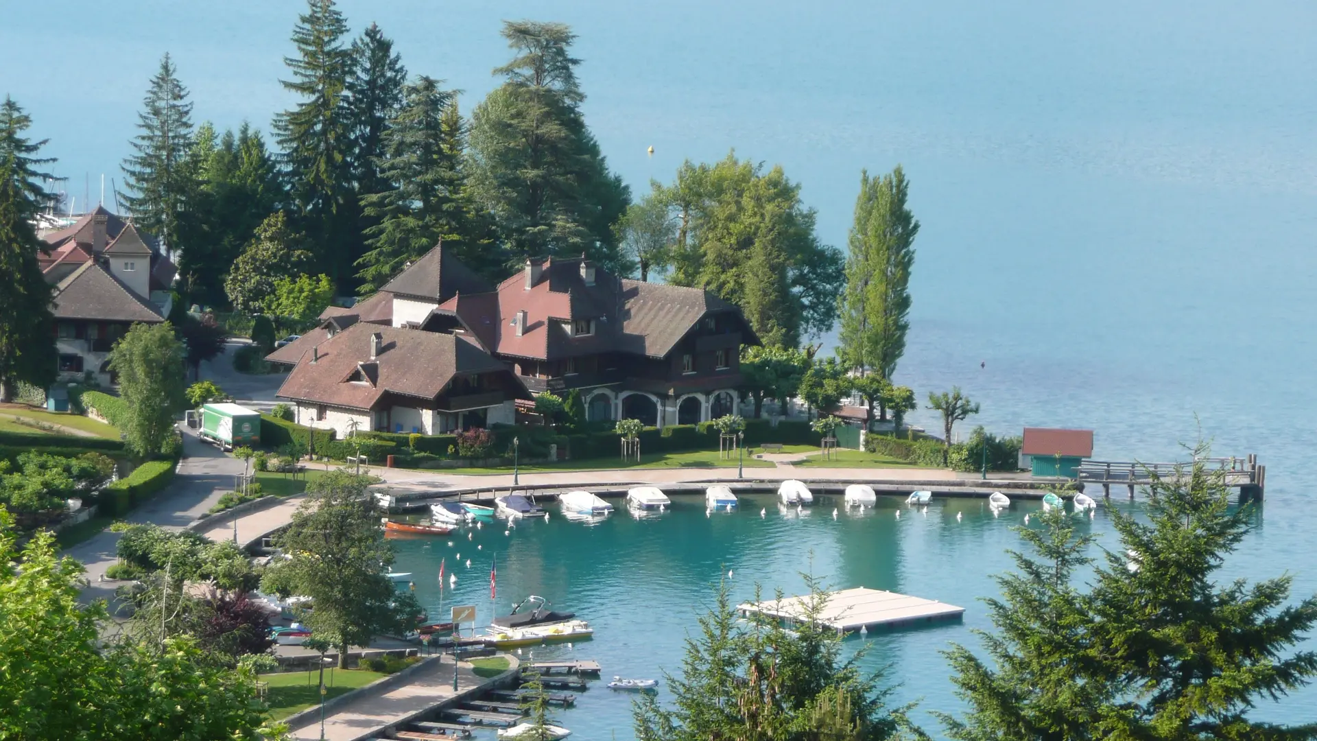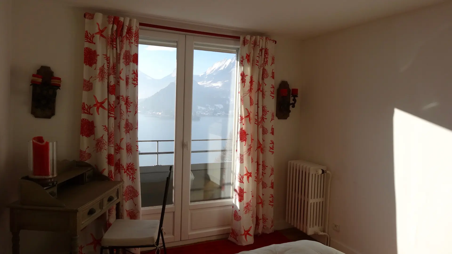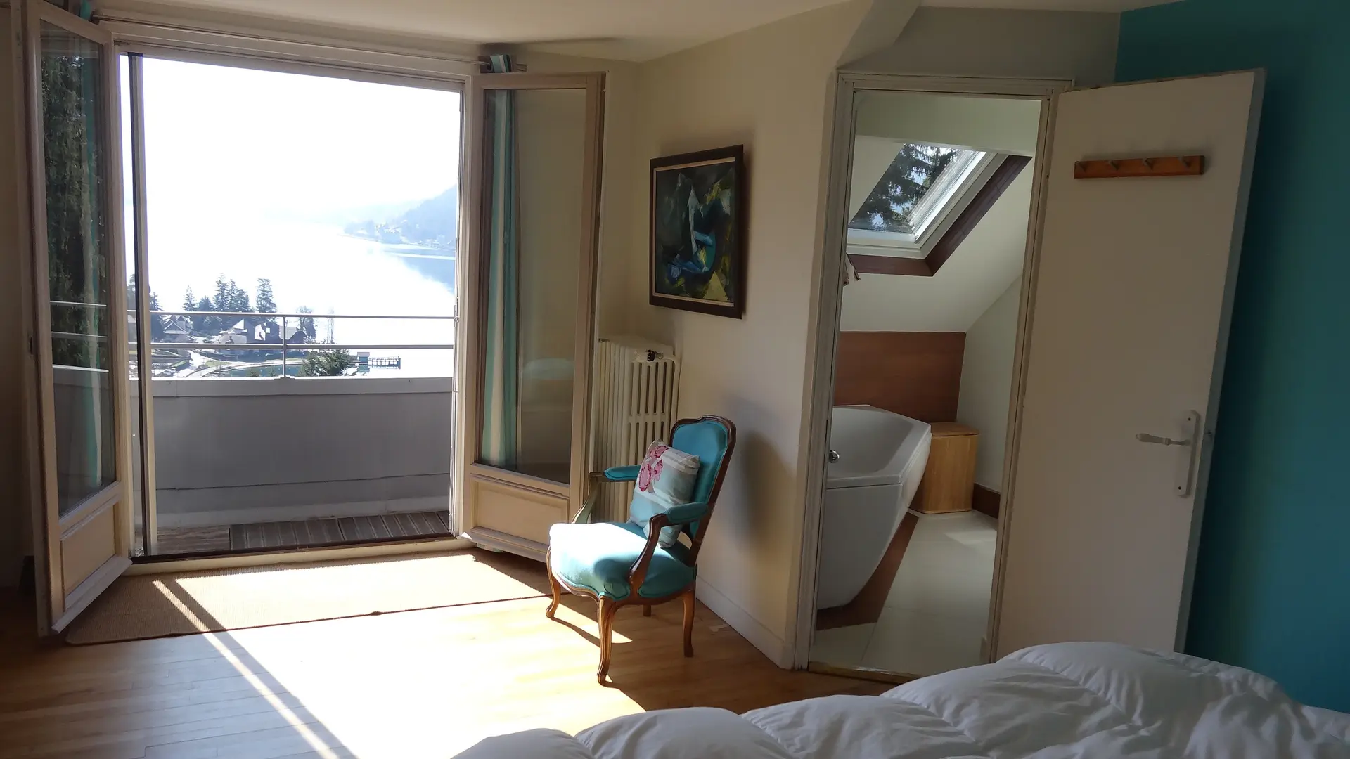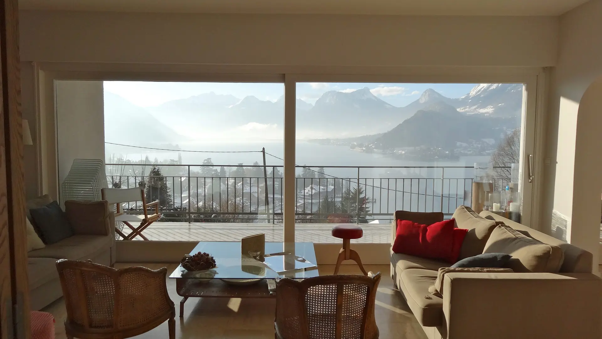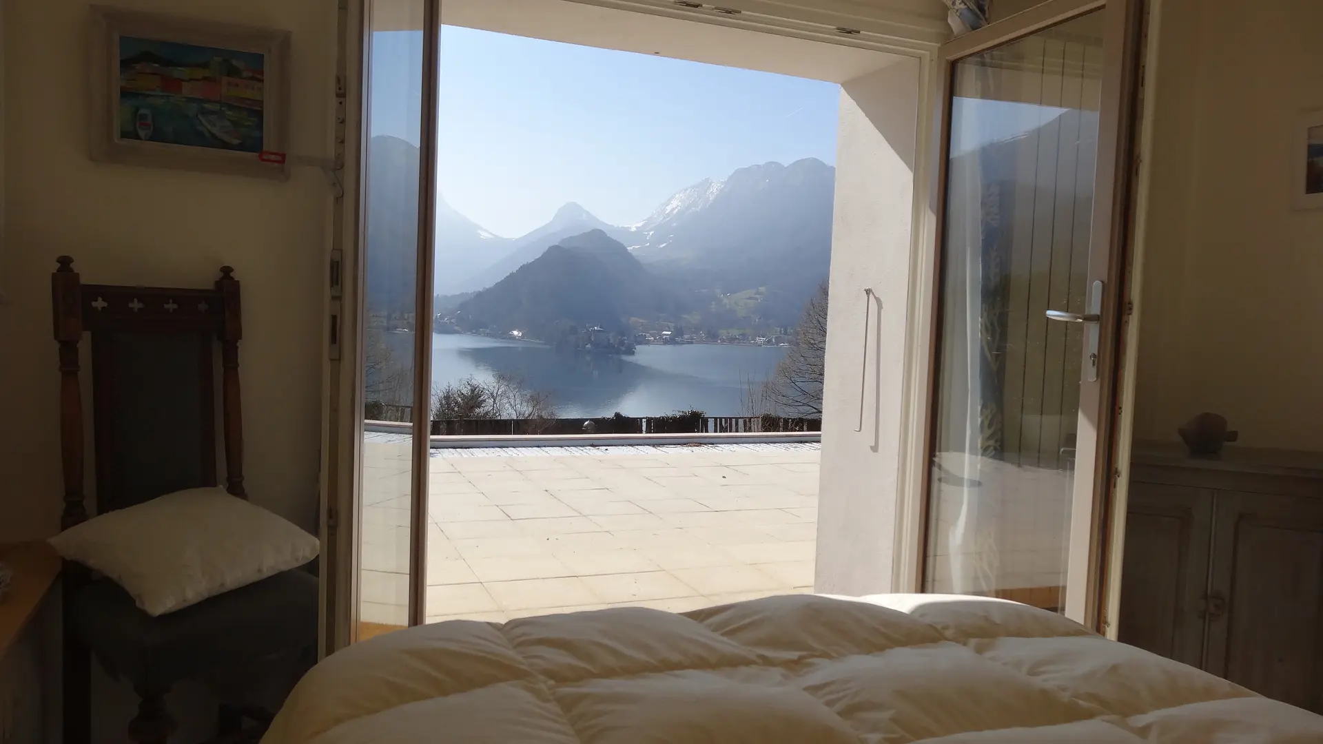 This 300 m² house is in enclosed grounds covering 2100 m² with a private heated 10 m swimming pool. It overlooks the Baie de Talloires. South facing, it benefits from exceptional views over the lake and the Massif des Bauges. It has a lounge/dining/reception room (three linked rooms measuring 87 m²) which opens onto a covered veranda (30 m²). There are seven bedrooms (3 with balconies overlooking the lake, 2 with terrace and view over the lake, 2 with views of the mountains) and five bathrooms.