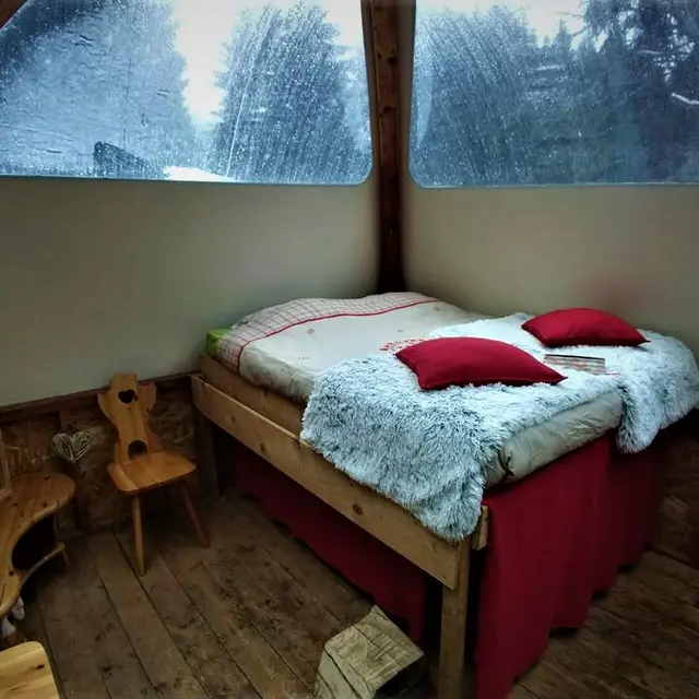 L'Eco Bivouac de Bernex is an unusual place, cut off from electricity and running water, where you can enjoy simple, natural moments in wood-frame structures heated by wood-burning stoves.