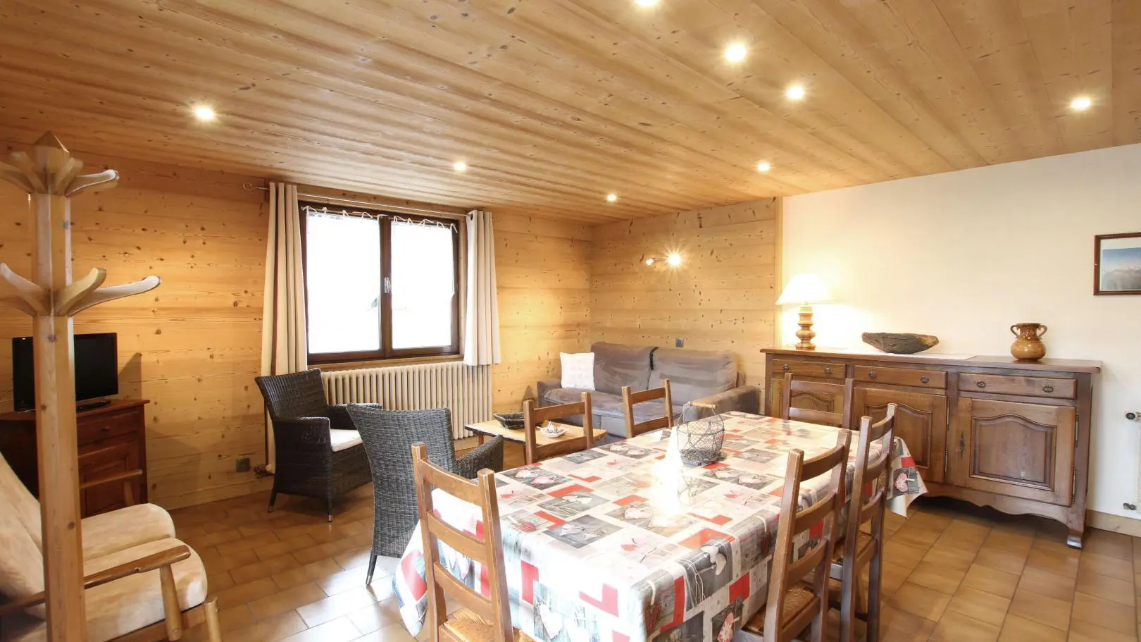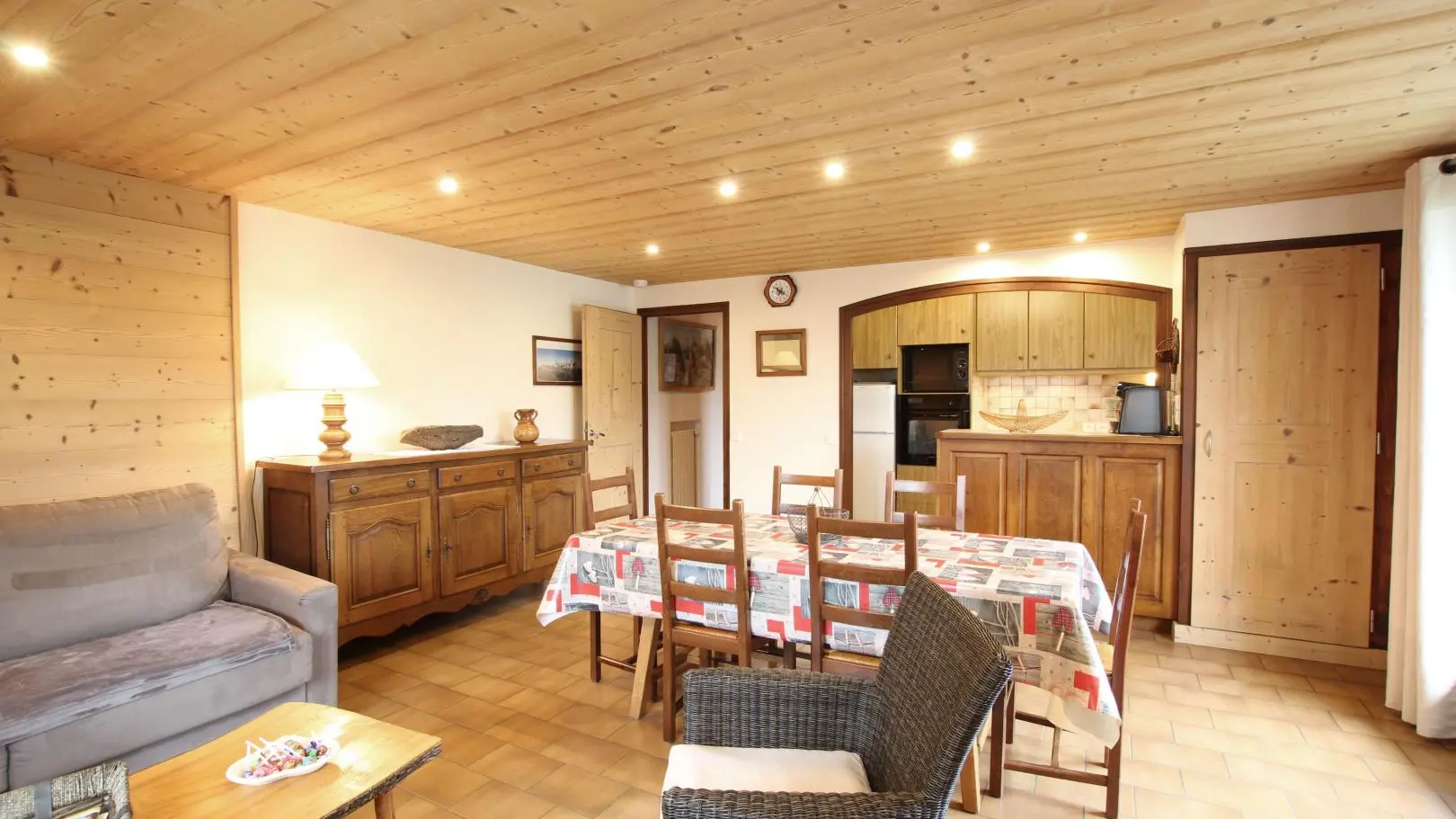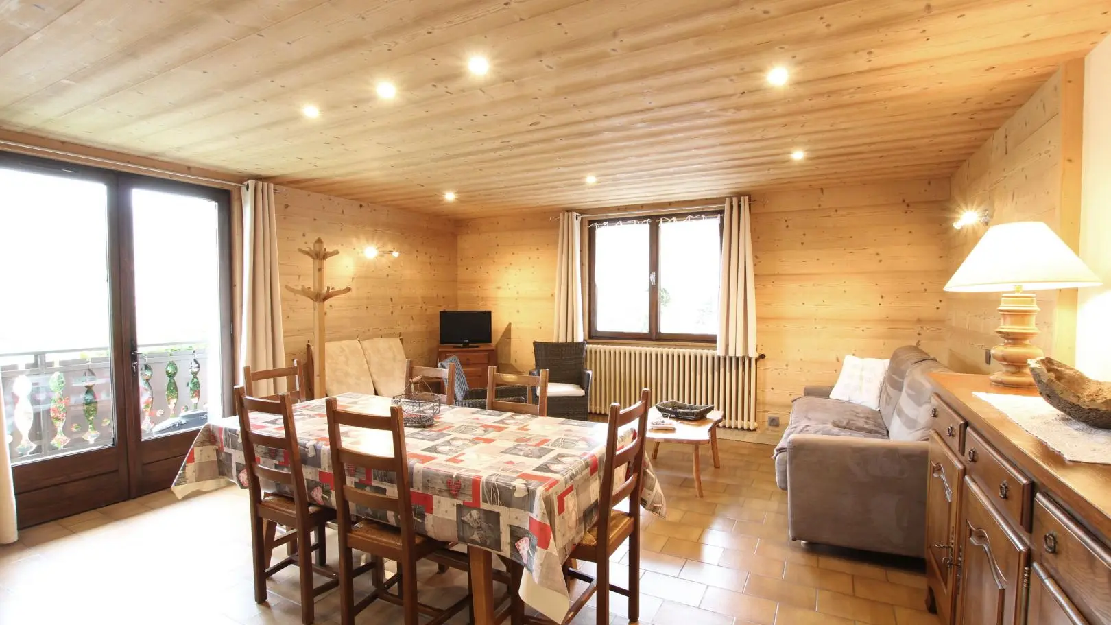Panoramic view of the Mont-Blanc range and Fiz, 600 m from the Princess ski area which links Saint-Gervais - Mont d'Arbois and Rochebrune. Chalet comprising 1 gite and owners' accommodation. On the raised garden level: gite of 69m2. Integrated kitchen open to living room (sofa). Bedroom 1 (1 double bed). bedroom 2 (2 single beds). Bathroom (bathtub)/wc, small shower room/wc, possibility of renting sheets. Central heating included in the rental price in winter. Balcony, terrace, garden, porch, barbecue, private parking, ski/bike storage. 3.5 km from Megève and the Palais des sports and media library. Combloux 2 km away (biotope lake). Many walks. Supermarket at 1 km. Horse riding center 200m. Thermal baths at 10km. No possibility of recharging an electric car at the lodge.