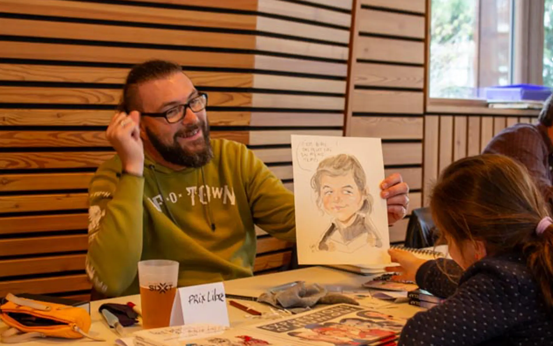 • Live caricatures for a fee: black and white €15, color €25