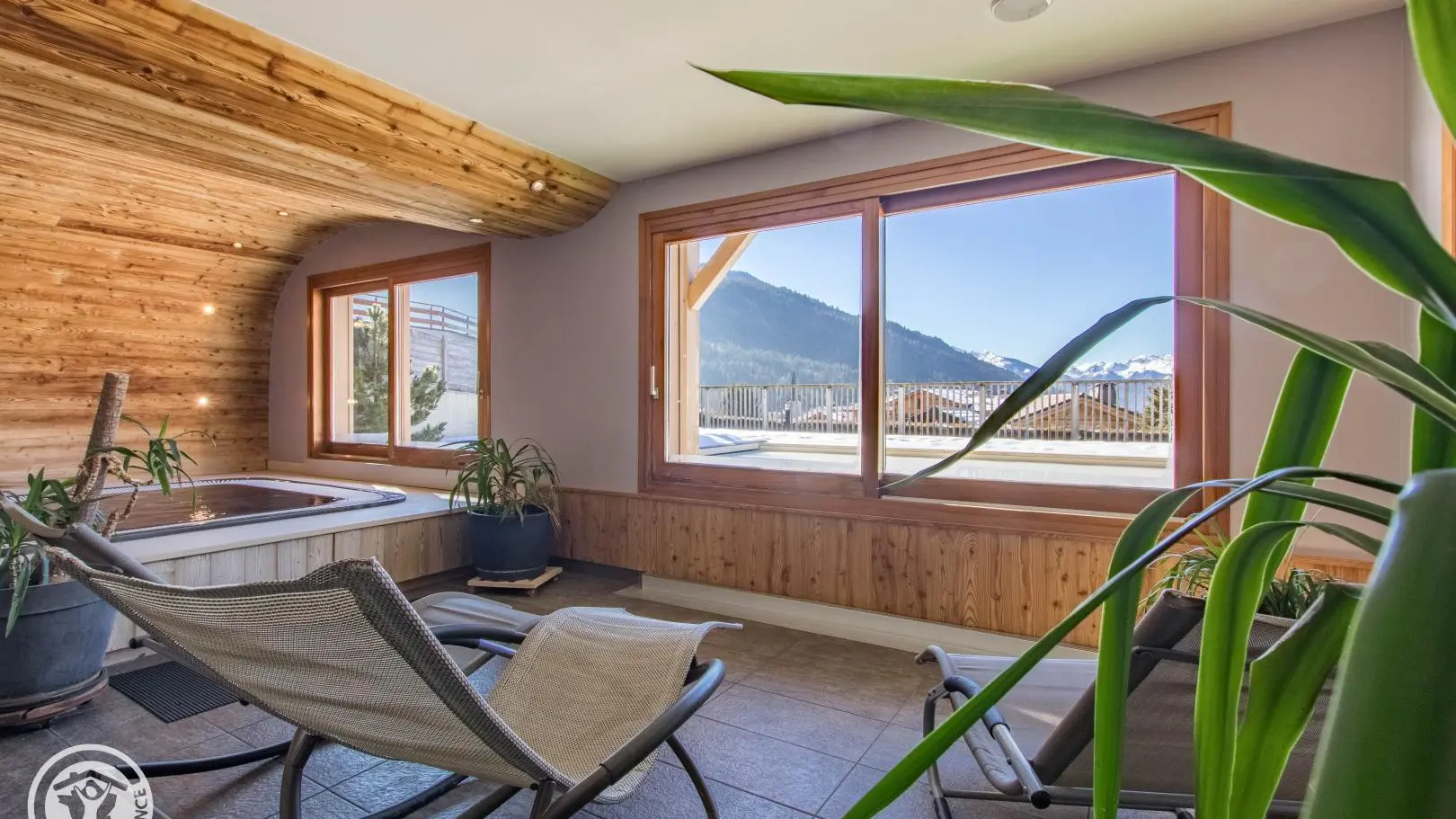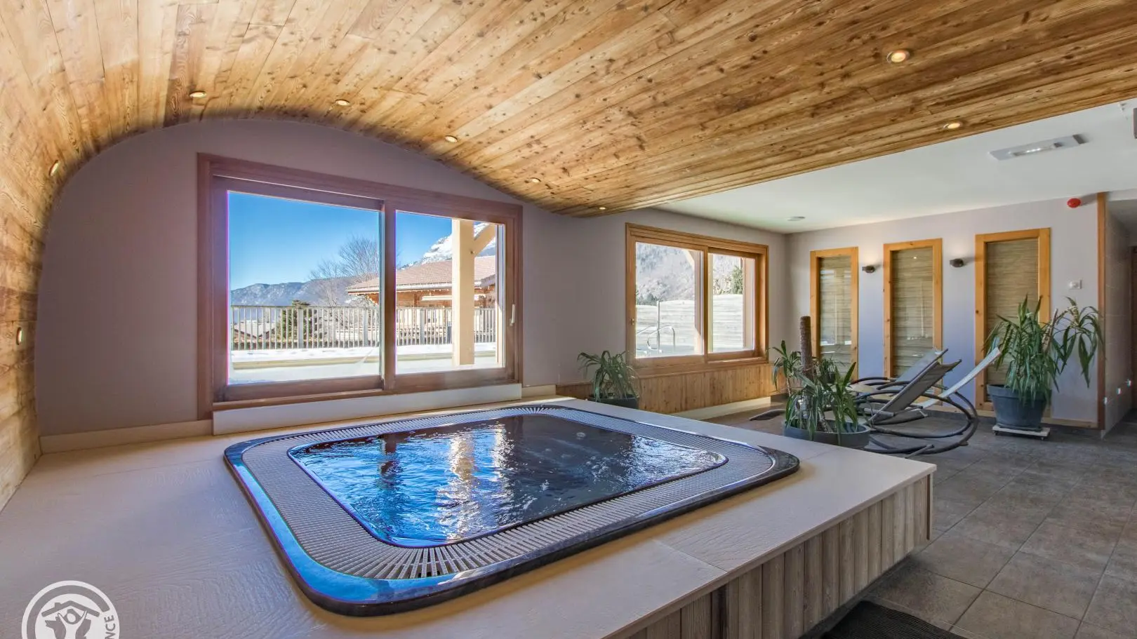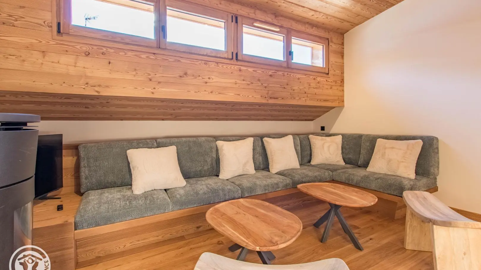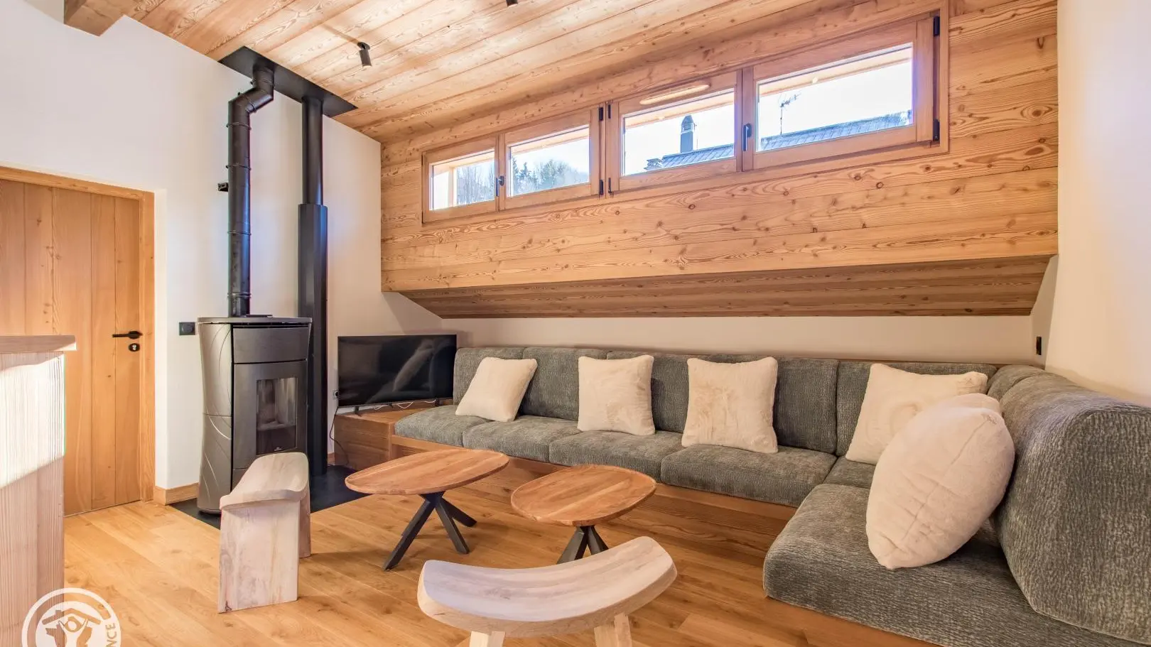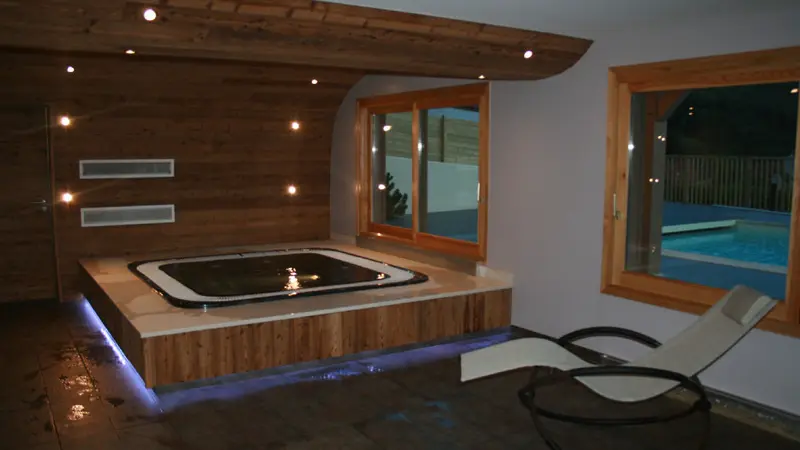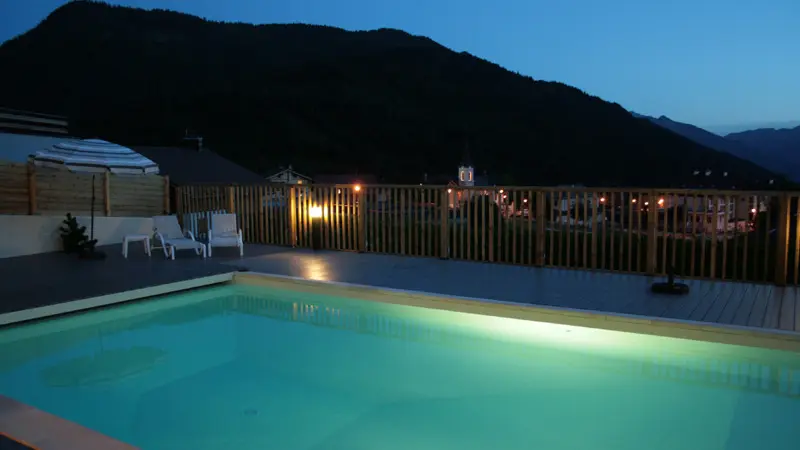 Opposite the Thônes valley, south-facing chalet comprising 2 comfortable apartments. Gîte (29 sq. m.) on 1st floor: terrace, double bedroom, showeroom/WC, kitchen/living room (double sofa bed). Renewable energy (wood-fired heating, solar heated water). Free access to fenced garden (children's games, swimming pool). 10% reduction for stays of 3 weeks. Hotel-style services on request (take-away meals, cleaning, bed et house linen hire). Free shuttles to La Clusaz et Le Grand-Bornand. Only 1 pet allowed. Free access to hot tub, sauna, hammam, Jacuzzi, massage room at the 'Chalet à Bulles' next door to the 'Chalet Chantoiseau'.