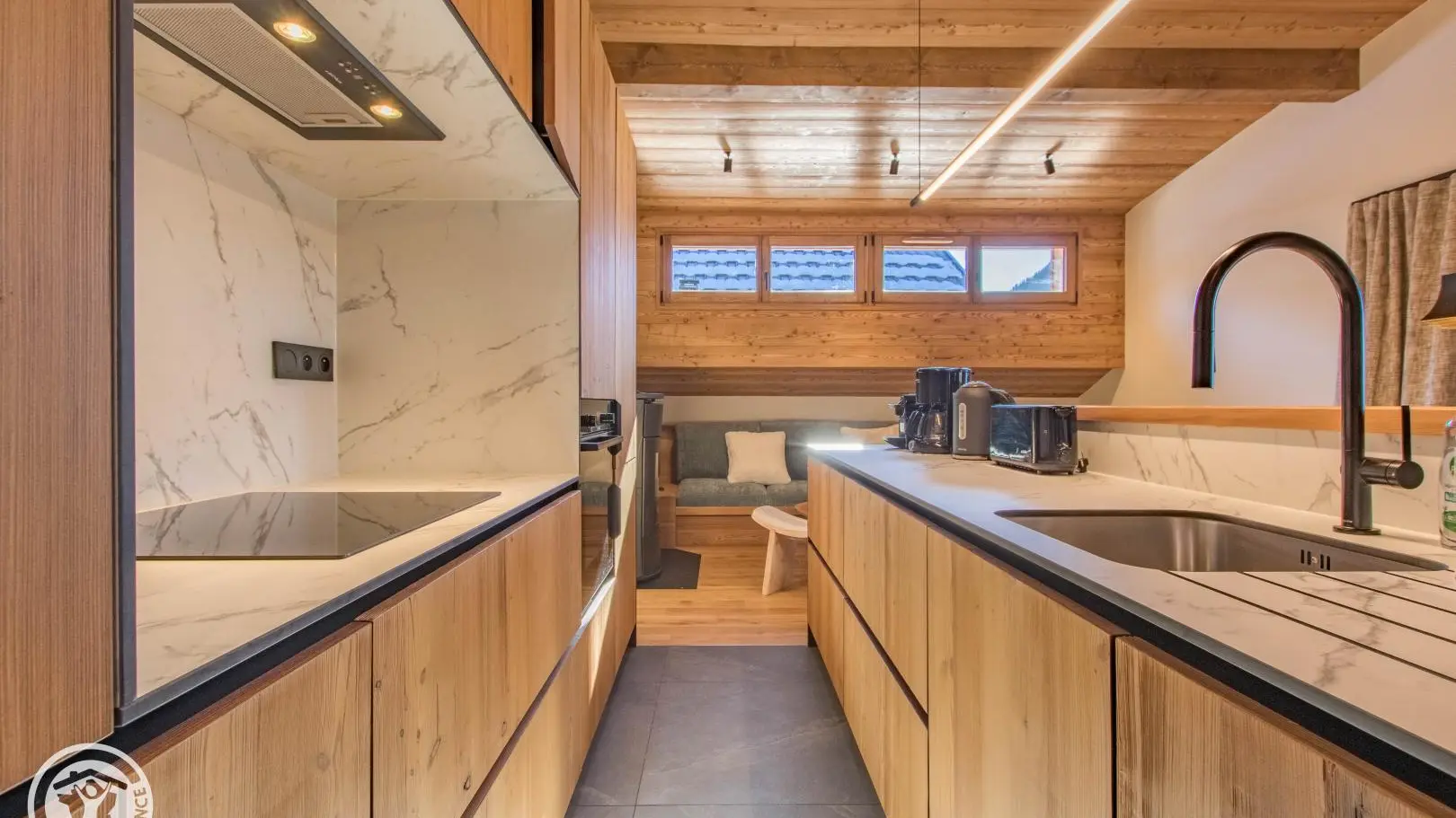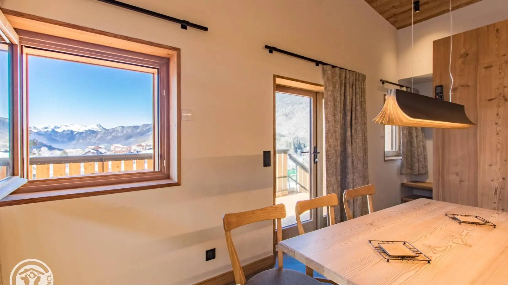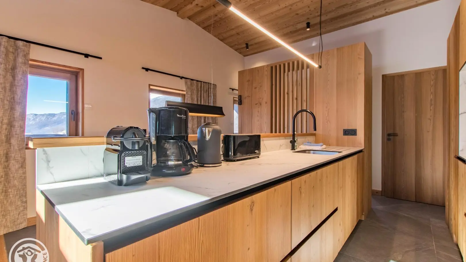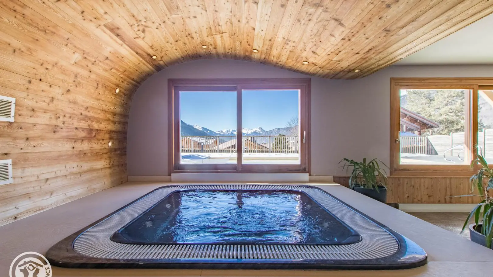 Opposite the Thônes valley, south-facing chalet comprising 2 comfortable apartments. Gîte (29 sq. m.) on 1st floor: terrace, double bedroom, showeroom/WC, kitchen/living room (double sofa bed). Renewable energy (wood-fired heating, solar heated water). Free access to fenced garden (children's games, swimming pool). 10% reduction for stays of 3 weeks. Hotel-style services on request (take-away meals, cleaning, bed et house linen hire). Free shuttles to La Clusaz et Le Grand-Bornand. Only 1 pet allowed. Free access to hot tub, sauna, hammam, Jacuzzi, massage room at the 'Chalet à Bulles' next door to the 'Chalet Chantoiseau'.