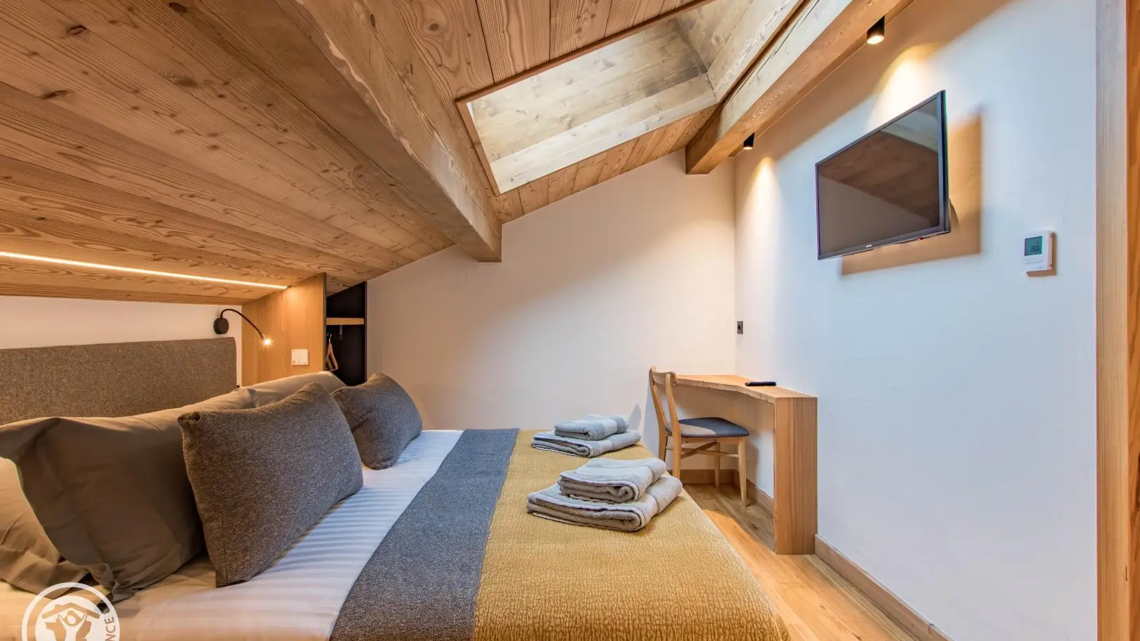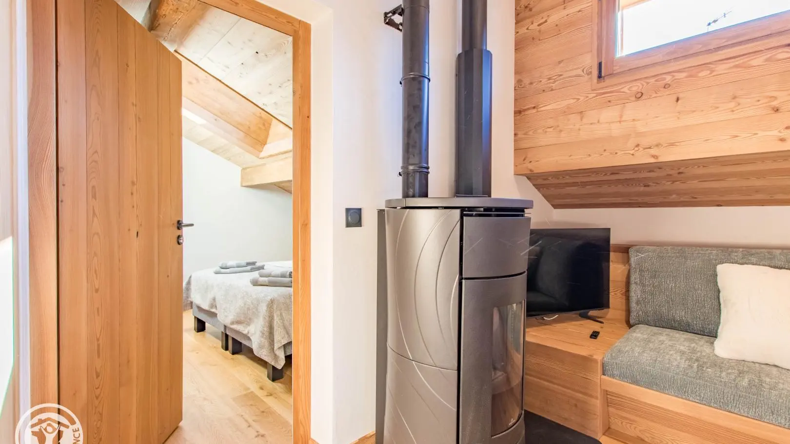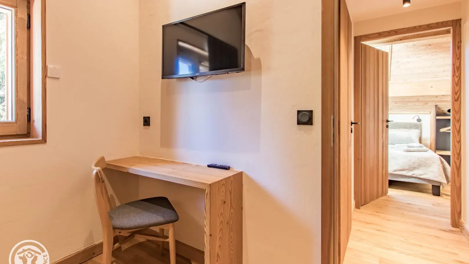 Exhibition South, facing the Valley of Thônes, this chalet offers the comfort of 2 cottages and 1 other location. Gite (29 m 2) on the 1st floor. Kitchen/living room (sofa bed 2 pers.), bedroom (1 bed 140), bathroom (shower) / WC. Terrace. Renewable energy (heating solar hot water + wood). Hotel services on demand (meal take-out, housekeeping, linens/linen hire). In common: free access to the walled garden with games for children, swimming pool, spa area (sauna, hammam, Jacuzzi, massage room) at the "Chalet to Btles" next to the "chalet Chakraborty". Binding skiing La Clusaz and Grand-Bornand by shuttles. Chalet located next to the hotel owners. 3 weeks-10%. 1 only accepted animal.