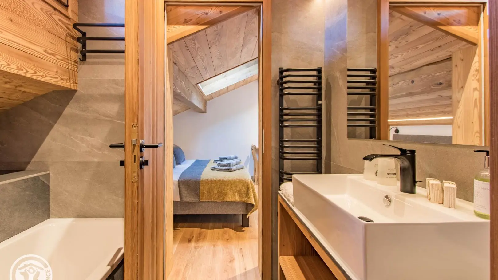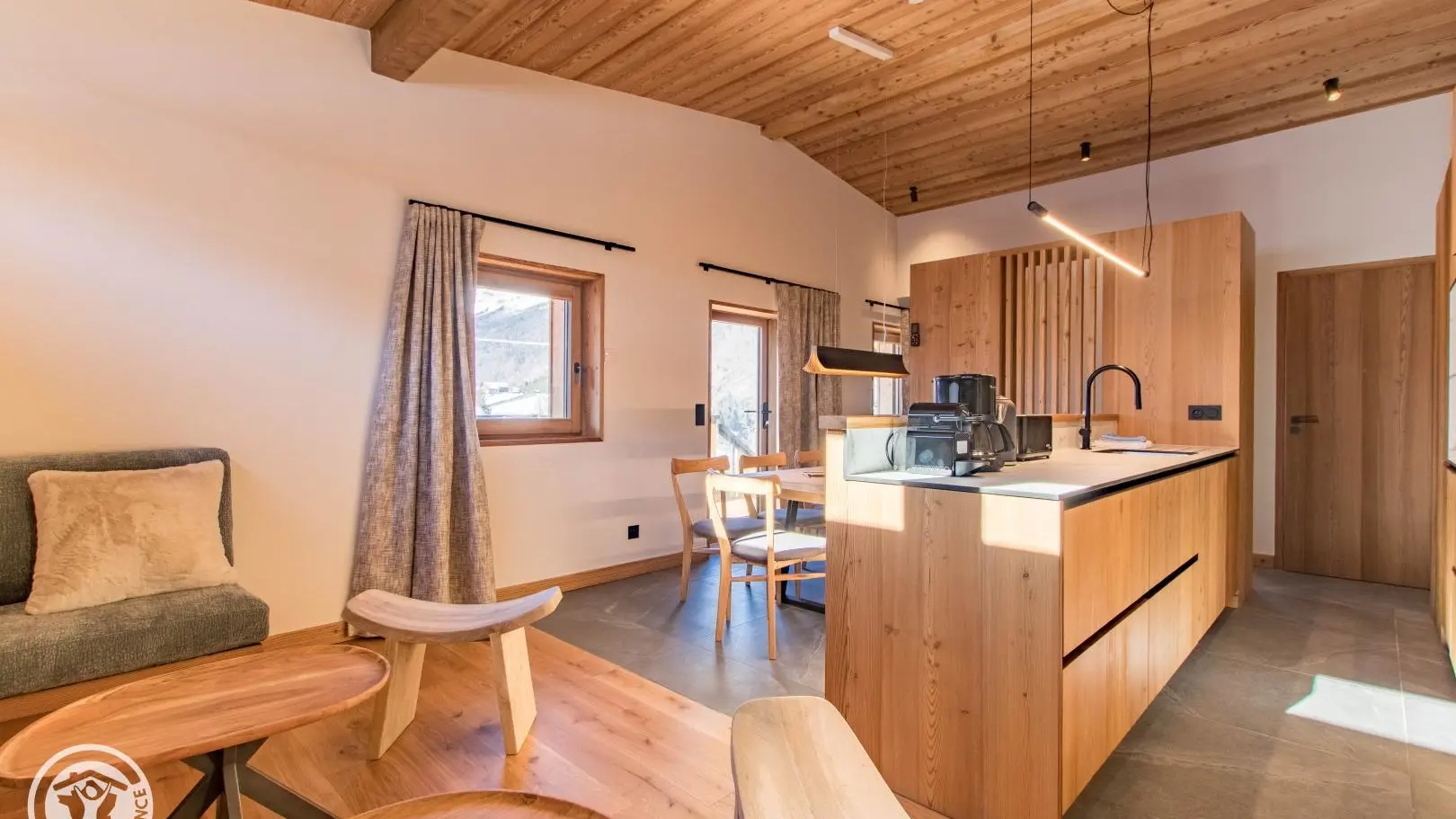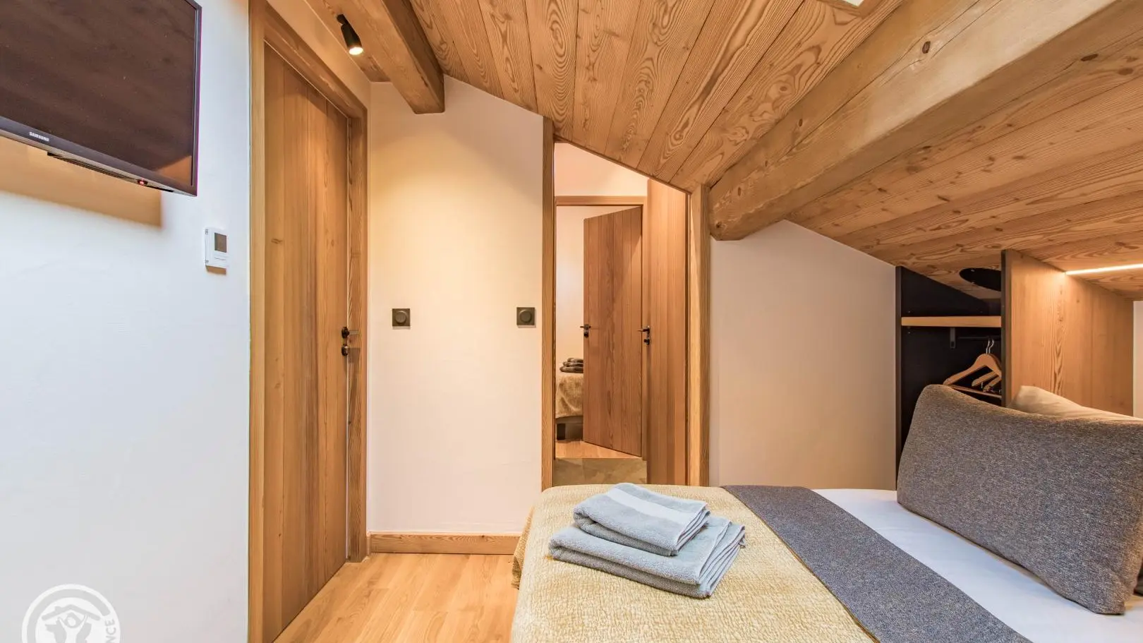 Exhibition South, facing the Valley of Thônes, this chalet offers the comfort of 2 cottages and 1 other location. Gite (29 m 2) on the 1st floor. Kitchen/living room (sofa bed 2 pers.), bedroom (1 bed 140), bathroom (shower) / WC. Terrace. Renewable energy (heating solar hot water + wood). Hotel services on demand (meal take-out, housekeeping, linens/linen hire). In common: free access to the walled garden with games for children, swimming pool, spa area (sauna, hammam, Jacuzzi, massage room) at the "Chalet to Btles" next to the "chalet Chakraborty". Binding skiing La Clusaz and Grand-Bornand by shuttles. Chalet located next to the hotel owners. 3 weeks-10%. 1 only accepted animal.