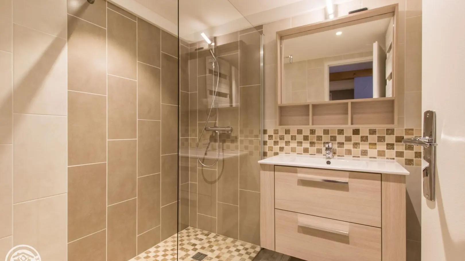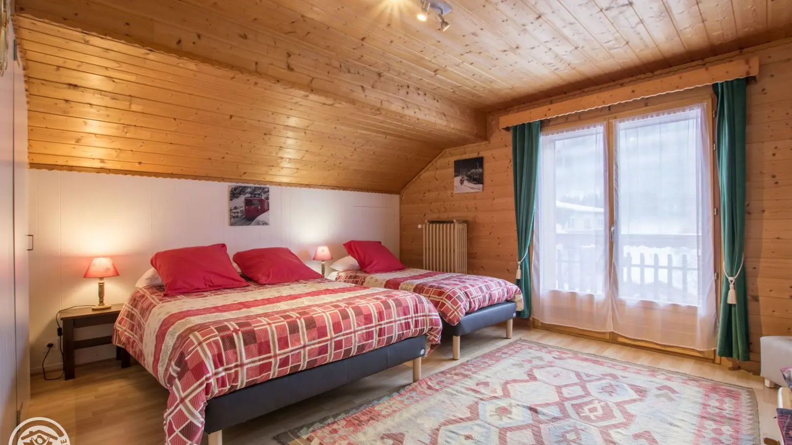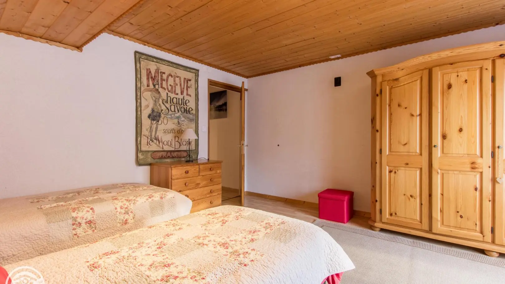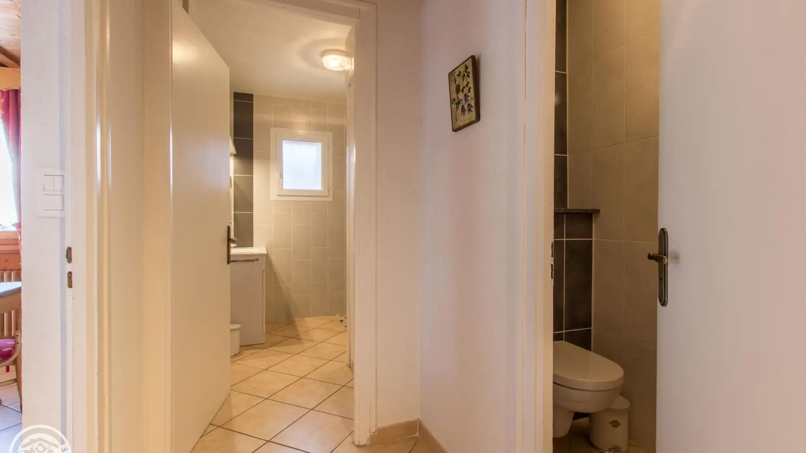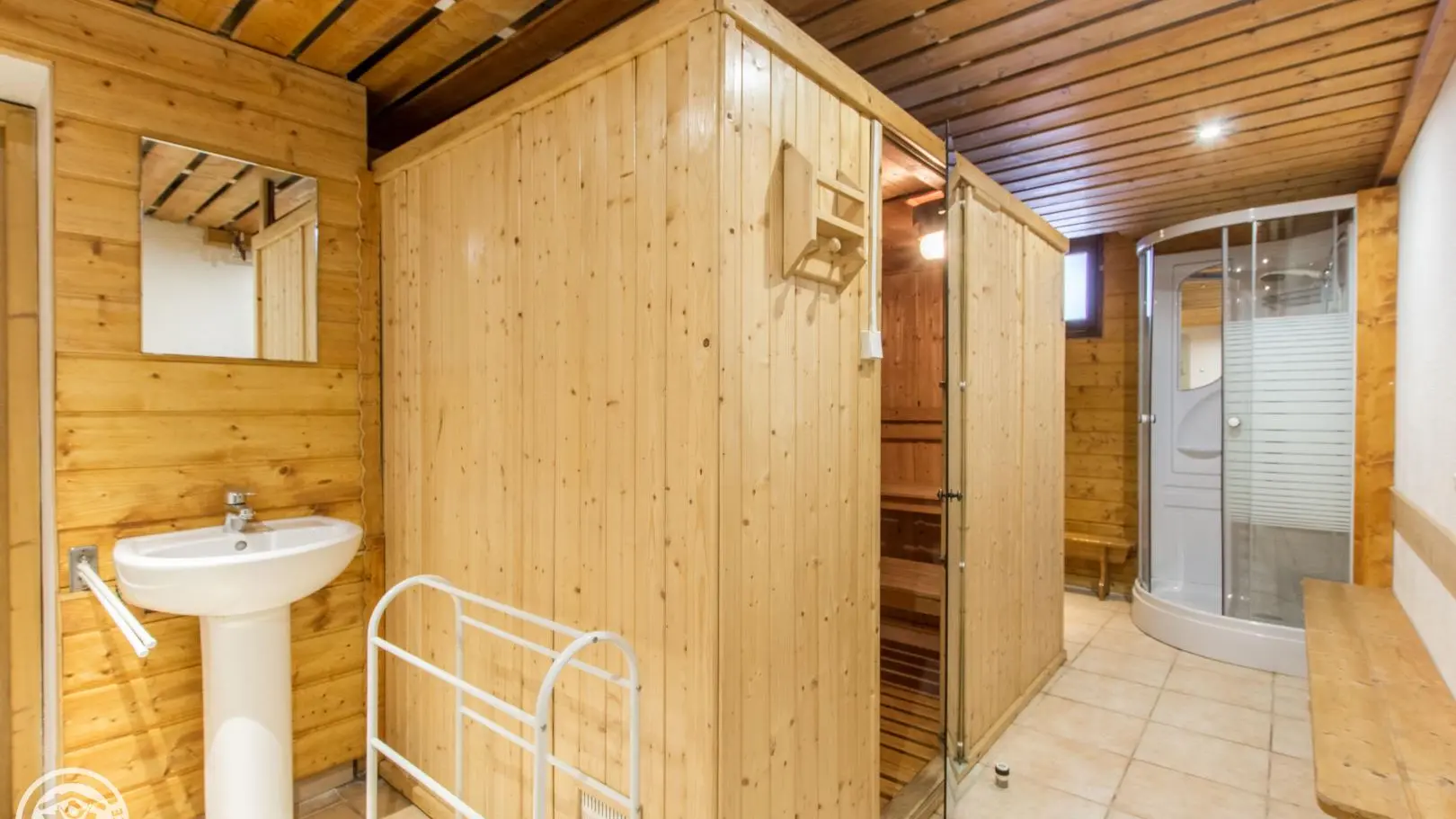 Garden level (lower part of the chalet): 2nd living room that can be used as a games room, 2 bedrooms: bedroom 3 (1 bed 140cm), bedroom 4 (1 bed0 + 1 bed 90cm), bathroom (shower Italian), separate toilet, sauna.