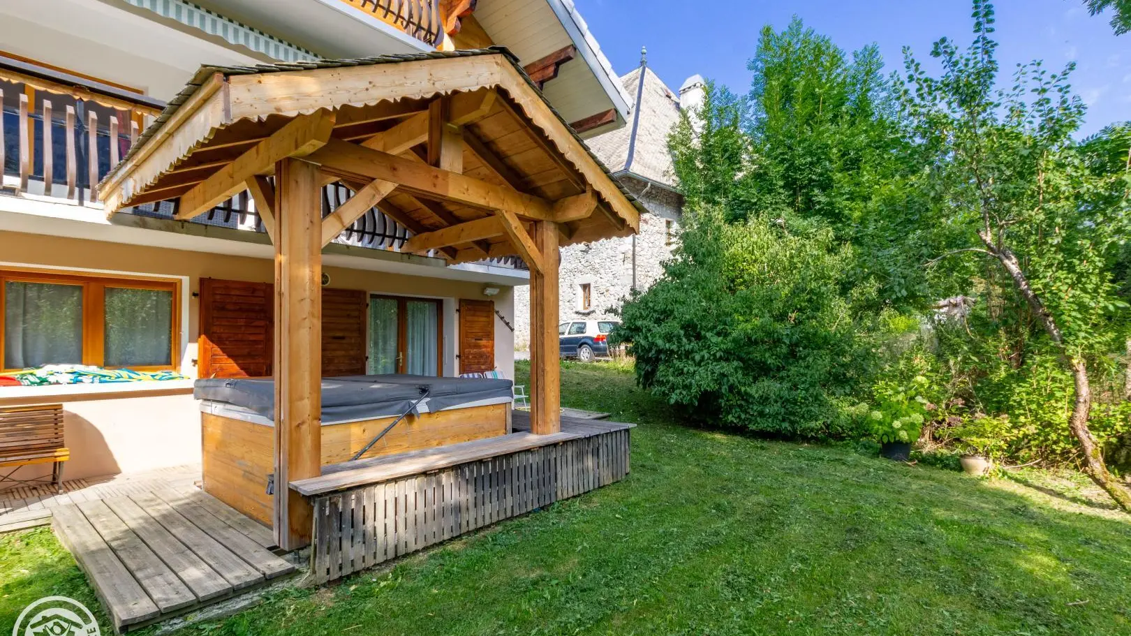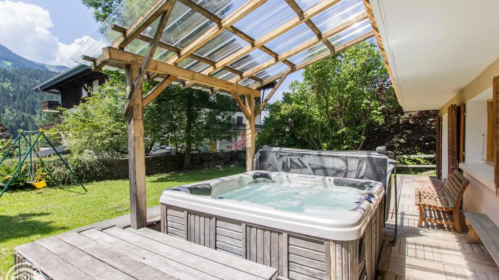 Laundry room with washing machine and dryer, ski room (boot dryer). Garden / terrace with garden furniture, private spa, balconies, barbecue. Private parking in front of the chalet. Chalet in the heart of the village of La Chapelle d'Abondance (road crossing the village on the front of the chalet on the parking side, garden / terrace and balconies on the back of the chalet on the mountain side). Shops, restaurants in the resort. Tourist Office at 50m. Supermarket at 3.5 km. Skiing (Portes du Soleil), Panthiaz gondola 1km, Crêt Béni chairlift (800m), Chatel 5km. Shuttle stop 100m away. Many summer and winter activities in the Abondance Valley: skiing, swimming pool, paragliding, via ferrata, hiking, snowshoeing ... Lake Geneva, Evian-les-Bains, Thermes 35km. Thermal baths on the Swiss side, Val d'Illiez 20km away.
