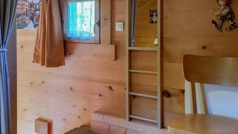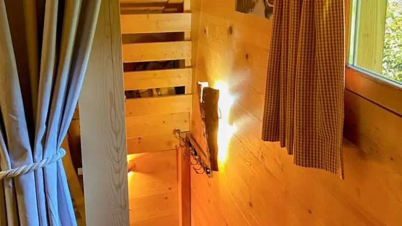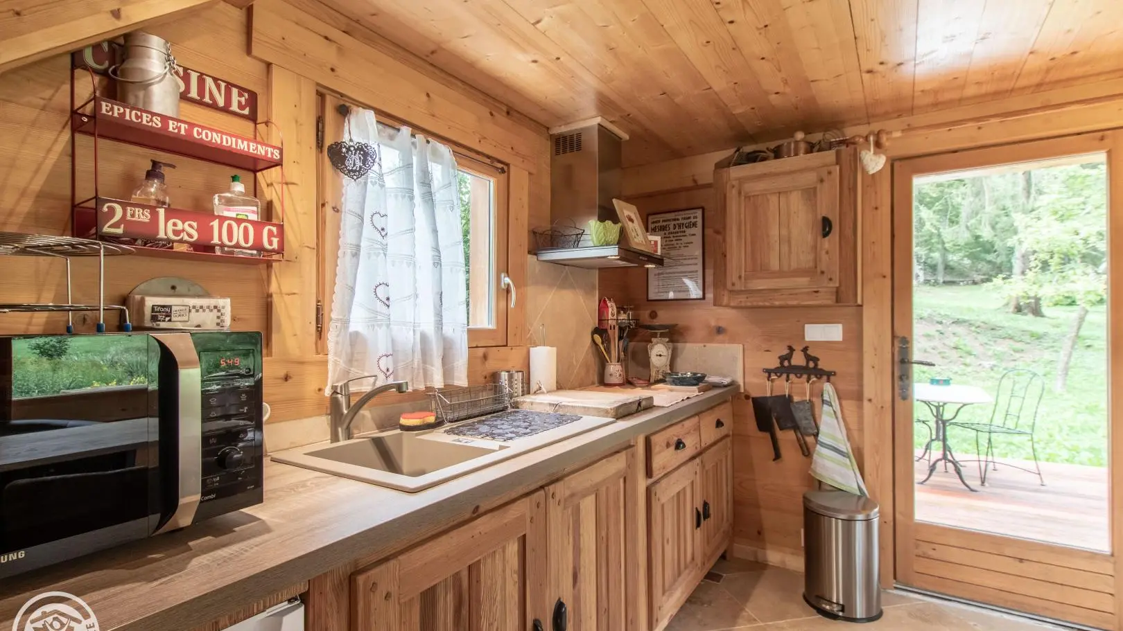 On the garden level: living area with open fitted kitchen. TV with DVD / Blu-Ray player, shepherd's table with its removable tray to transform the dining area into a relaxation area. Two armchairs with footrests. Shower room / WC. Upstairs: attic bedroom with maximum 4 beds (2 twin 90x200 beds + 130x190 convertible sofa bed). A curtain can separate the bed space from the sofa bed space. Sheets provided, beds made. Linen and towels provided. Wifi access. Alarm system in the gîte.