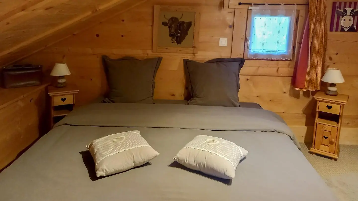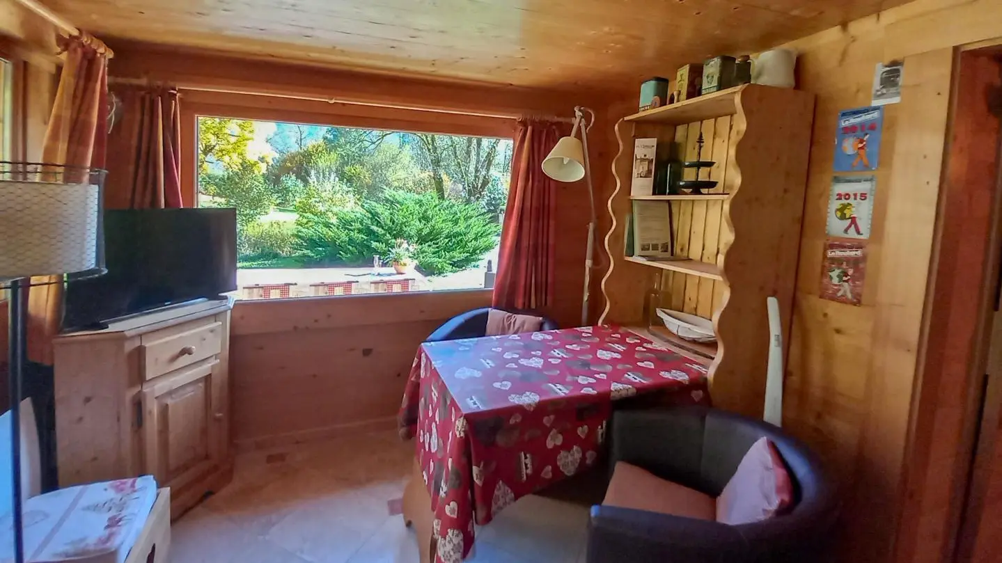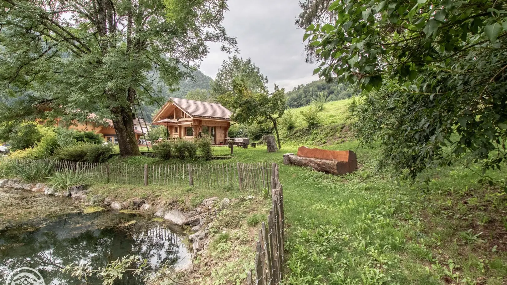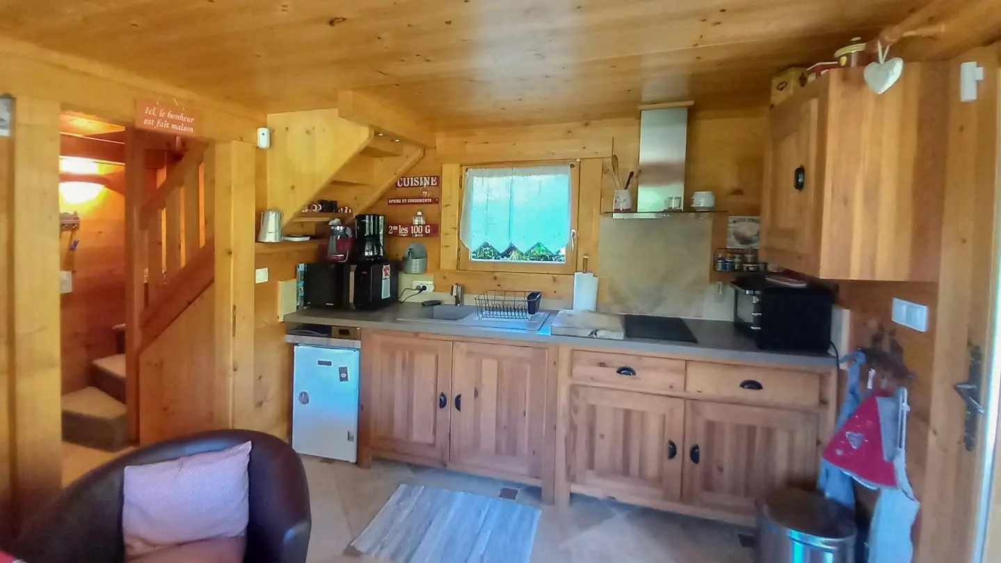 Independent gîte on two levels of 33 m² with sloping ceilings (25m² useful) in a comfortable and independent wooden chalet. Located on the owners' property, near their home. Large lot near the forest including, in particular, landscaped areas with seating and a fenced pond.