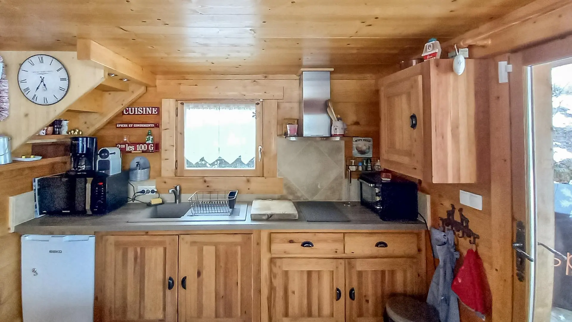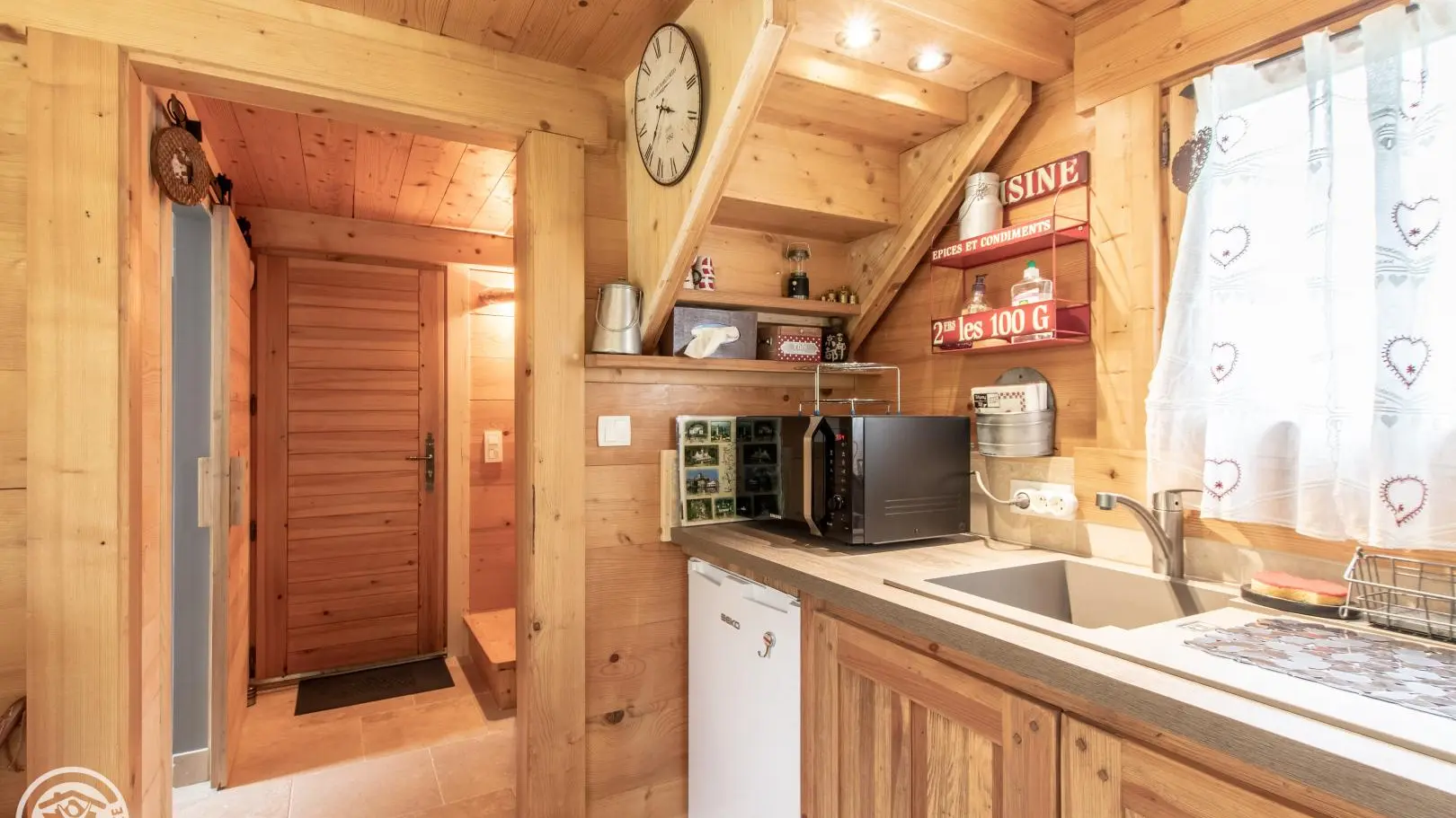 Linen with washing machine and dryer on request in the immediate vicinity of the gîte, limited to one use per week. Ironing kit available in the chalet.