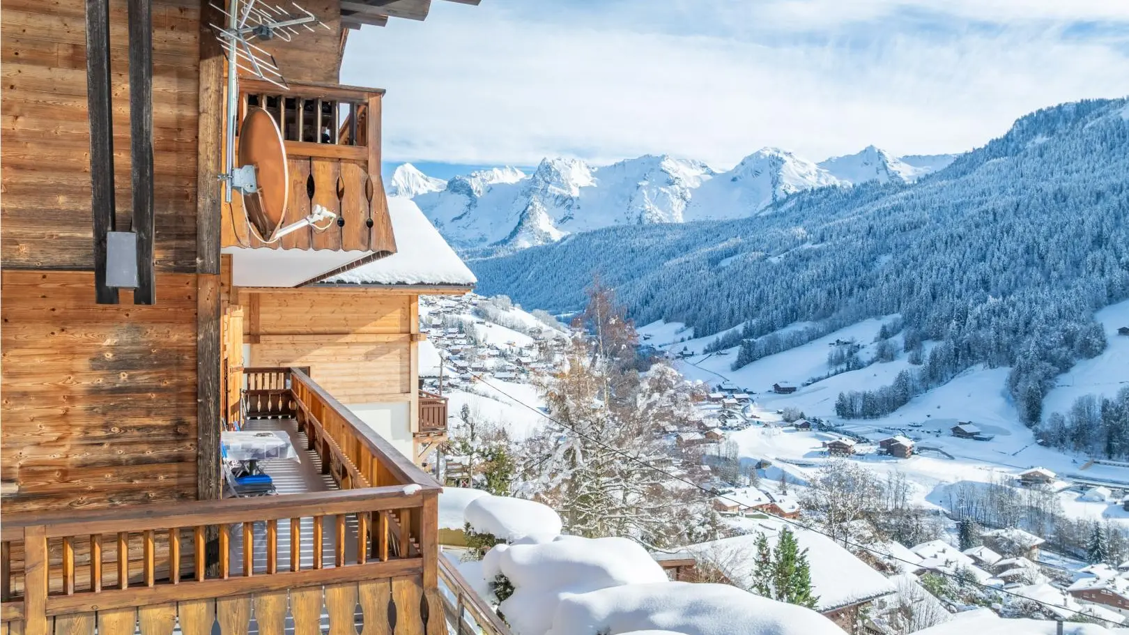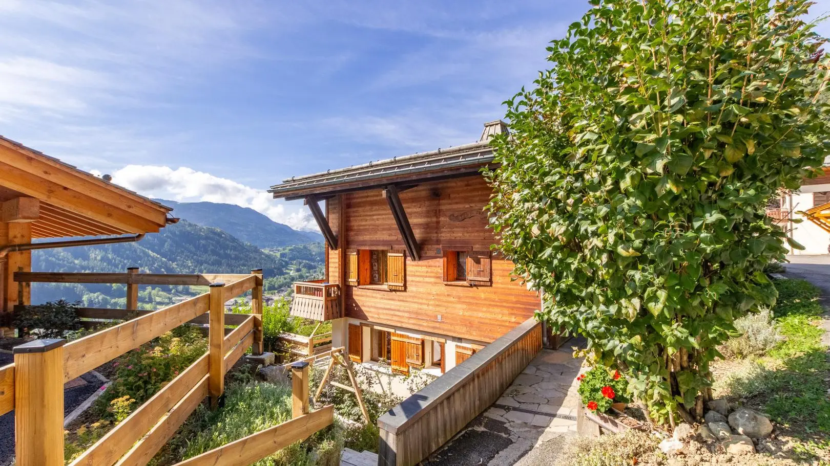 Large south-facing wooden terrace, mountain and village views, garden furniture, deckchairs, plancha, parasol. Private parking next to the chalet.
