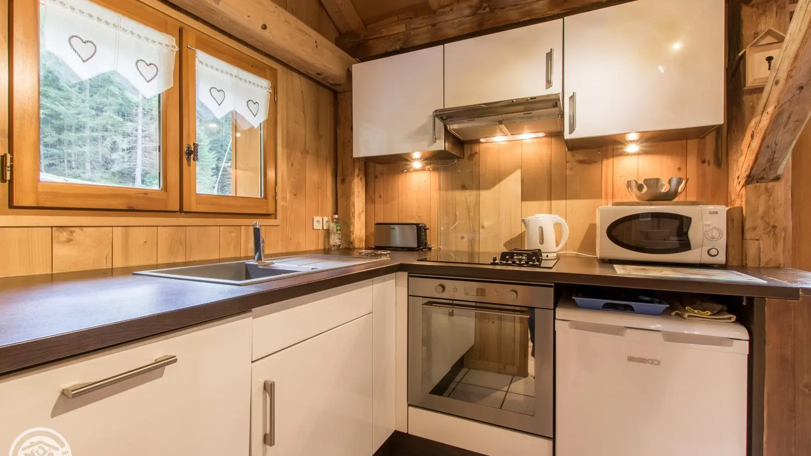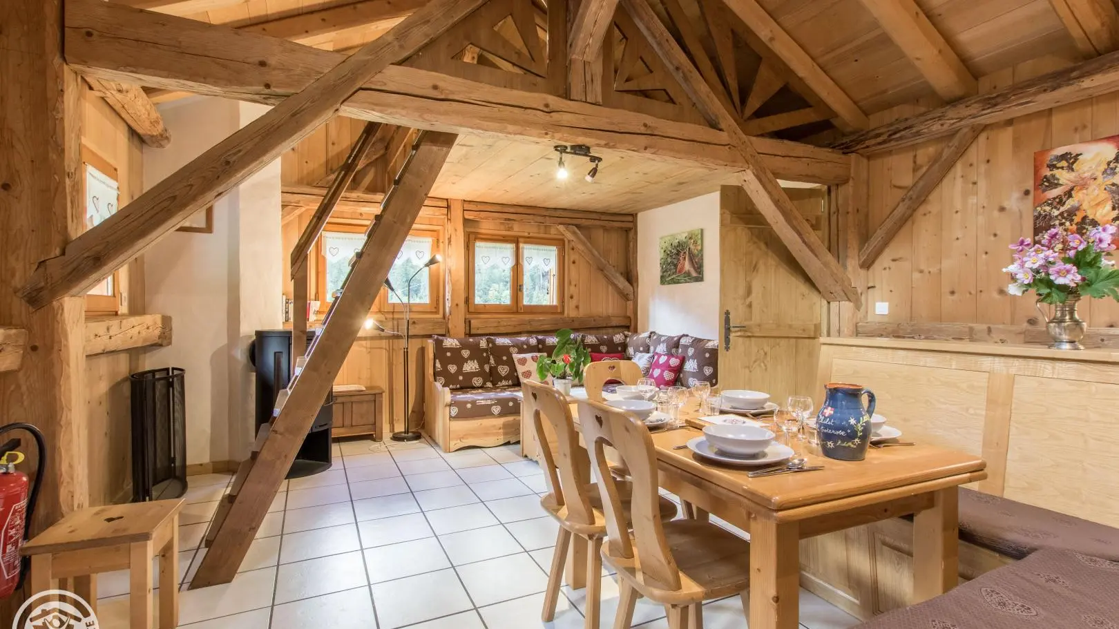 Independent chalet of 64m² (+7m² attic) arranged on 2 levels + mezzanine overlooking the hamlet of Prodains. Chalet on the edge of a slope in winter. In summer, enjoy the calm of the chalet located on the edge of the forest. Ideal for 5 people, maximum capacity 6 people.