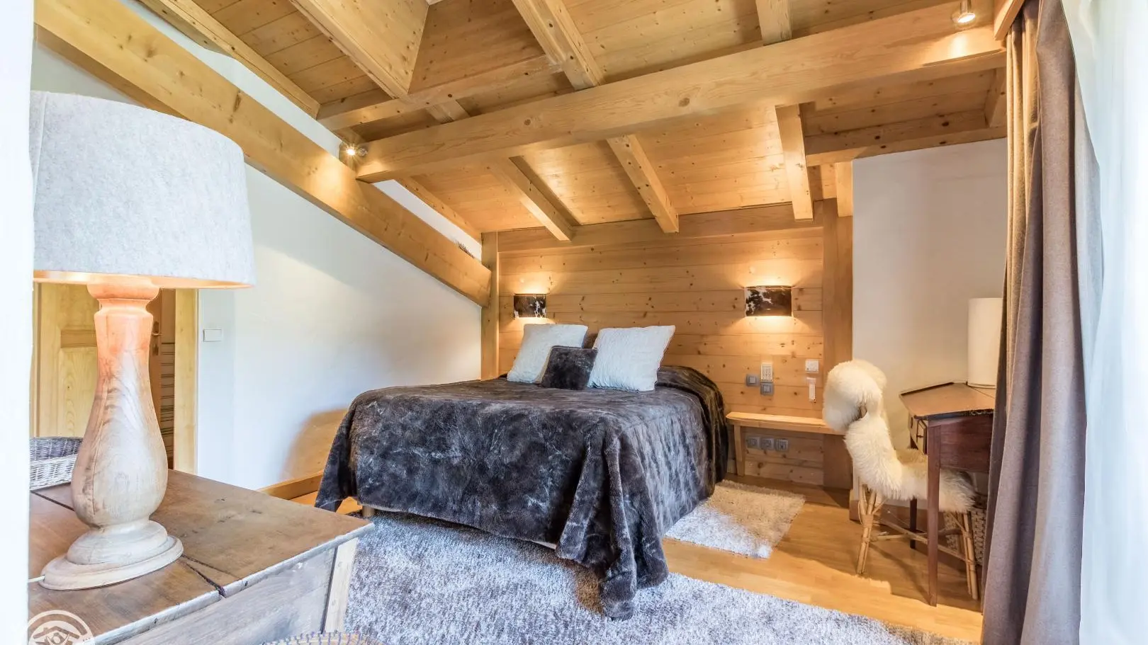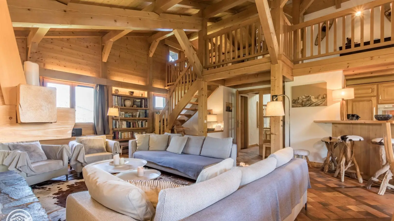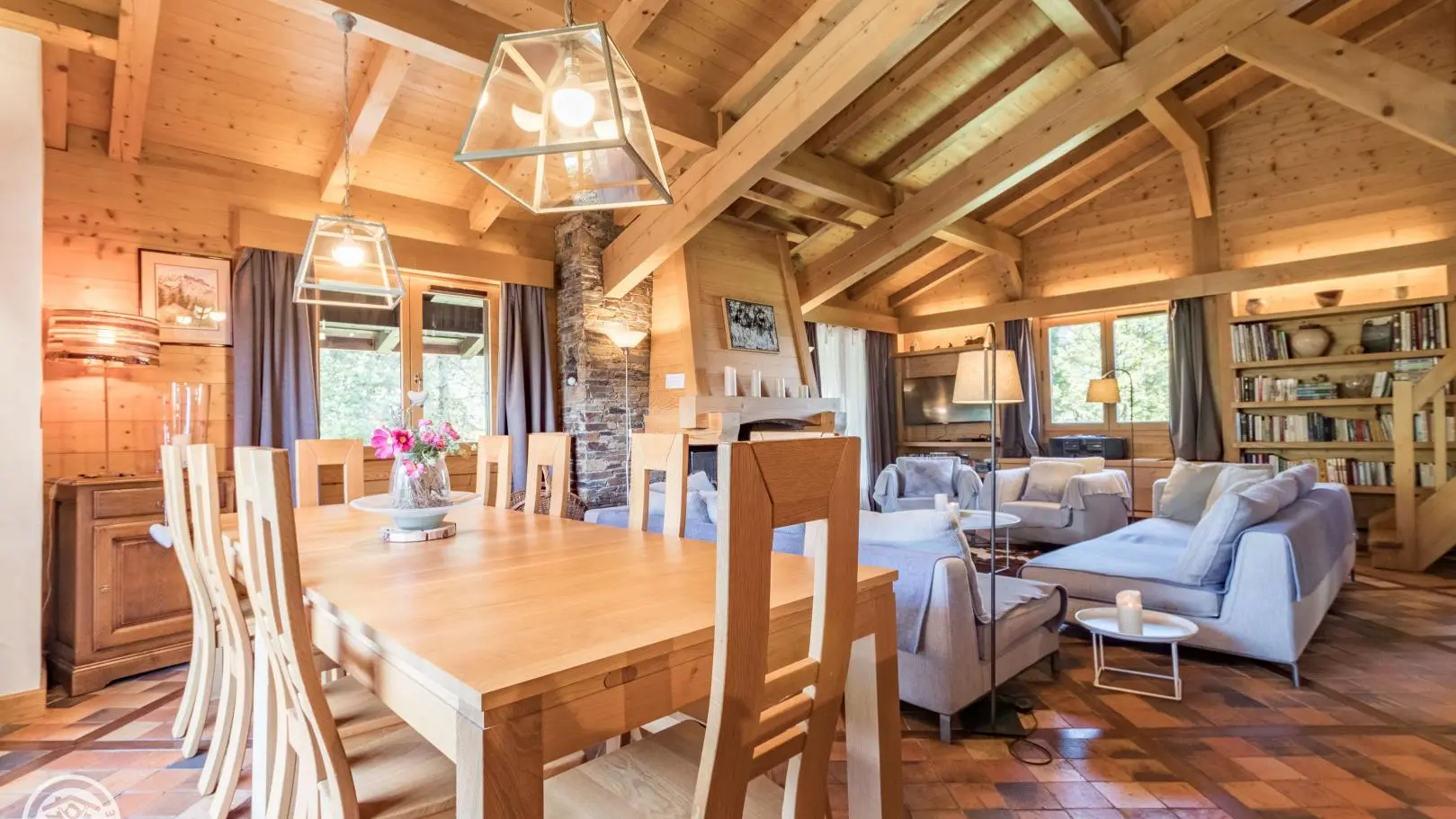 Top quality amenities for this gîte (150 sq. m.) on 1st floor of chalet also containing 2 other gîtes and massage centre on ground floor (by appt.). Accommodation on 2 levels, fine views of the Mont-Blanc range. 1st floor: large hall, fitted kitchen opening onto very large living room (central fireplace), 3 bedrooms (160cm wide bed, own bathroom) (2 single beds) (2 single beds), bathroom, WC. 2nd floor: large open mezzanine, access to attic bedroom (double bed, own bathroom/WC). Bed linen provided, beds made on arrival. Balcony, terrace facing Mont-Blanc (outdoor furniture, BBQ). Shared garden, garage. Skiing: Megève, Combloux 3km, St-Gervais, spa 8km. Lake 300m. Village centre 3 minutes walk away.