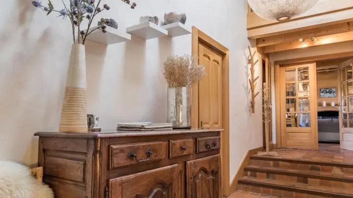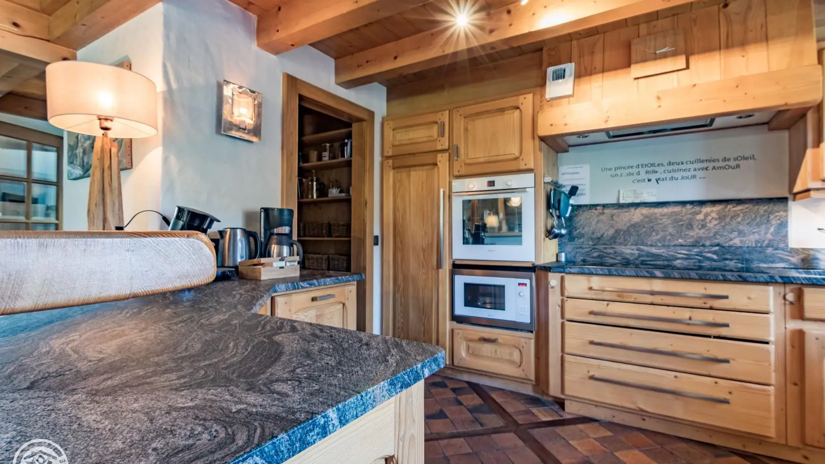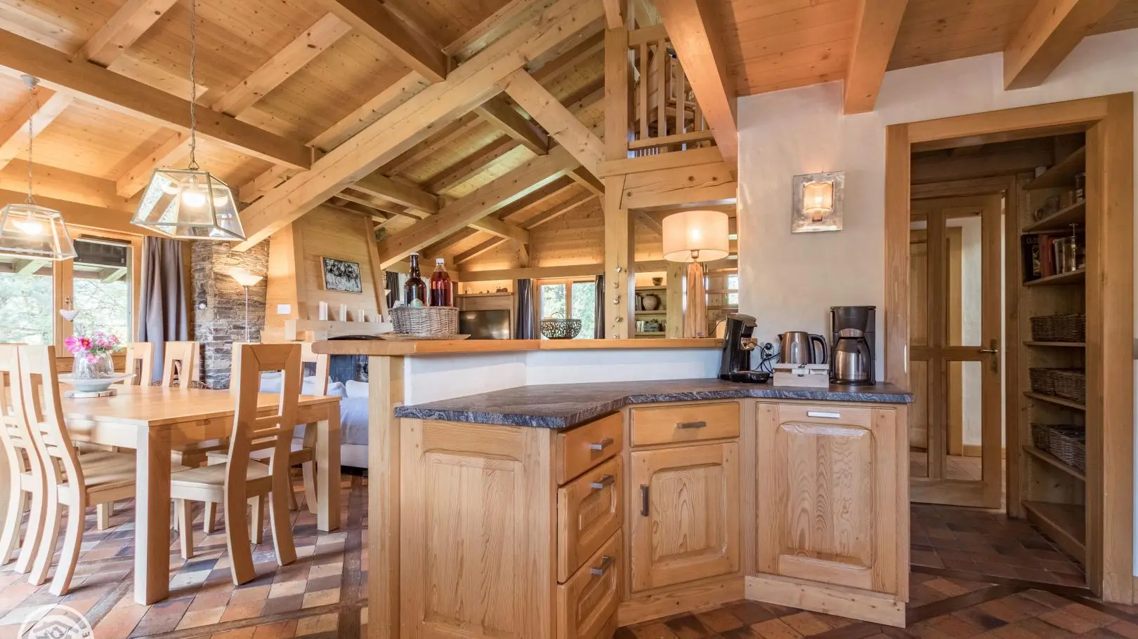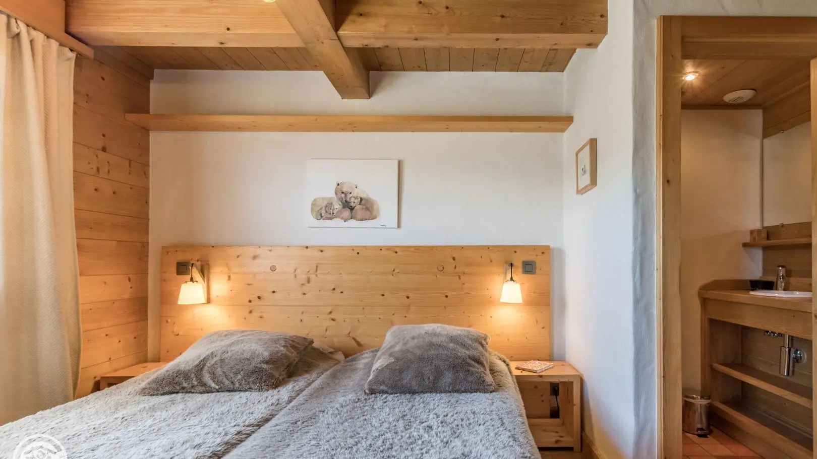 Top quality amenities for this gîte (150 sq. m.) on 1st floor of chalet also containing 2 other gîtes and massage centre on ground floor (by appt.). Accommodation on 2 levels, fine views of the Mont-Blanc range. 1st floor: large hall, fitted kitchen opening onto very large living room (central fireplace), 3 bedrooms (160cm wide bed, own bathroom) (2 single beds) (2 single beds), bathroom, WC. 2nd floor: large open mezzanine, access to attic bedroom (double bed, own bathroom/WC). Bed linen provided, beds made on arrival. Balcony, terrace facing Mont-Blanc (outdoor furniture, BBQ). Shared garden, garage. Skiing: Megève, Combloux 3km, St-Gervais, spa 8km. Lake 300m. Village centre 3 minutes walk away.