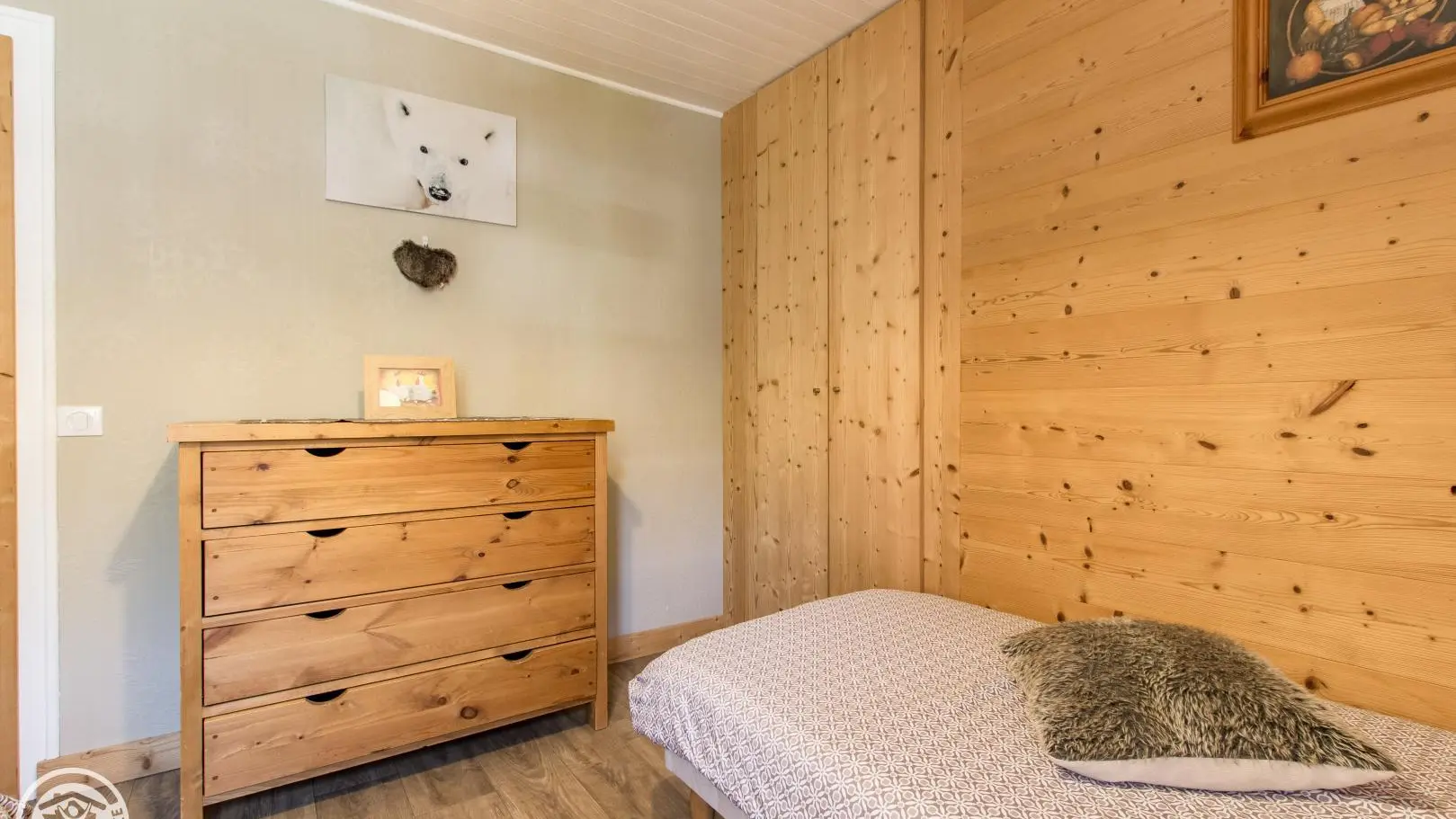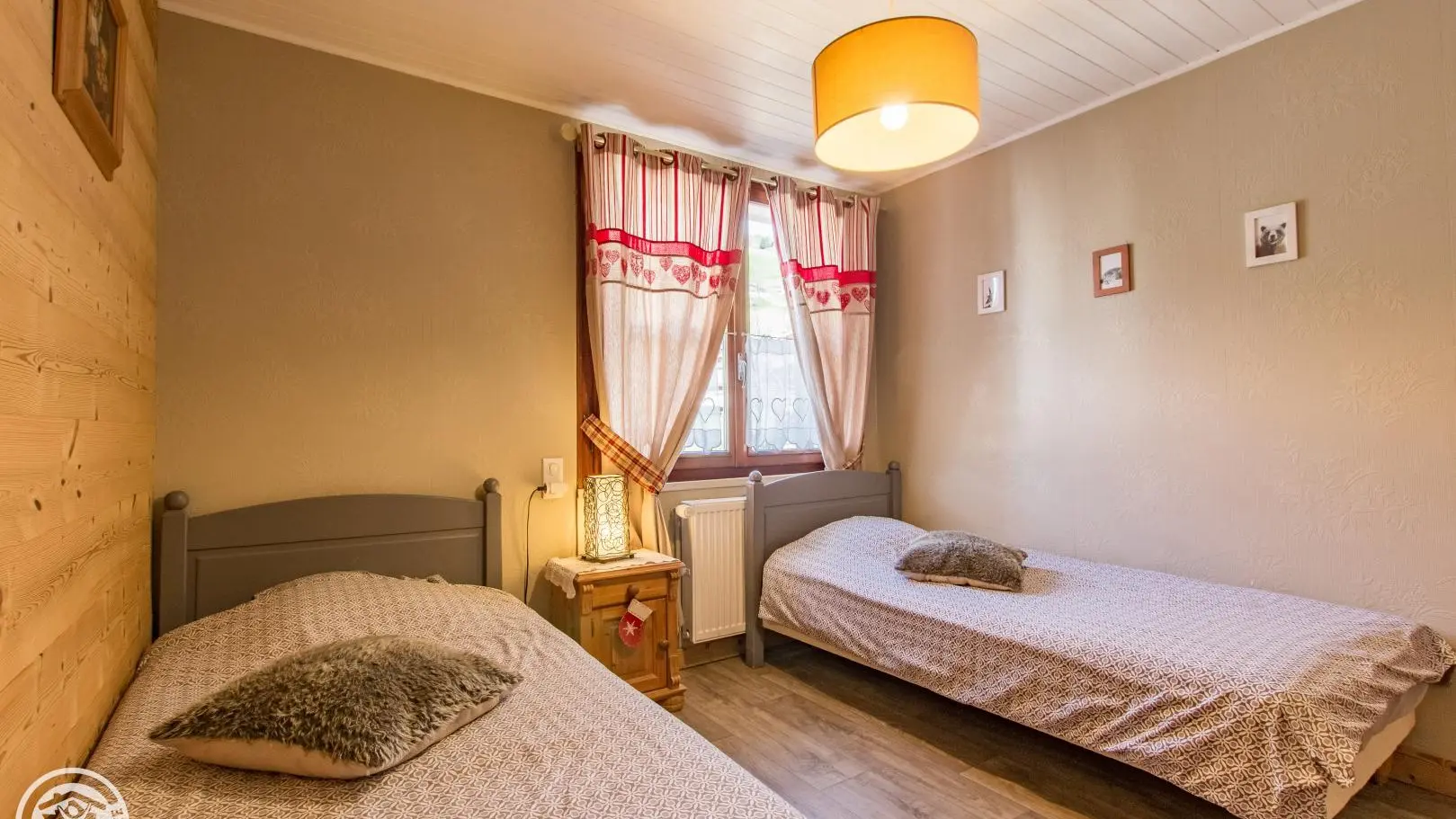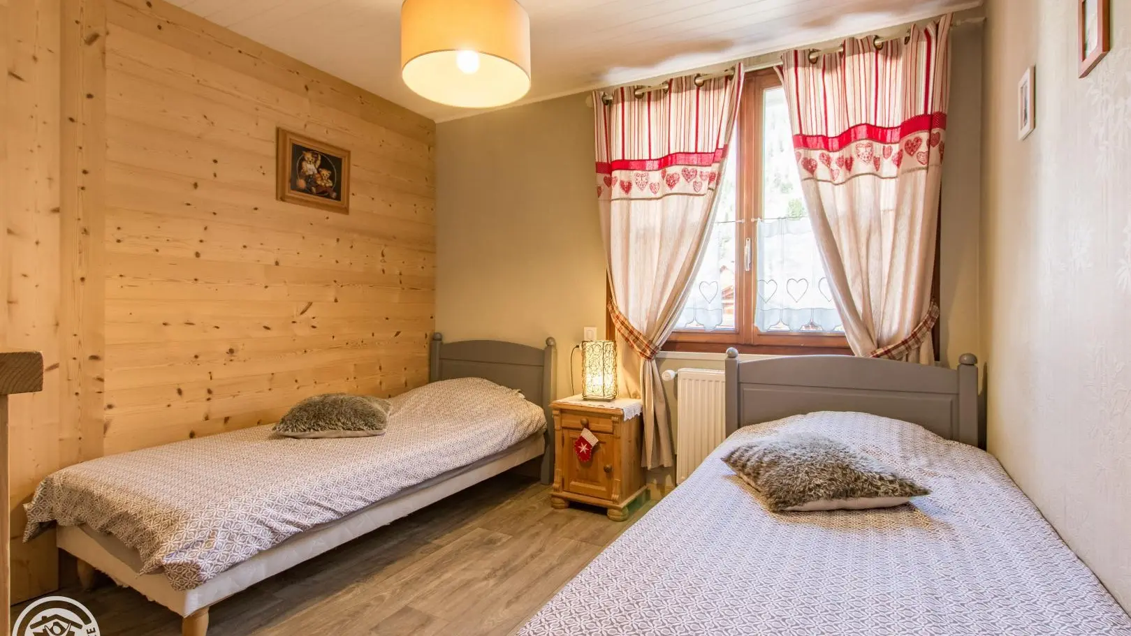 Bedroom with 2 90x190cm beds, cupboard, chest of drawers.