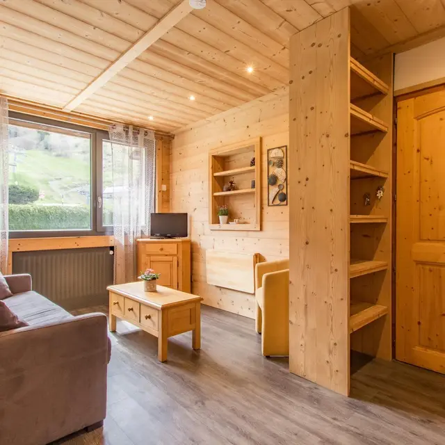 Beautiful atmosphere for this 22m² gîte on the ground floor of a large house ideally located 3 minutes walk from the center of La Clusaz and opposite the 'Bossonnet' lifts. The house also includes 1 owner's accommodation and 3 other rentals. Common entrance. Studio with equipped kitchen: dining area, refrigerator, oven, microwave...